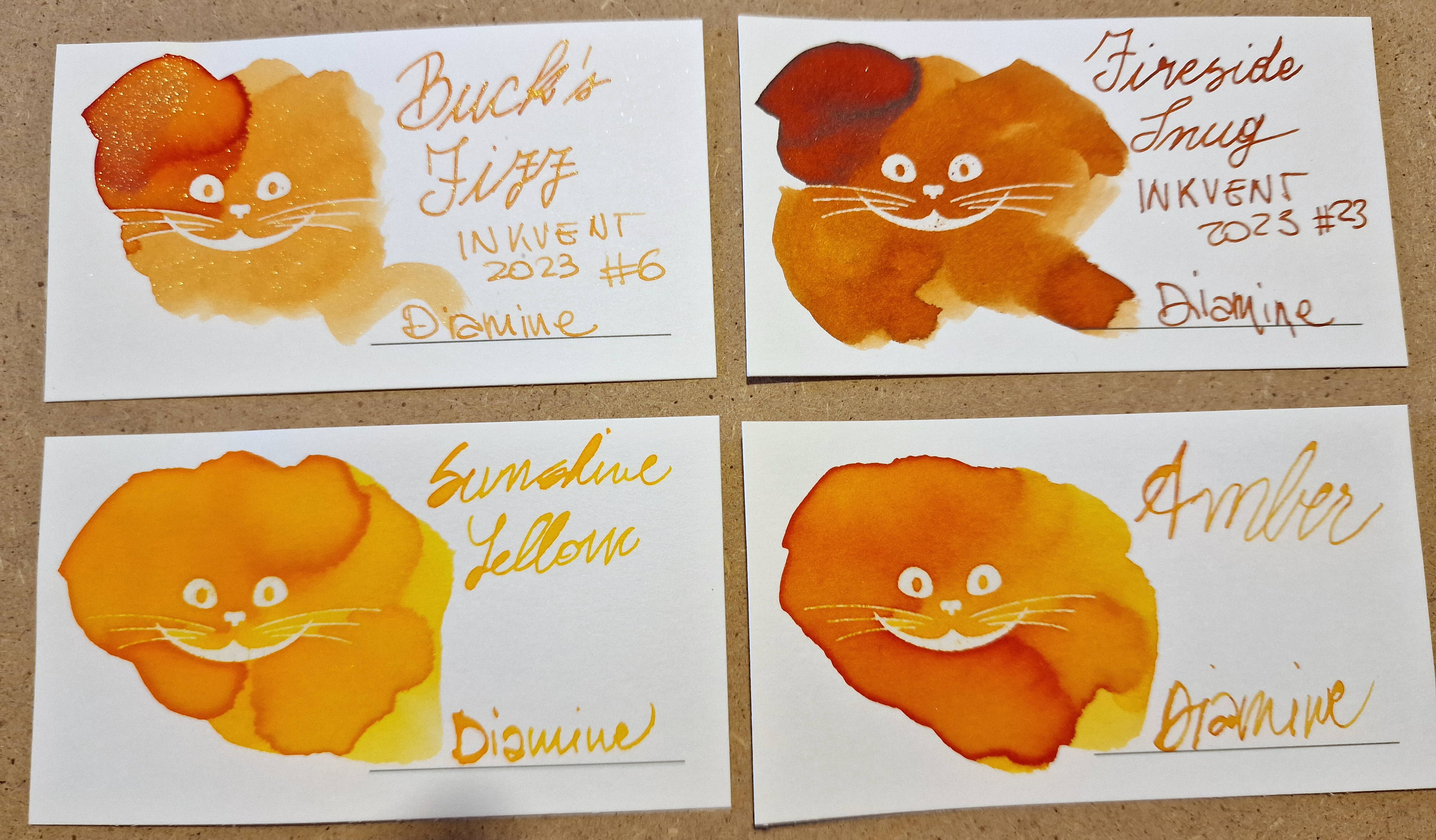 Nei confronti si può vedere la somiglianza con Diamine Amber ma è una somiglianza solo di superficie. Amber è un inchiostro più moderato, con uno shading interessante e una lubrificazione migliore. A mio parere molto più gestibile di Sunshine Yellow (e più arancione, in effetti).