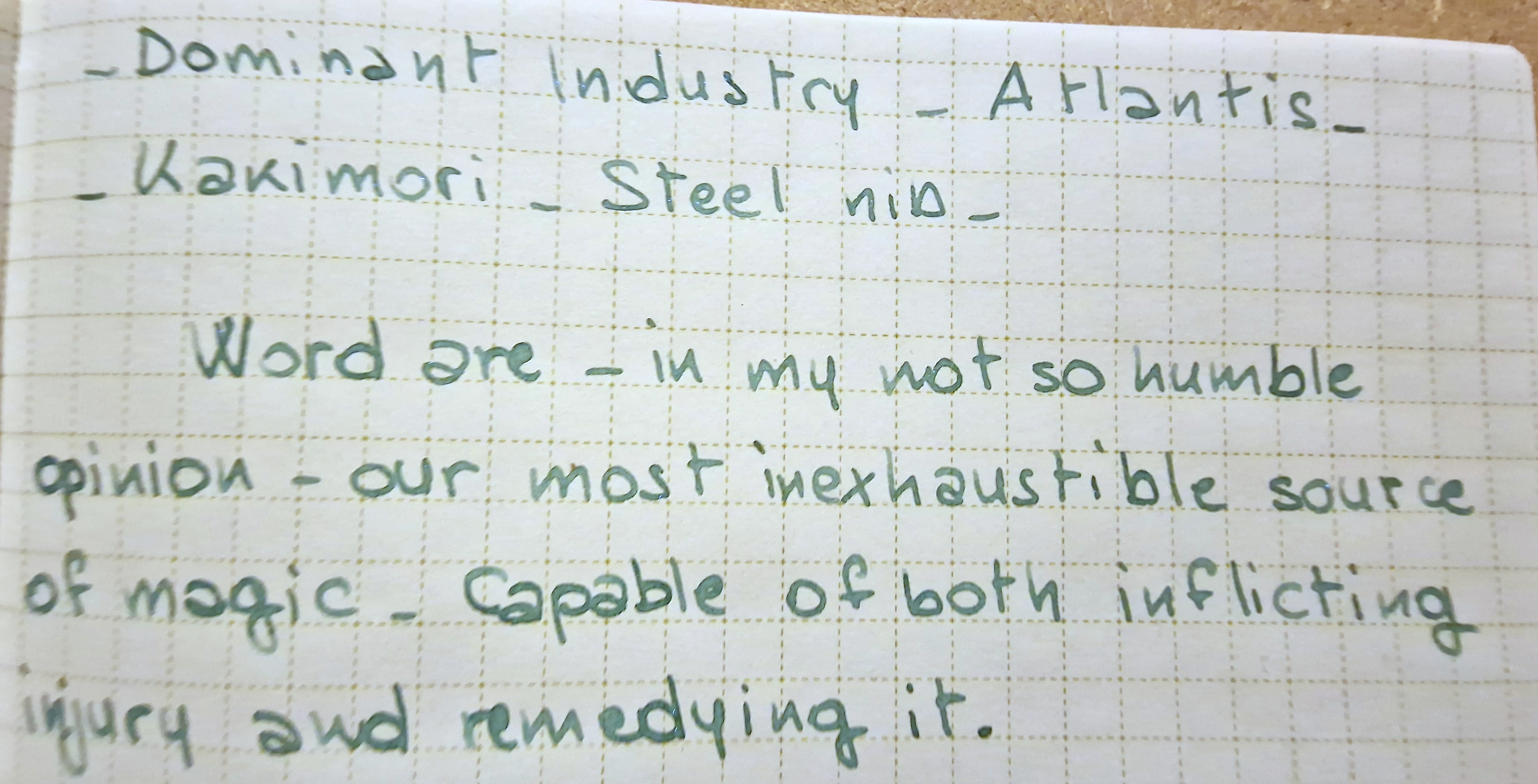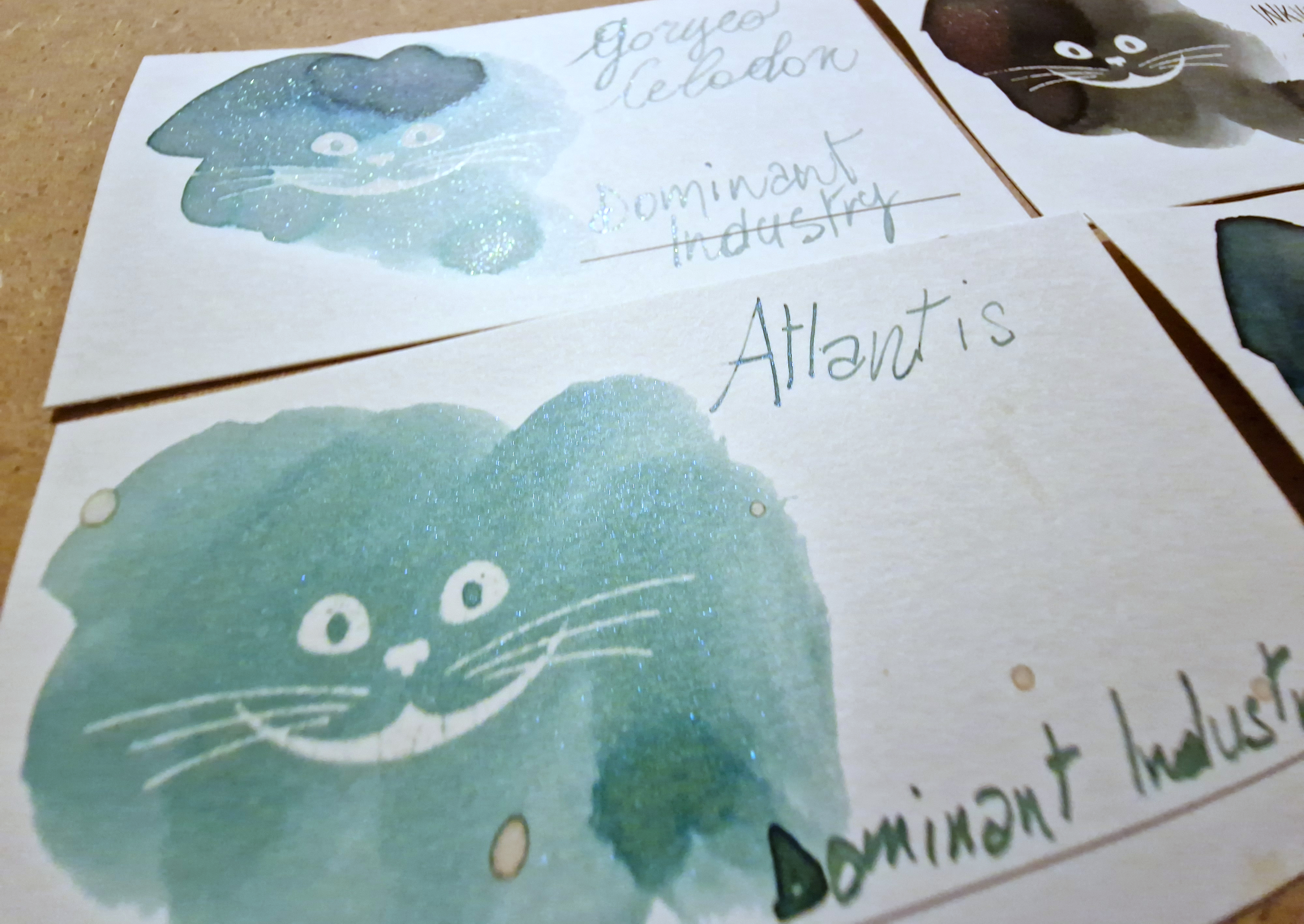 A chi consiglio questo inchiostro: a chi vorrebbe un Celadon Cat più frizzante; a chi ama i colori ispirati ai paesaggi marini; a chi cerca un inchiostro shimmer che non sia il solito dorato o argentato; a chi ha comprato Goryeo Celadon e lo trova troppo chiaro. Atlantis è ben leggibile anche con pennini extra-fini.