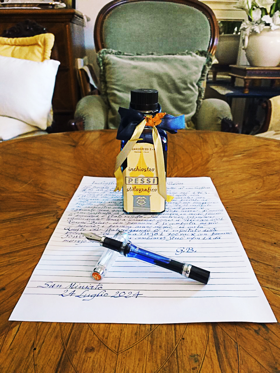 Ho ritrovato una boccetta di inchiostro Edoardo Pessi Padova da 250 ml,non ancora usata, che comperò mio nonno prima del 1963.E’ un inchiostro che come minimo ha 61 anni. Il colore non c’è scritto ma presumo che si chiamasse Blu Royal che ho ribattezzato Cobalto. Lo conservo gelosamente come se fosse il sacro olio di nardo.