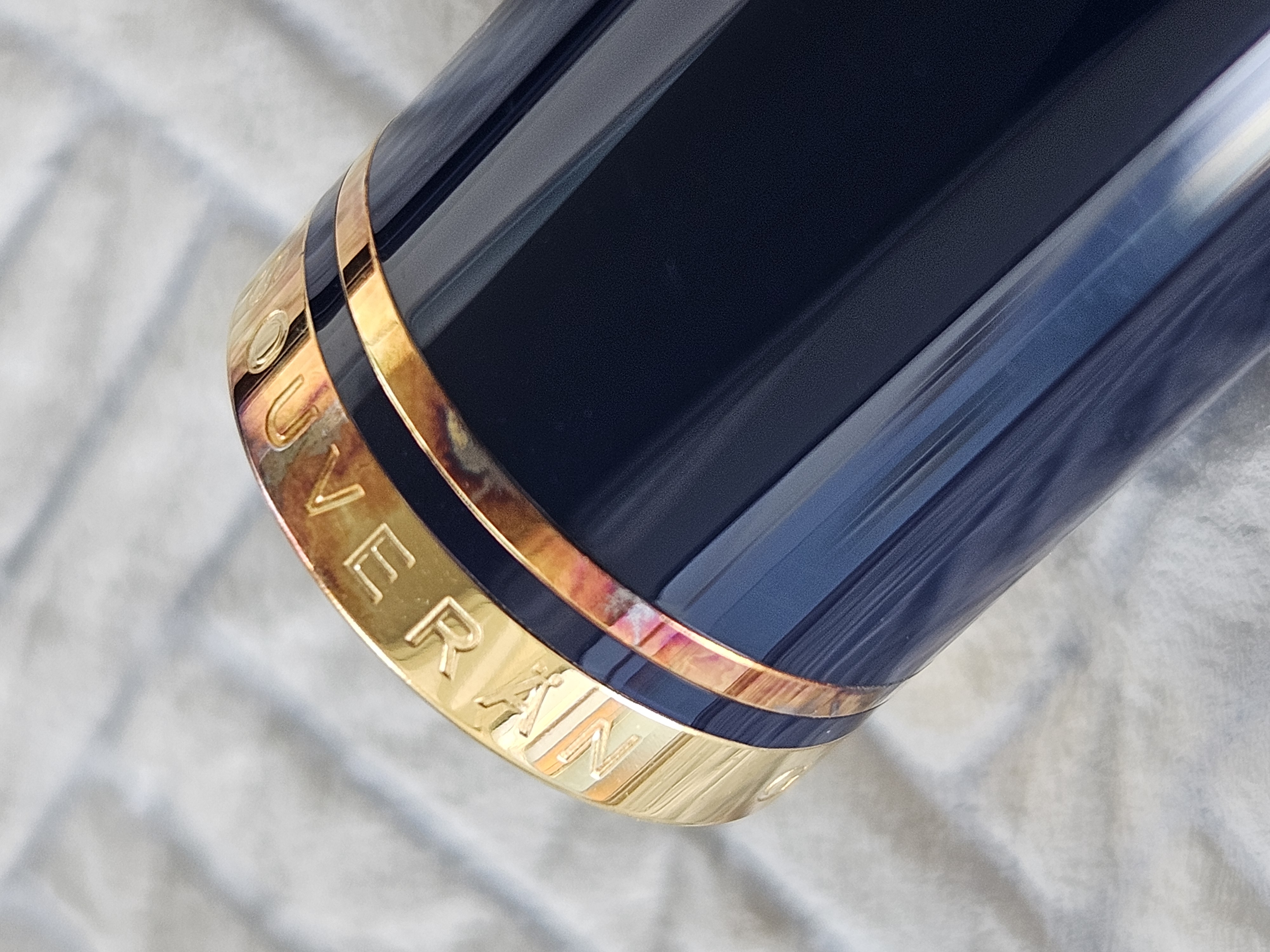 Buongiorno, chiedo il vostro aiuto, questa pilikan M800 presenta questi aloni sull'anello dorato del cappuccio ed alla base, è stata riposta dopo pulizia con un panno microfibra in un portapenne Kaweco in pelle e dopo un mese circa è così: