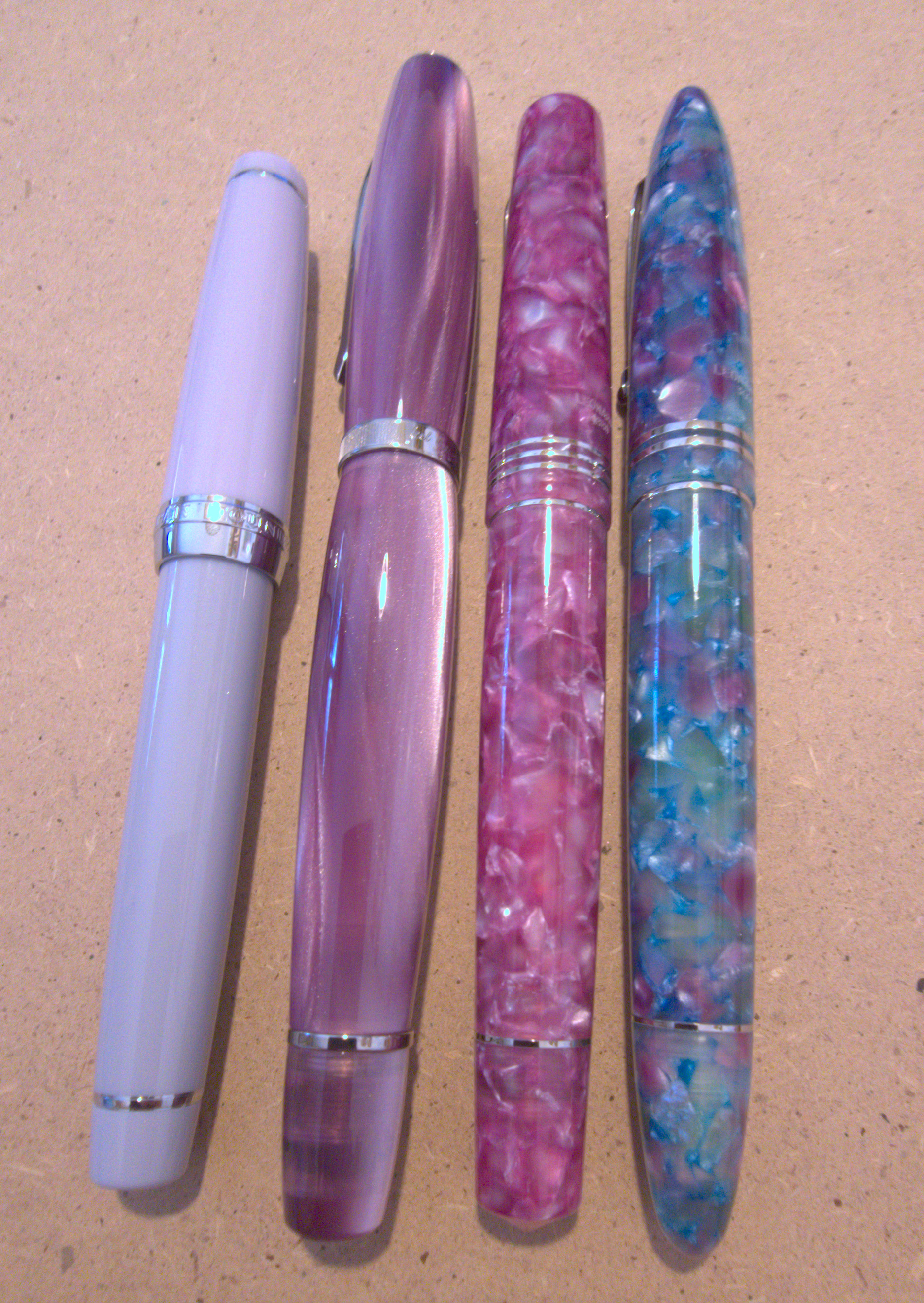 Le forme cercano di ispirarsi a modelli classici ma con un tocco di innovatività, sia nelle curve che nelle resine usate. E non sempre sono le resine a dare il colore alle loro penne. Il modello Acquerello, per esempio, è dipinto a mano.