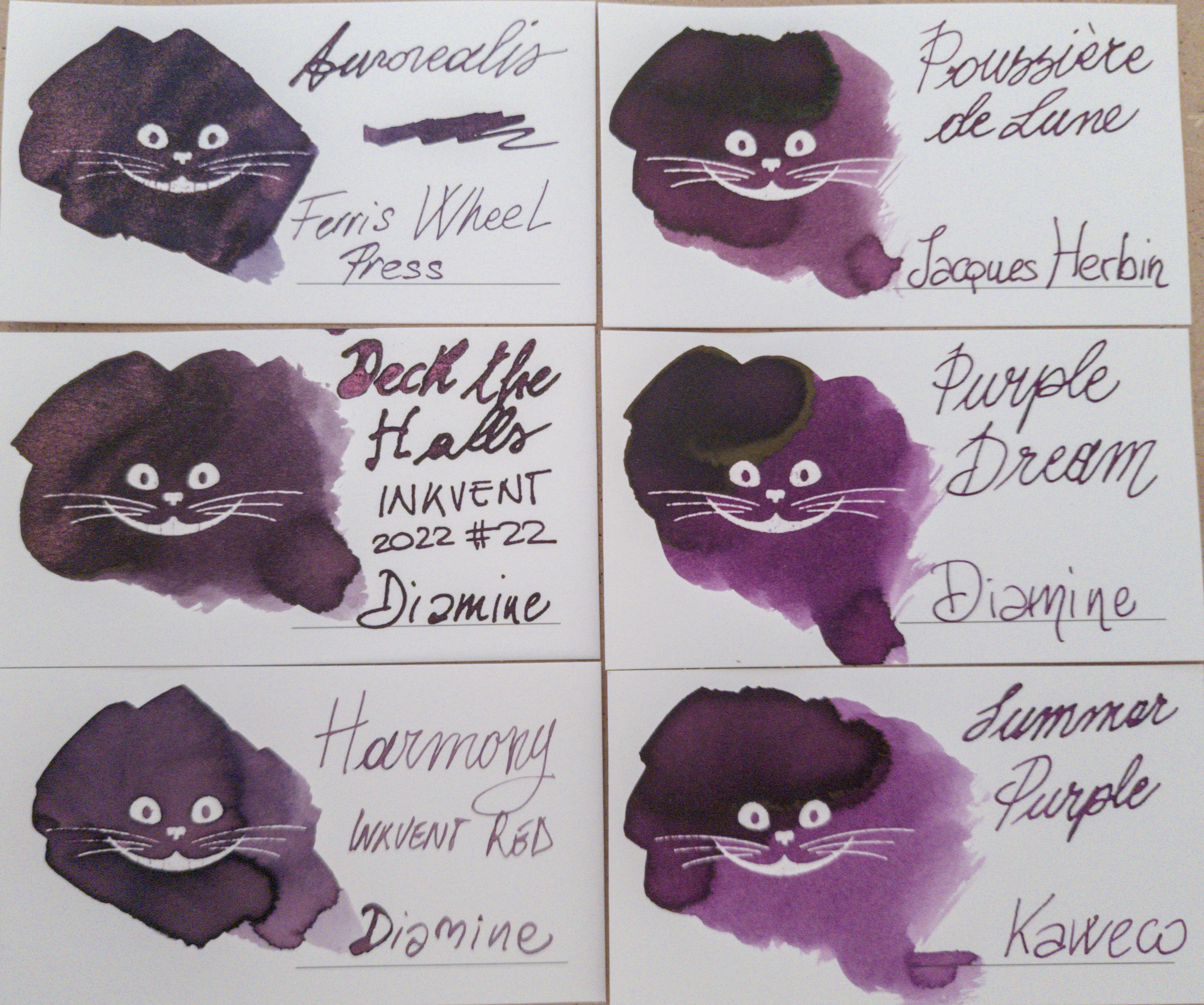 Un confronto è possibile anche con Poussière De Lune di Jacques Herbin [QUI: viewtopic.php?t=33039 ]. Poussière De Lune è meno desaturato e più chiaro ma il punto di borgogna è molto simile.