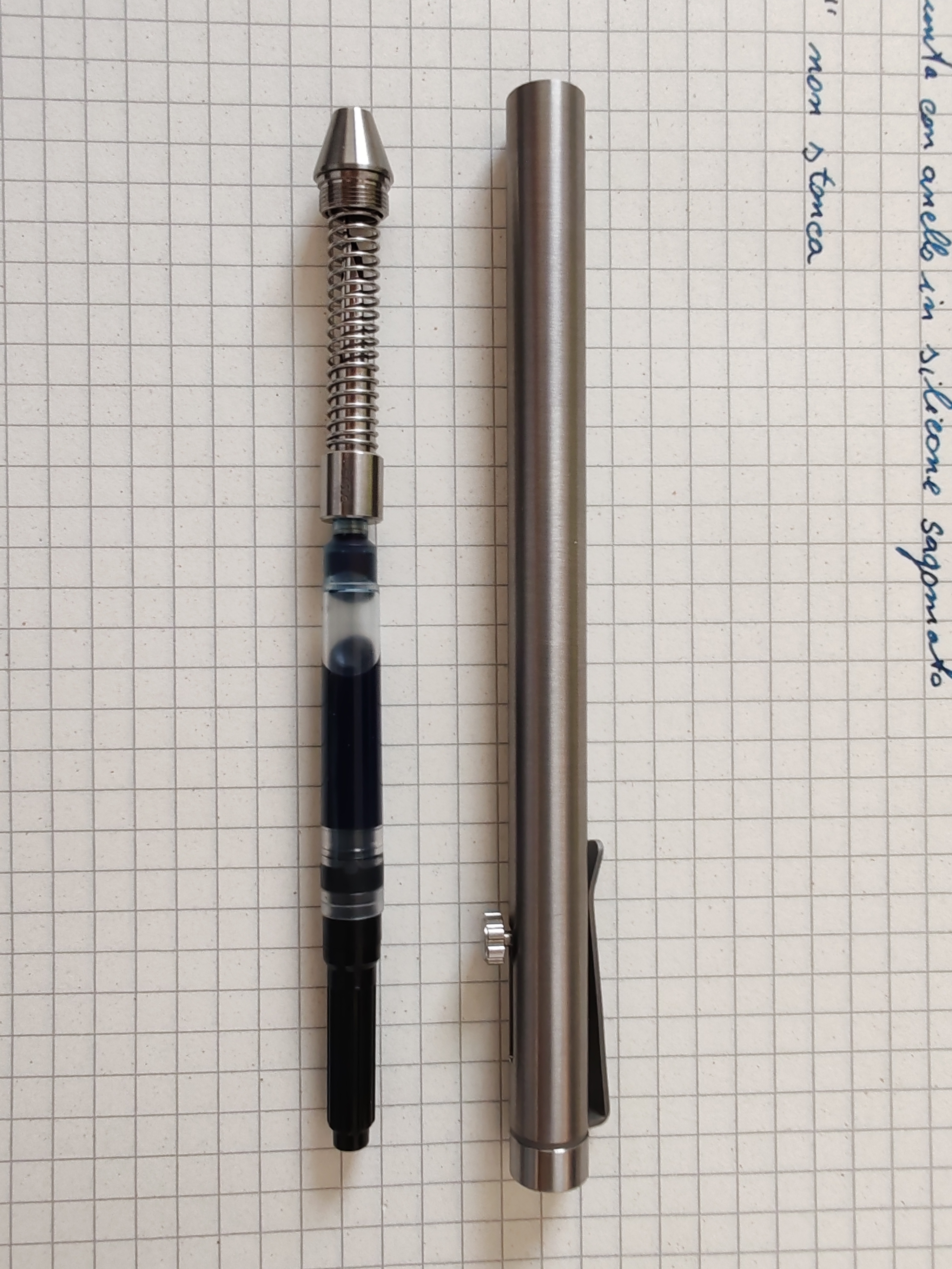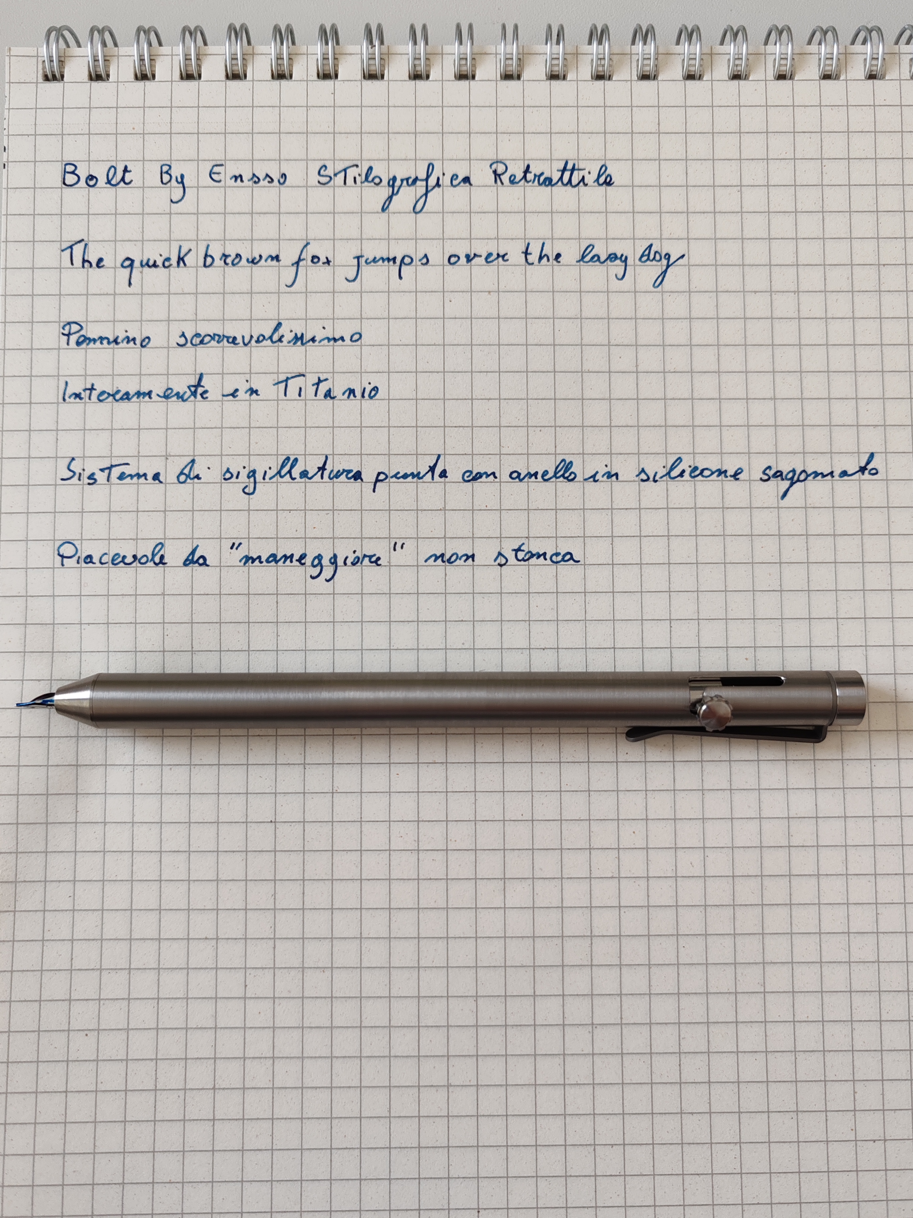 é una penna incredibilmente minimalista, interamente in titanio, con la clip come accessorio. Senza clip era troppo scarna che per i miei gusti...