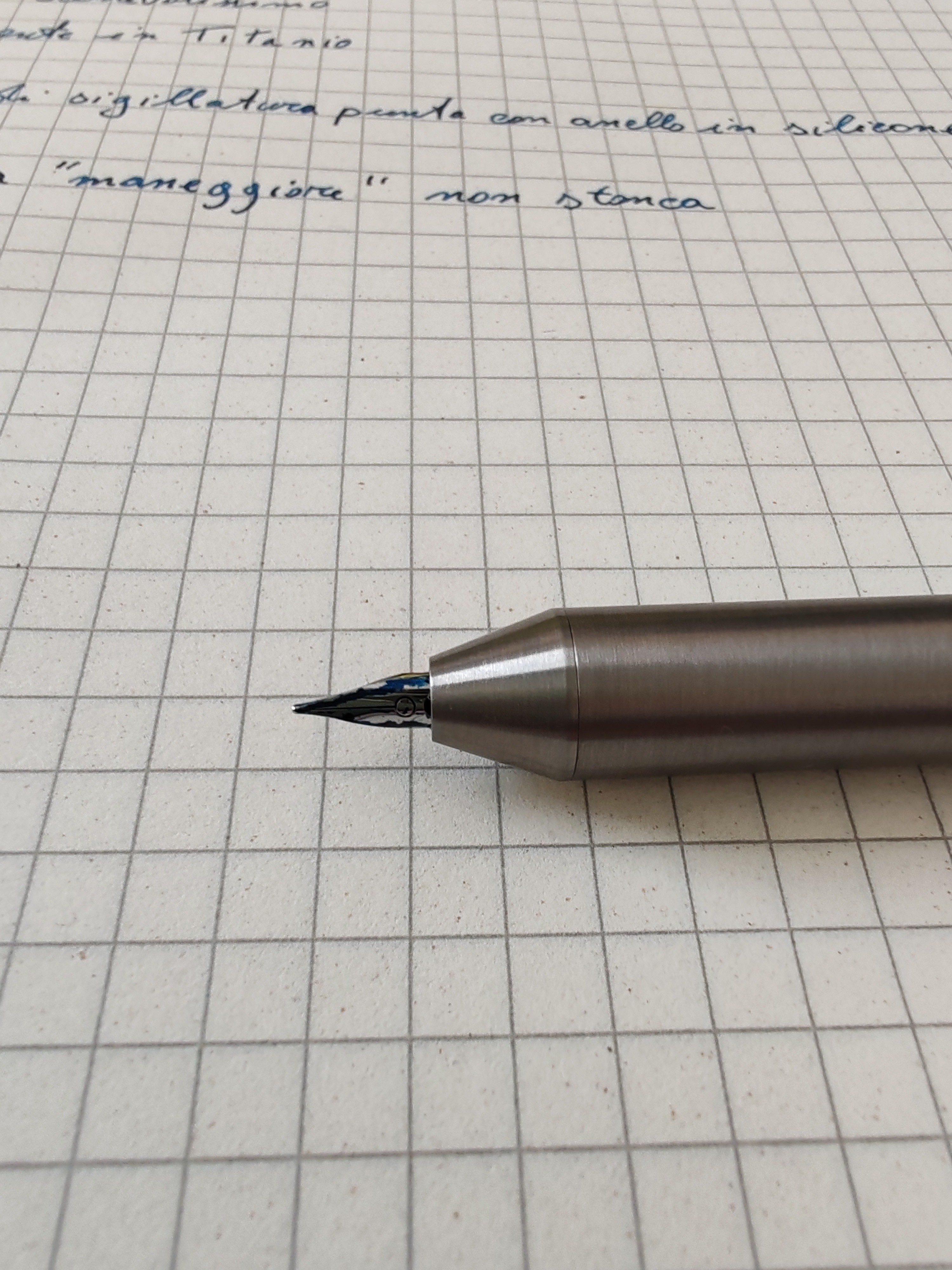 Sul pennino e sulla guarnizione di silicone: la tenuta mi sembra ci sia, la penna riparte sempre senza esitazioni, ma ho come l'impressione che il gommino faccia un po' da "raschiaolio" accumulando, dopo diverse aperture/chiusure, un po' d'inchiostro sul pennino stesso che diventa più bagnato del solito.maylota ha scritto: ↑martedì 27 agosto 2024, 11:17 A me piace molto la forma minimale e senza fronzoli e devo dire che scrive bene. E' come avere una matita.
