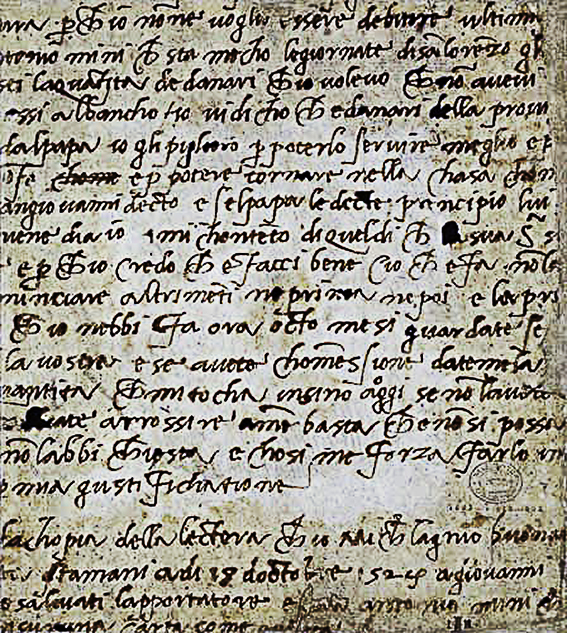 "L'ultima tua lettera per non la potere nè sapere leggere, io la gittai in sul fuoco: però io non te ne posso risponder niente. Io t'ò scritto più volte, che ogni volta che io ò una tua lettera, che e' mi vien la febre, inanzi che io impari a leggierla. Però io ti dico, che da qui inanzi tu non mi scriva più, e se tu ài da farmi intender niente, togli uno che sappi scrivere, che io ò il capo a altro che stare a spasimare intorno alle tua lettere."