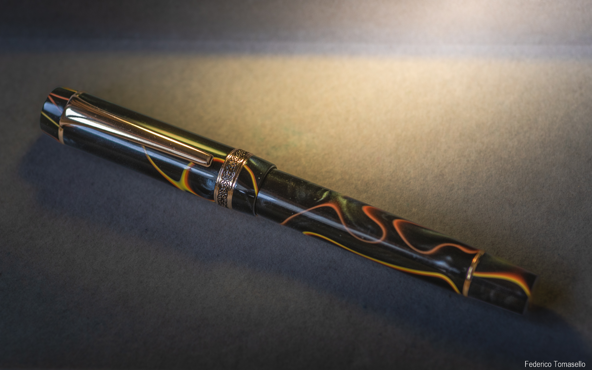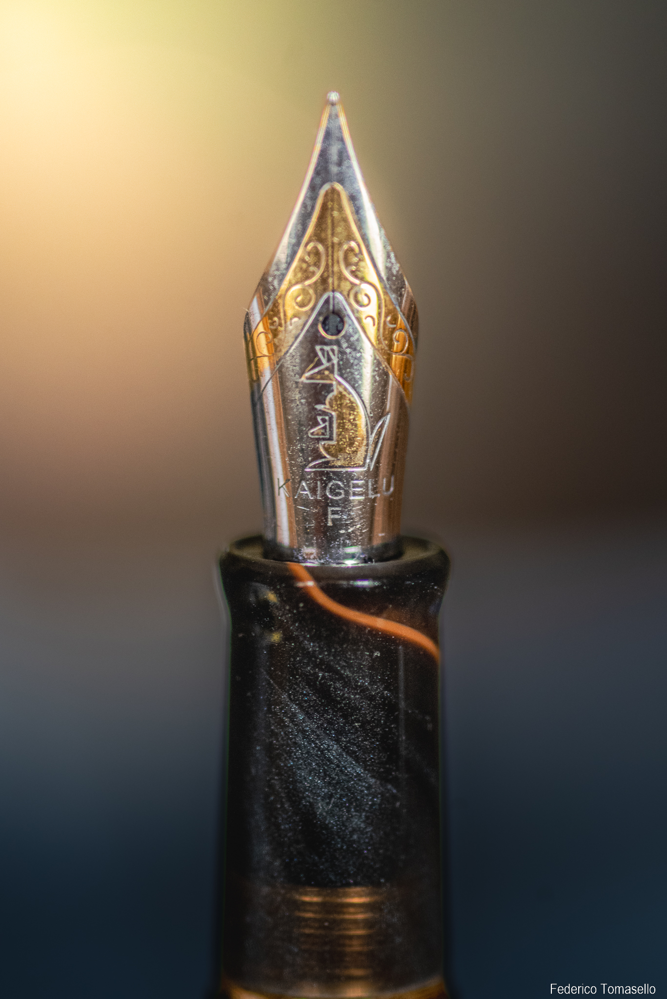 Ultima, ma non per importanza, c'è la Fuliwen 017: marchio un po' meno "chiacchierato" rispetto ai soliti, ma a quanto ho capito con un po' più di passato (ma non so quanto futuro), vista anche la presenza di prodotti "vintage" in giro per il web. La penna è la più costosa di quest'ultimo lotto, 28€, e secondo me li vale tutti, sia per l'estetica che per la funzionalità.