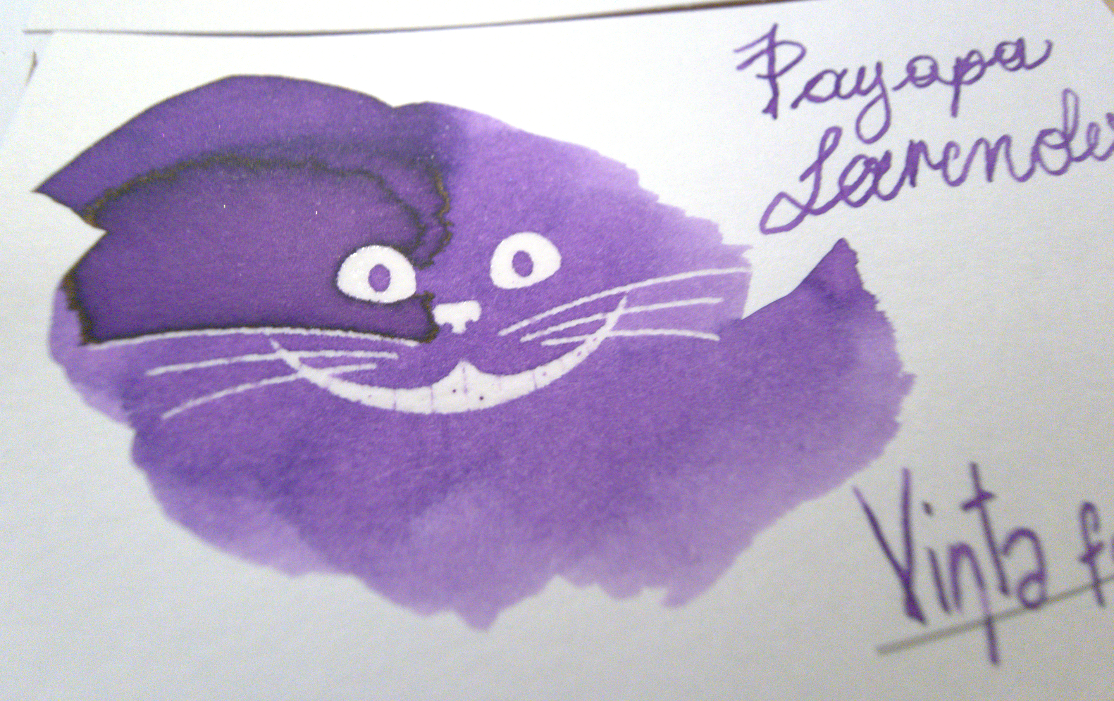 A prima vista, questo inchiostro non ha nulla di speciale. E' un color lavanda, molto accurato, per la mia opinione (Diamine, parlo con te e il tuo "lavanda" fluo partorito da qualche strana pasticca risalente agli anni '80 viewtopic.php?t=33001).