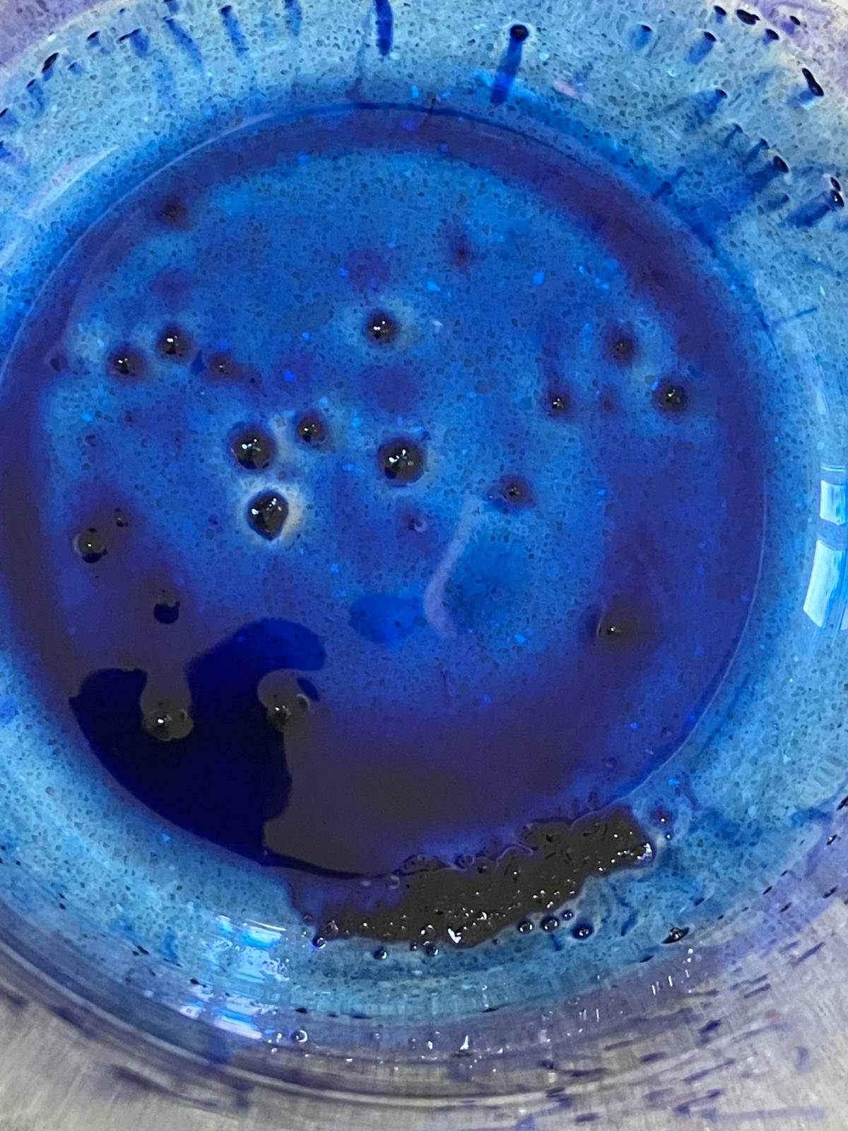 Il colore raggiunto con 200ml acqua e 0,5g di blu di metilene, mi è sembrato già interessante per le sfumature che produce, anche se un po’ chiaro per i miei gusti.
