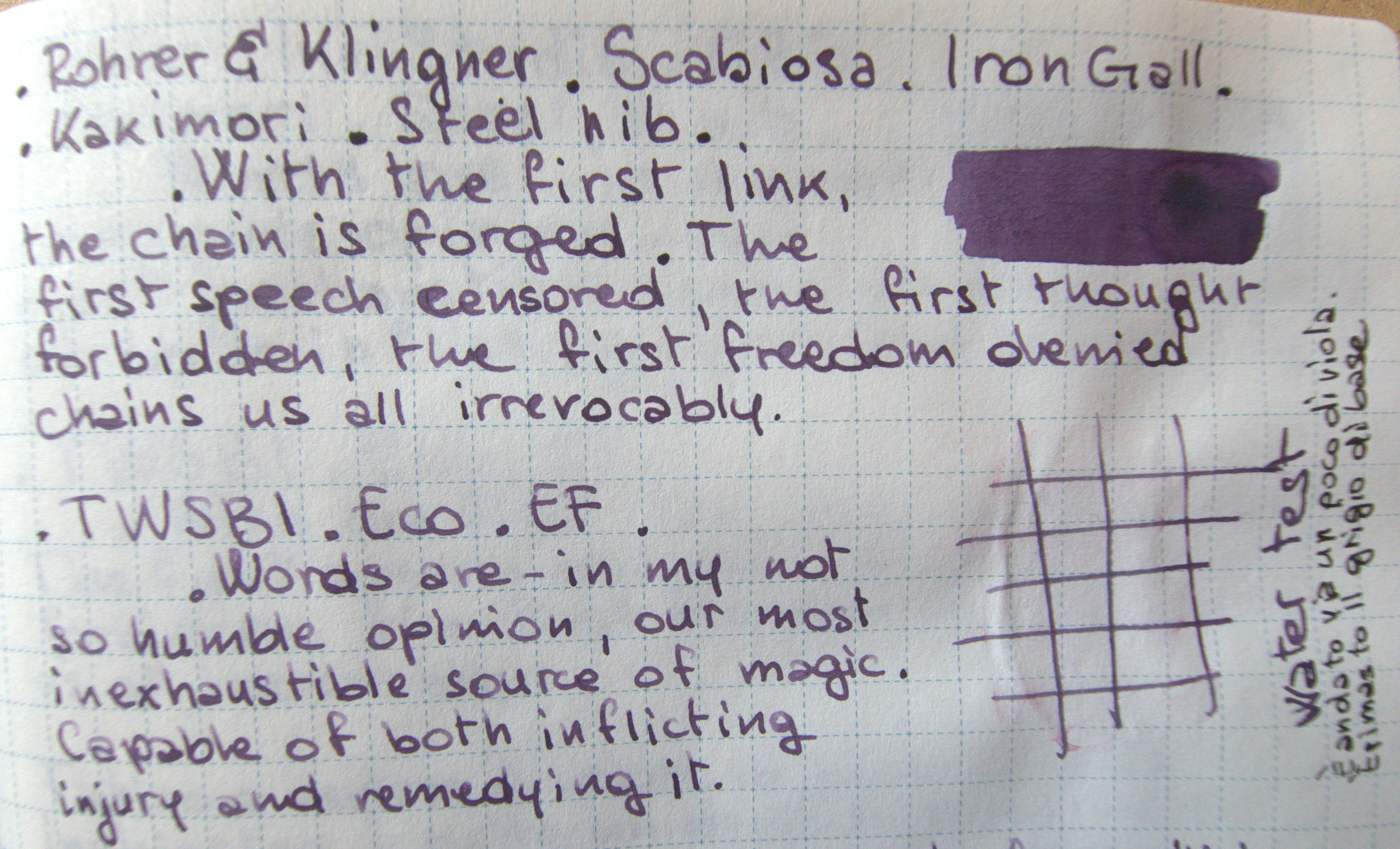 Ti ringrazio della risposta (apprezzo molto le tue recensioni) ma questo è un inchiostro che ho smesso di usare da diverso tempo perchè mi diede una sensazione di troppo "asciutto" quasi da trascinare il pennino .