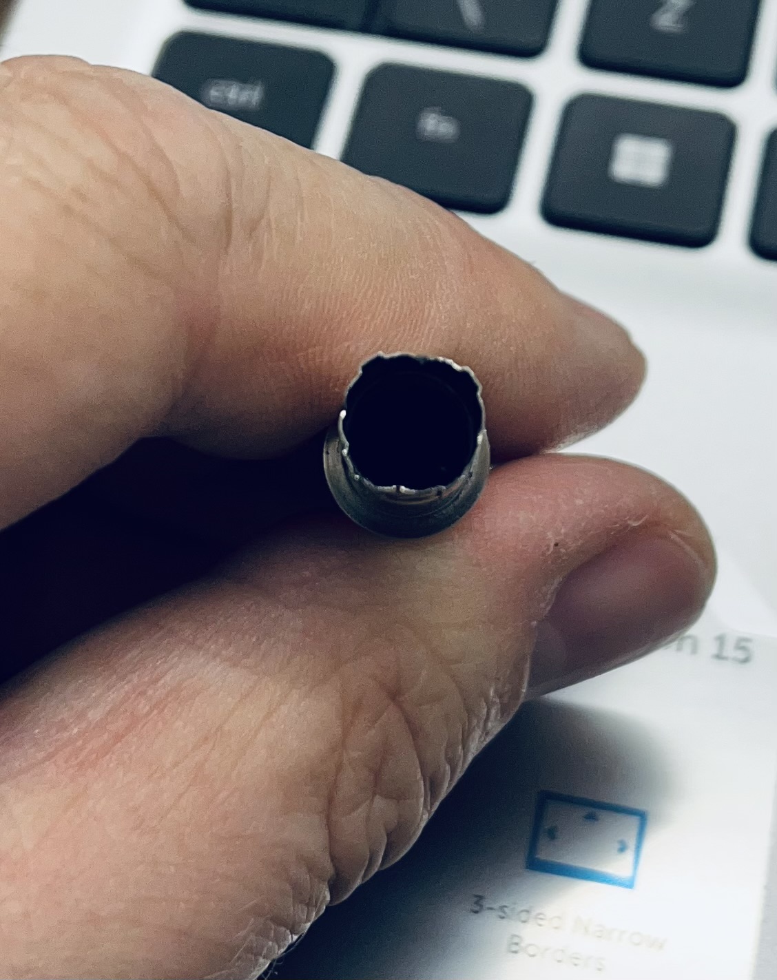 Si, @Esme. Io faccio cosi. Pinzette a becchi corti sottili per risagomare le tacche che tengono fermo il 'tappino". Poi verifico di non aver allargato troppo e semmai procedo a risagomare finché il tubo metallico scorre facile.