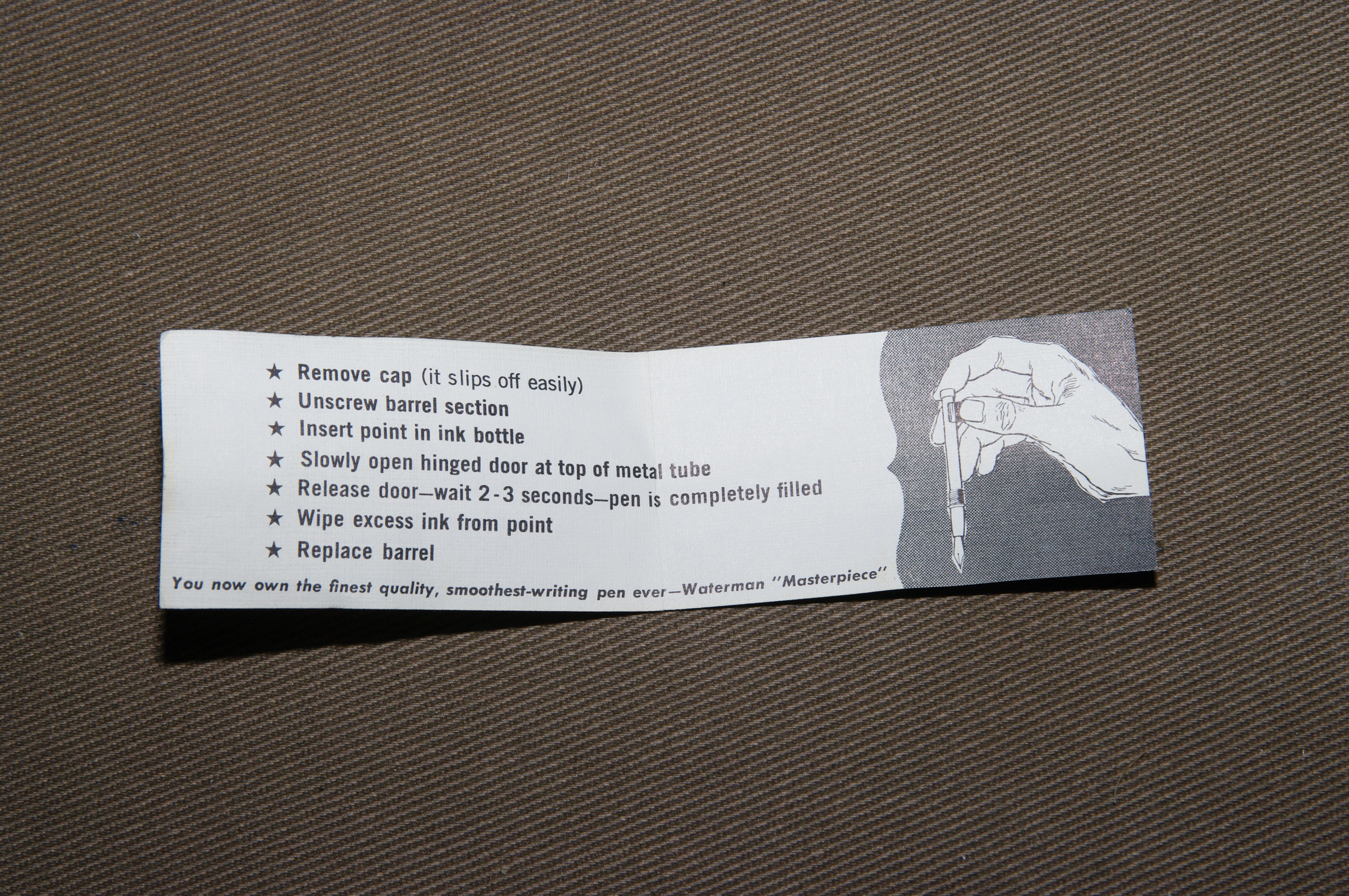 Sulla parte esterna porta una finestrella che per caricare si deve aprire per alcuni secondi poi richiuderla, credo porti qualche sistema di levette che aprendo la suddetta finestrella pressa la pompetta e chiudendola rilasci le leve e da alla pompetta l'aspirazione per risucchiare l'inchiostro.