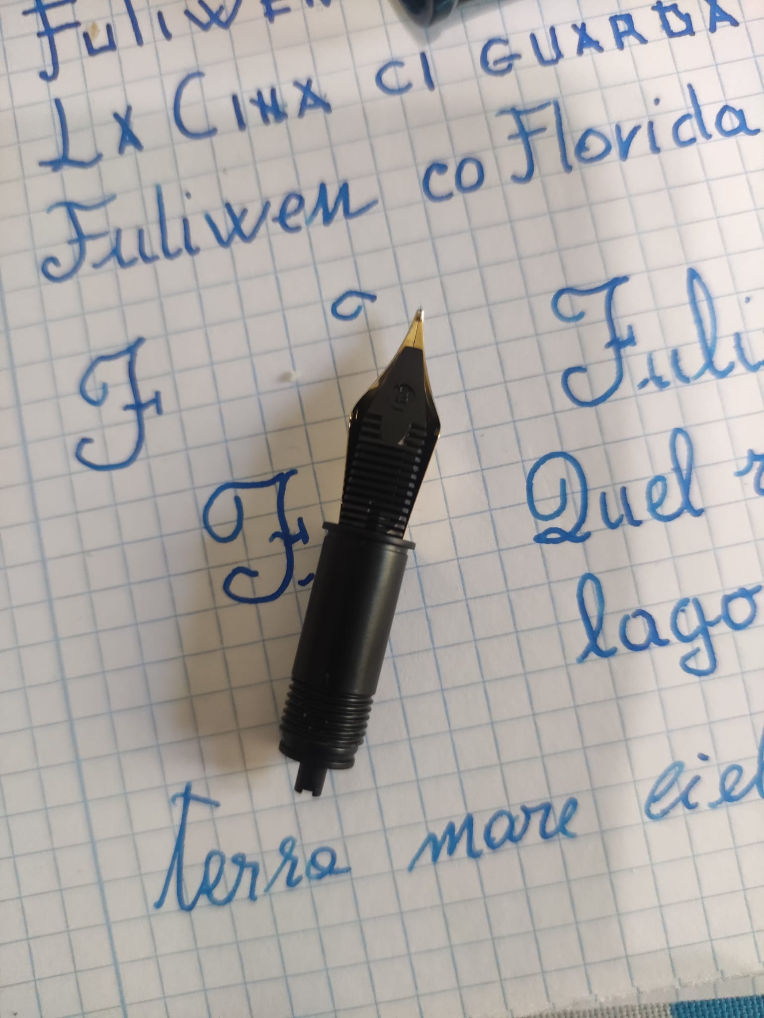 Ecco dunque un primo esperimento mettendo il pennino F sulla X750. Riuscitissimo, calza a perfezione. Feed e pennino sono su a frizione, dunque basta tirare ( con un minimo di grazie onde non scassare tutto) per estrarli e sostituire il pennino.