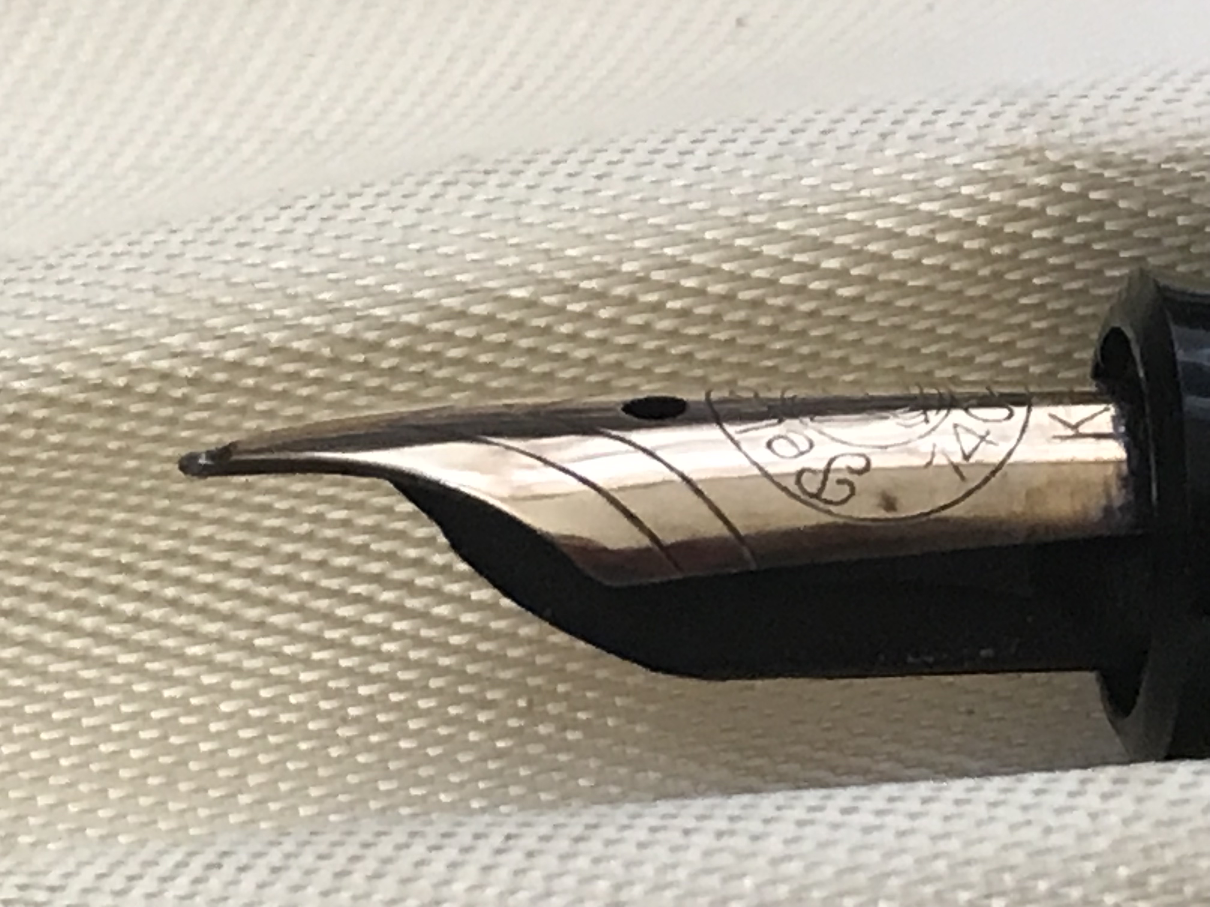 Pennino 14 k misura KEF che sta per Kugelsplitze extra Fein, ovvero, “Extra Fine a sfera” e, con mia sorpresa, con anche una buona flessibilità.