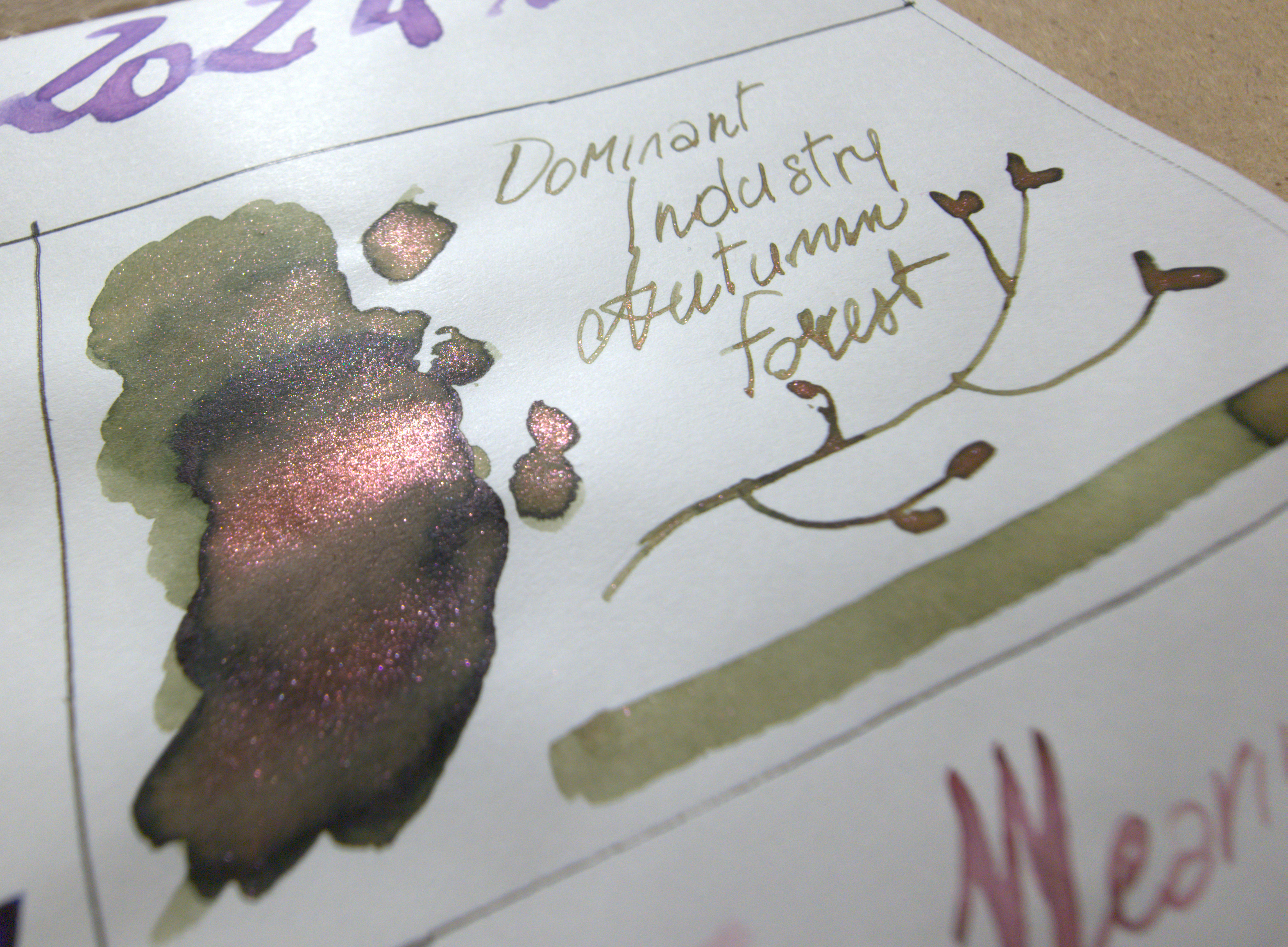Io che non amo i verdi, sono estasiata da questo oliva desaturato con quel glitter ramato. Ricorda il sottobosco autunnale, ha uno shading bellissimo. E' un altro inchiostro che ha a lungo abitato una delle mie penne quest'anno e merita assolutamente una menzione tra i top