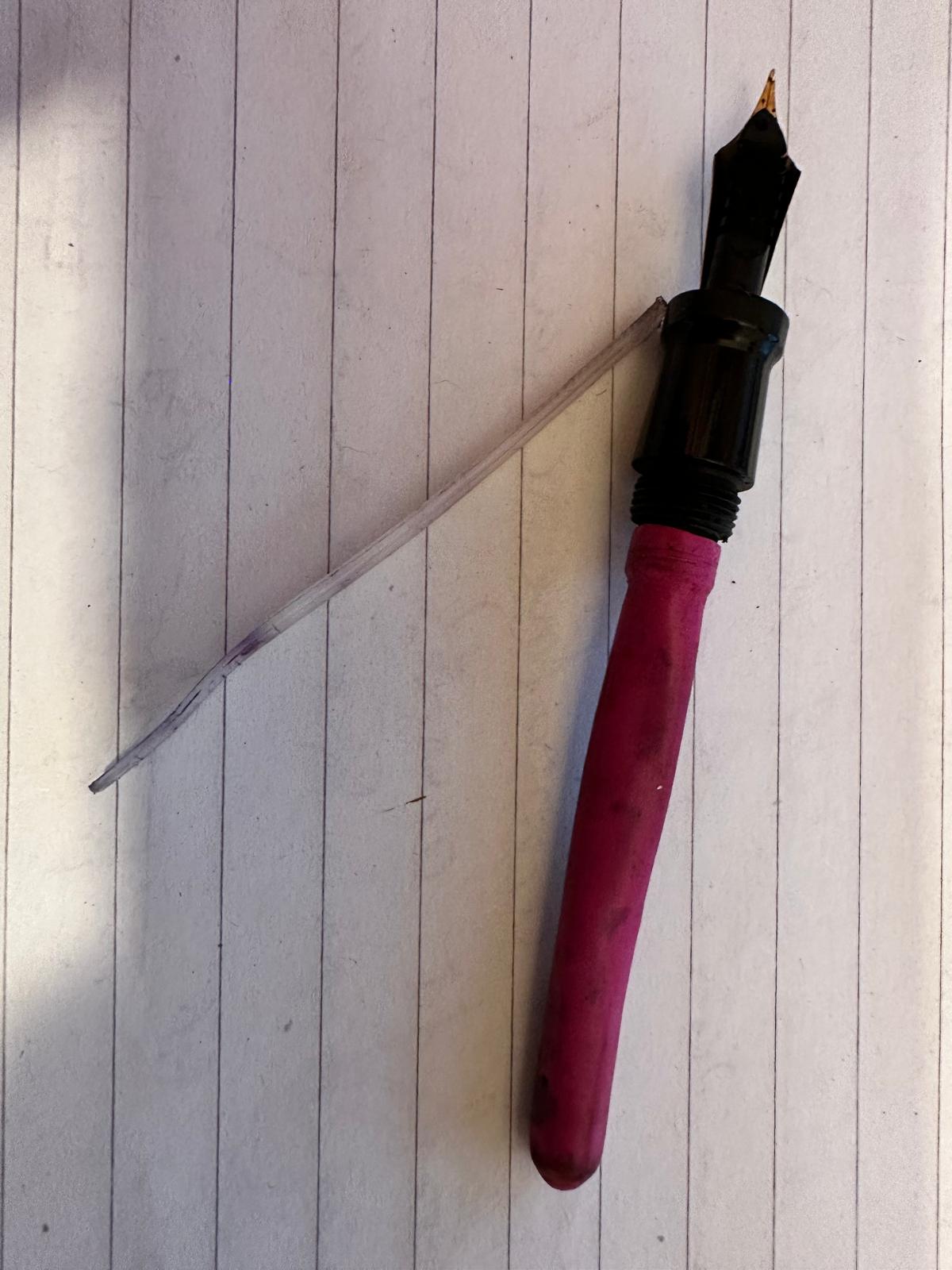 Ovviamente la penna non carica, penso sia perchè il palloncino è abbastanza "floscio" e quindi non in grado di aspirare una volta premuto e sia perchè la pseudo barra dà la sensazione di fare leva sotto il pulsante, ma penso non faccia il suo lavoro, non andando a premere contro il palloncino.