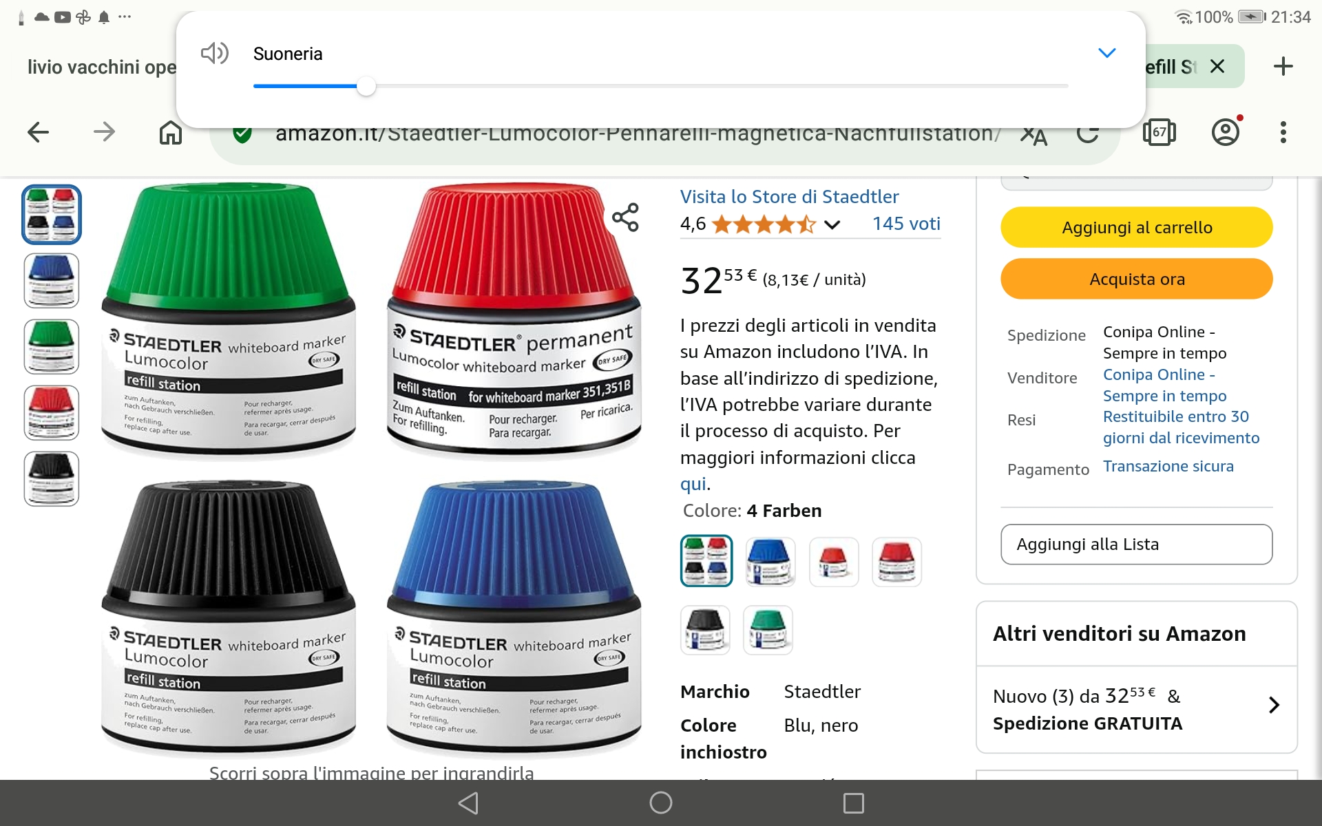 Esme ha scritto: domenica 19 gennaio 2025, 20:56 In rete, amz, ho trovato solo per il nero. 10€ per una quantità non precisata, la boccetta pare da 30ml. Non è che sia un prezzo che invogli molto, dato che non so nemmeno quante ricariche possano uscire.