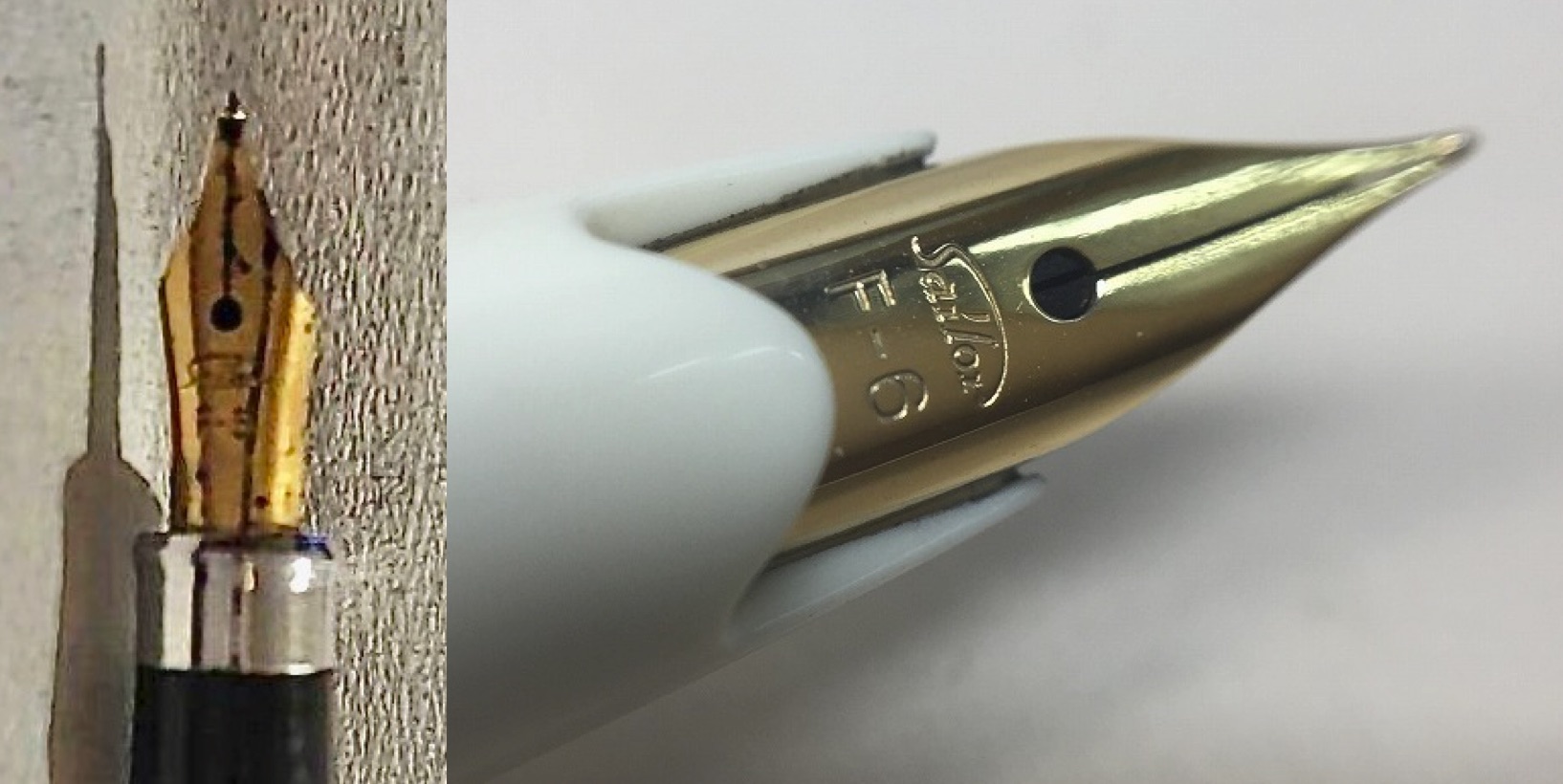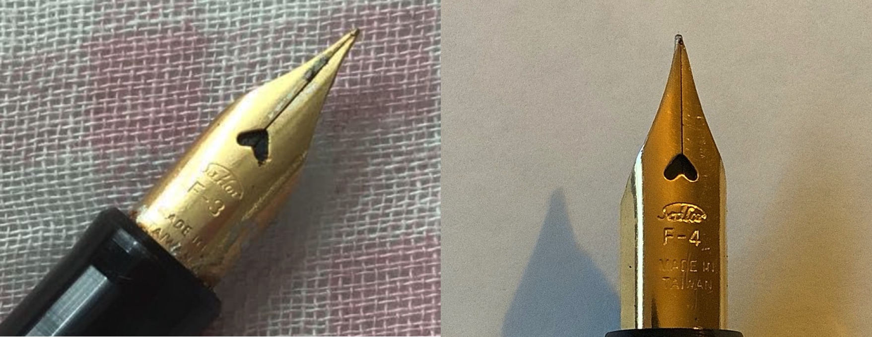 Sailor F-4 Taiwan (trovato sulle prime versioni della High-Ace prodotte tra il ’70 e ’80, e su penne in plastica con motivi floreali. F-4 senza Taiwan montato anche sulle Clear Candy e sulle Sheaffer Sentinel)