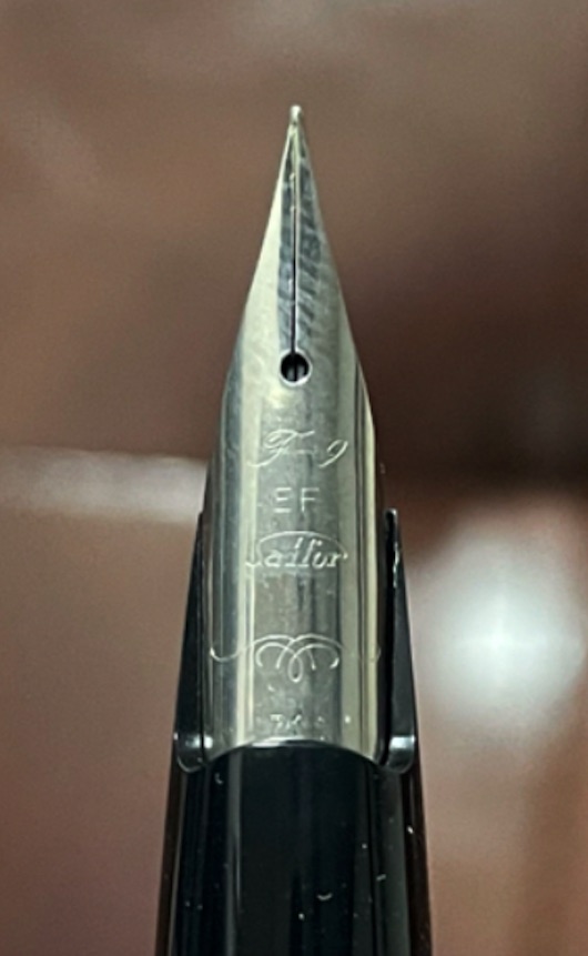 Ebbene sì, esiste anche una pennino F-9 che sembrerebbe essere montato solo su penne da scrivania; particolare è la lettera F in bella calligrafia e gli svolazzi sotto il marchio Sailor.