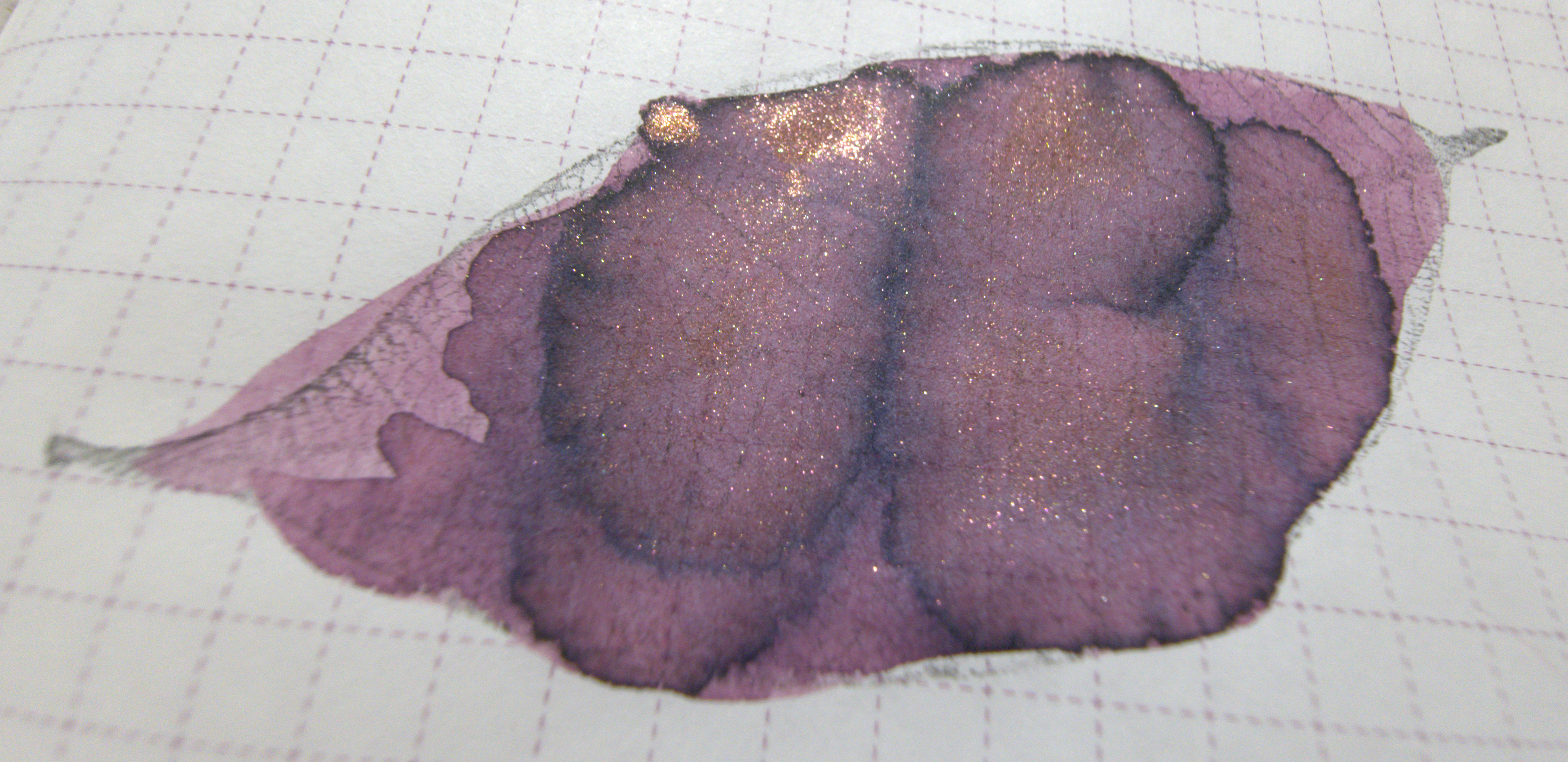 L'illustrazione (sopra e sotto) mostra le due principali anime cromatiche di questo inchiostro, dal più gentile malva a un viola più scuro e deciso quando lo si usa abbondante.