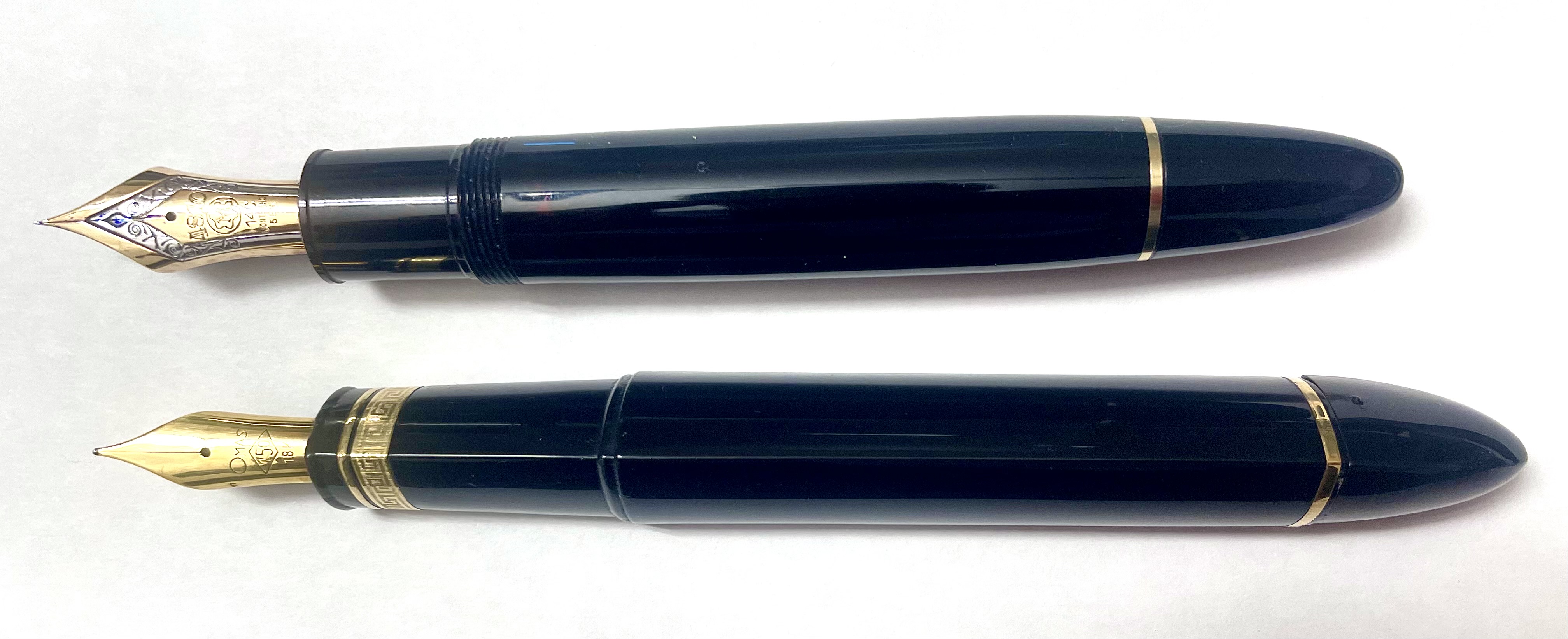 Invece la “mia 149” sarebbe una… 139 in ebanite ripple che ho visto in vendita, molto più bella, credo più comoda per la sezione svasata e con un pennino flessibile. Ma non ci metterò i soldi che costa a meno di non vincere al Superenalotto, cosa difficile posto che non gioco.