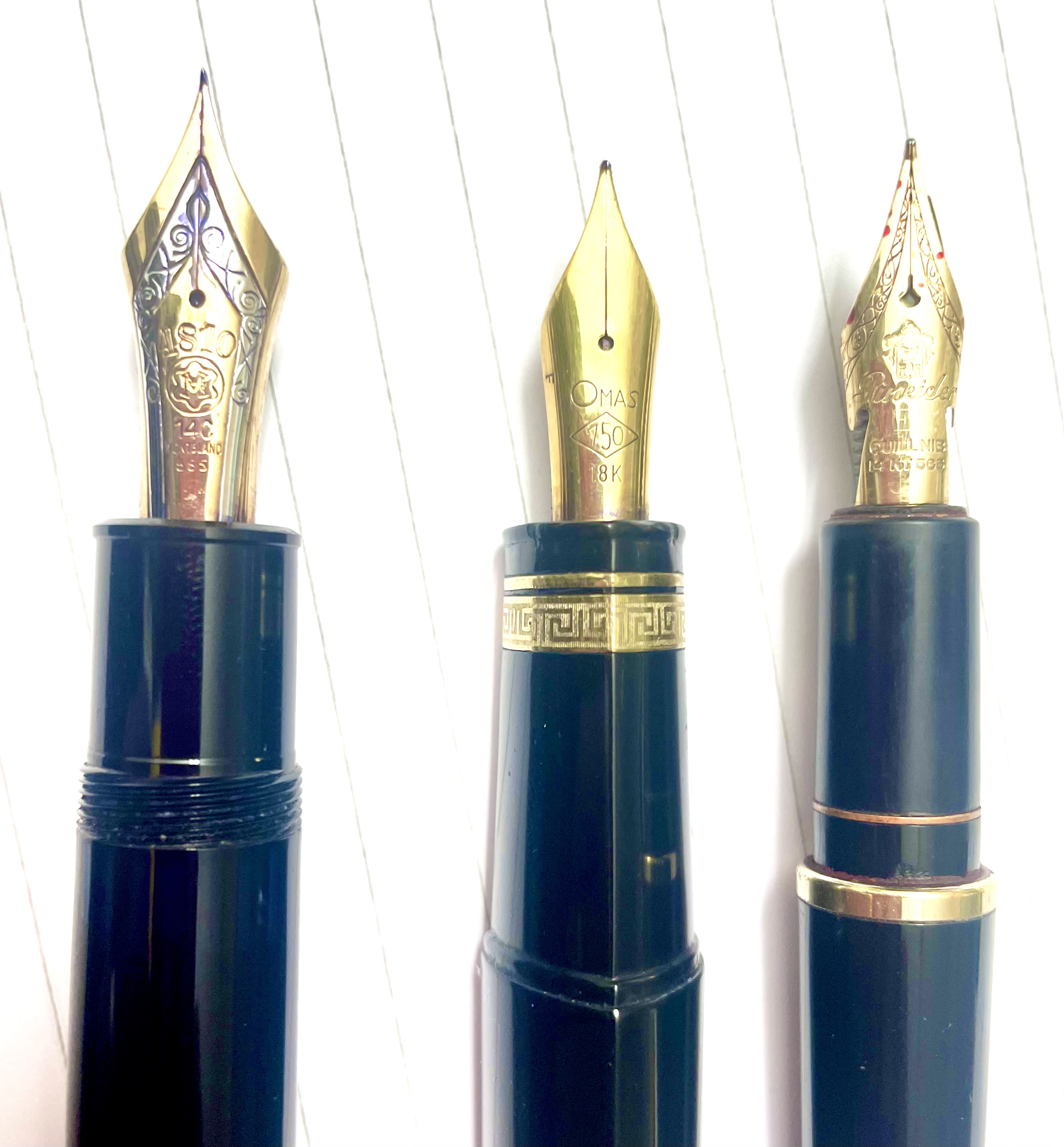 Nota di merito per Montblanc: il cappuccio è pressoché stagno, il che non è comune per una penna d'annata, il che aiuta a non far seccare l'inchiostro nell'alimentatore. La OMAS è più giovane, ma il cappuccio perde aria da tutte le parti e non aiuta certo a tenere il pennino bagnato.