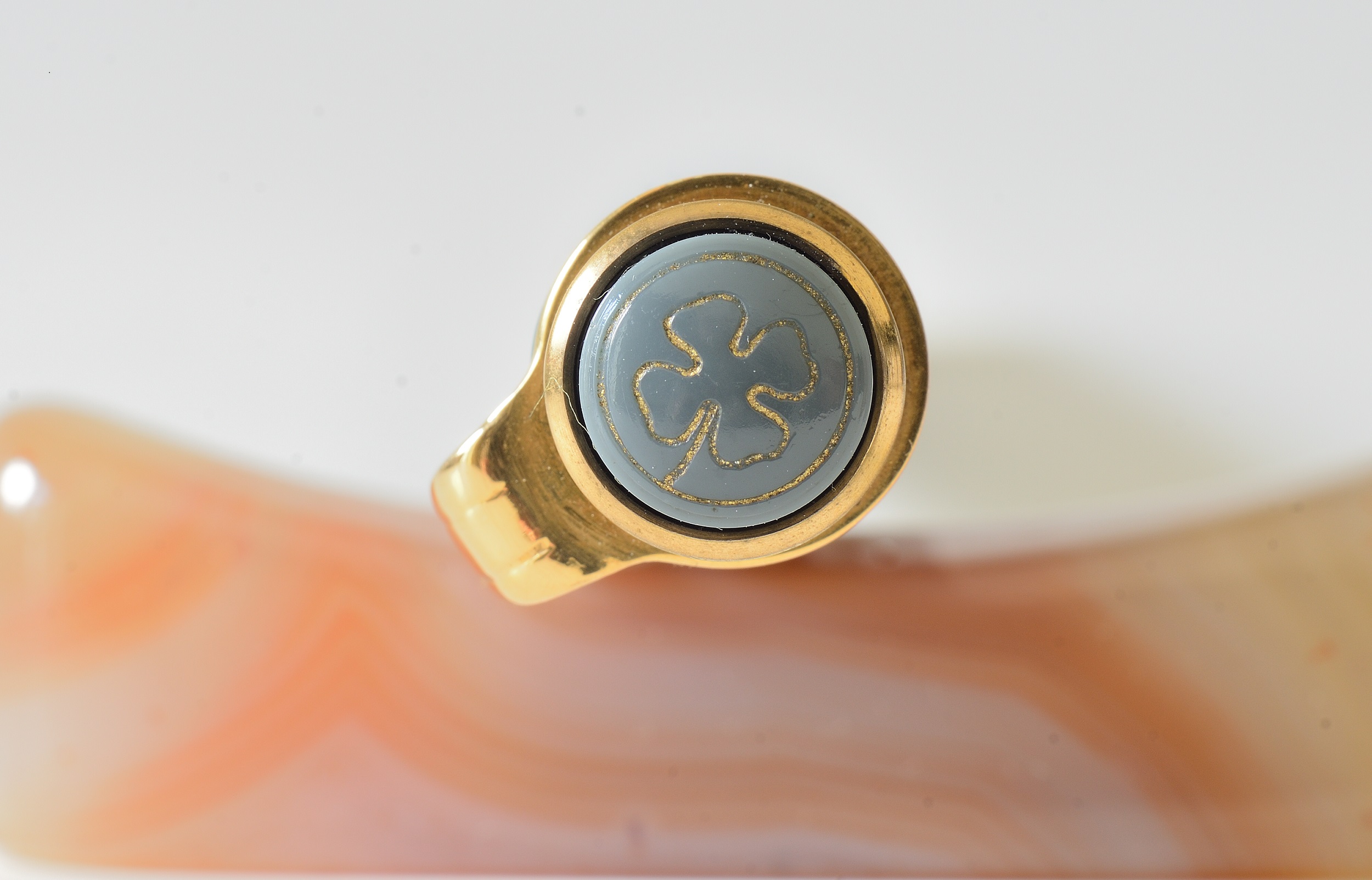 Alla sezione la scritta incisa RADIUS "38", alla sommità del cappuccio un quadrifoglio da cui, probabilmente