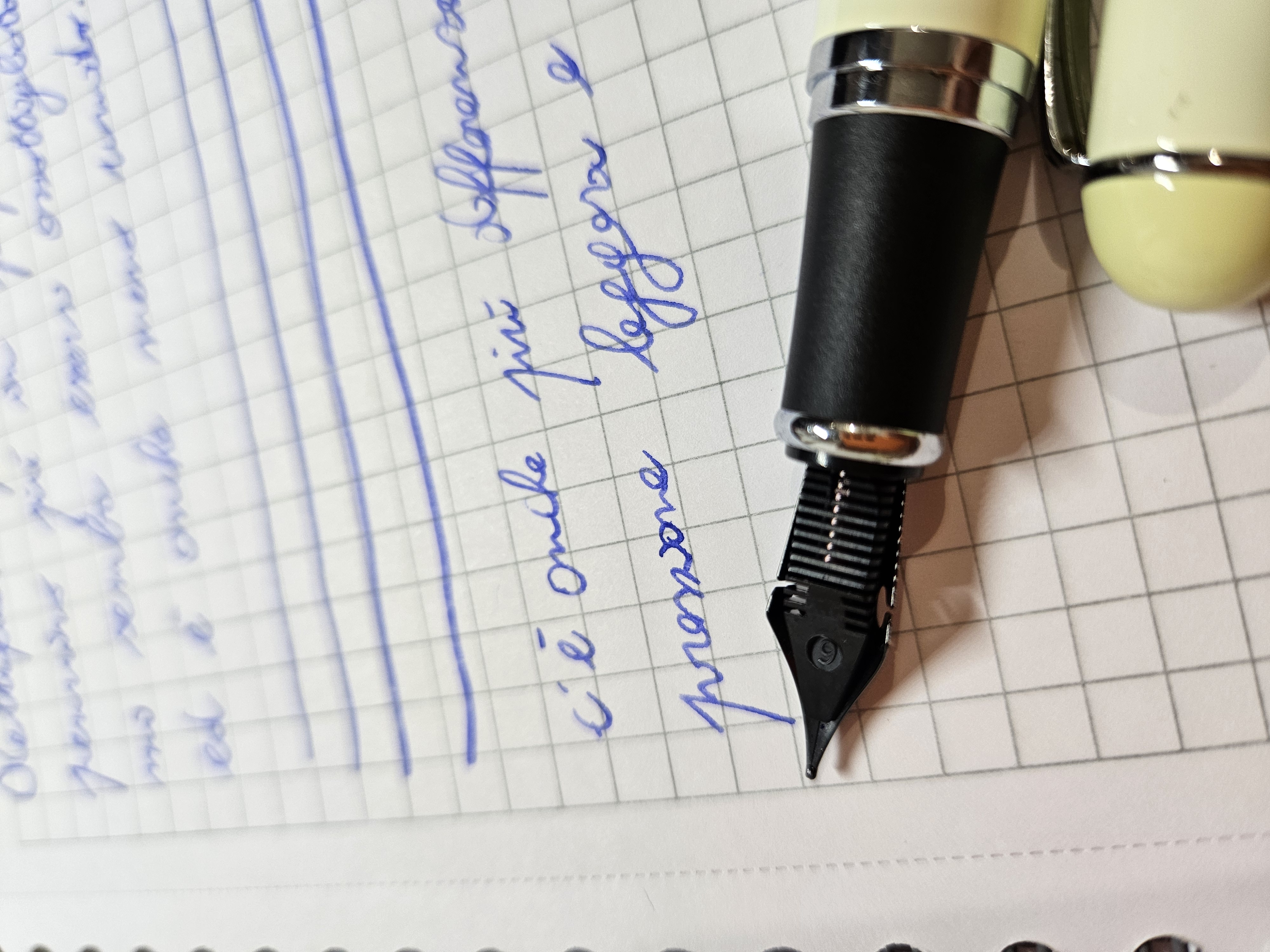 Ora ho spinto più in fondo il pennino, è avanzato ancora di qualche millimetro e sono arrivato a fine corsa, ma non ho notato differenze. Purtroppo non ho una Delta con cui fare altri confronti.