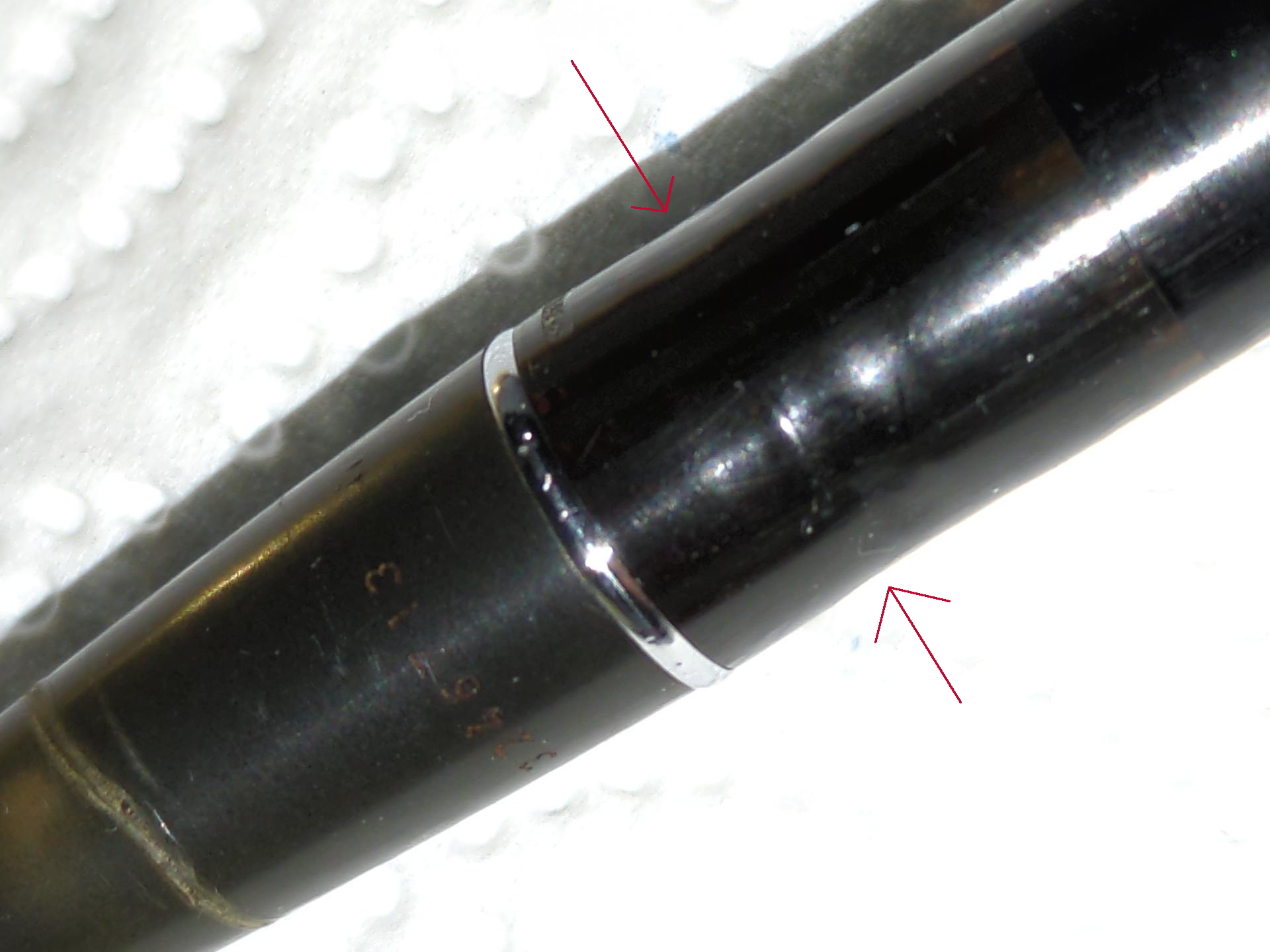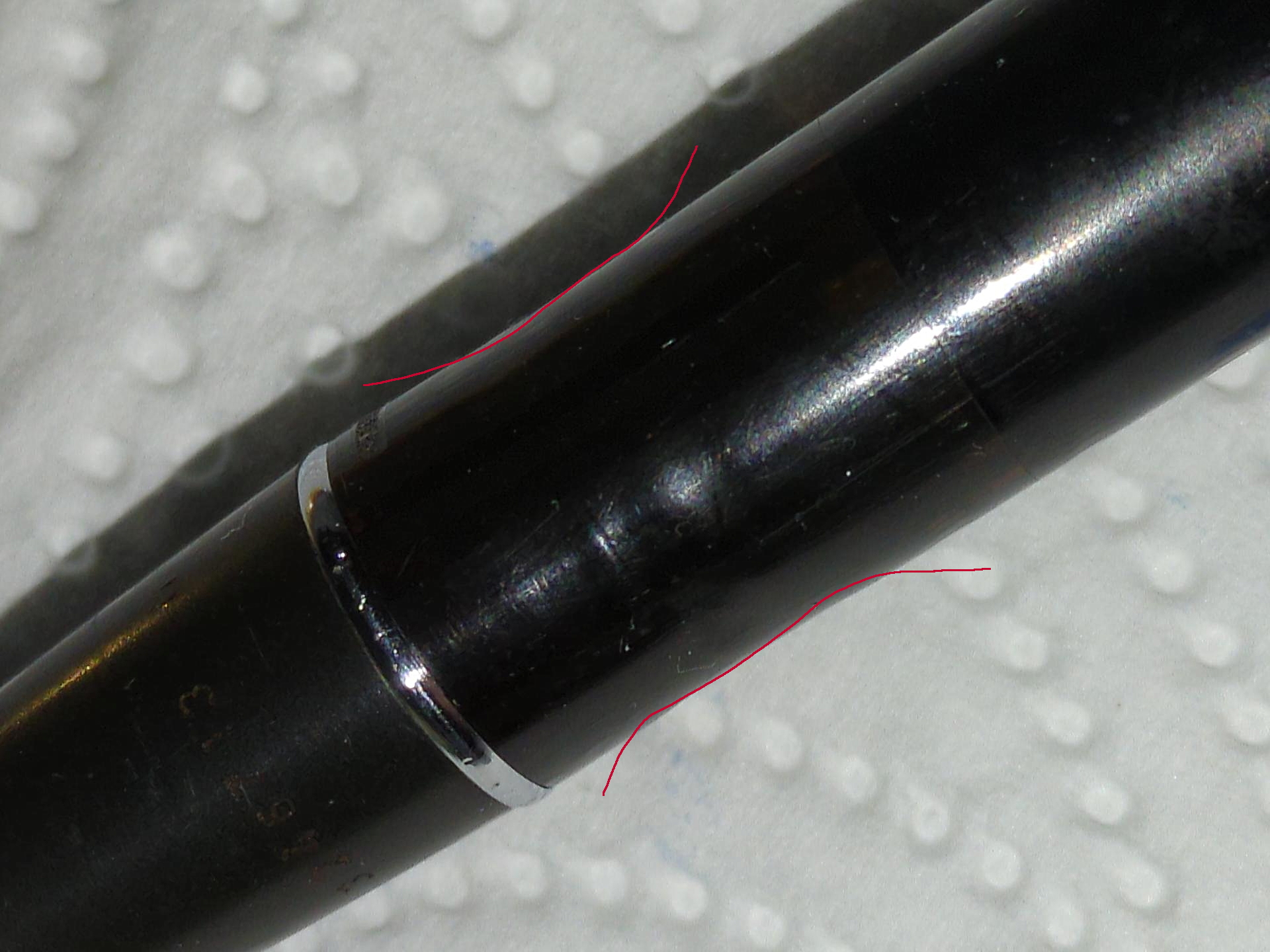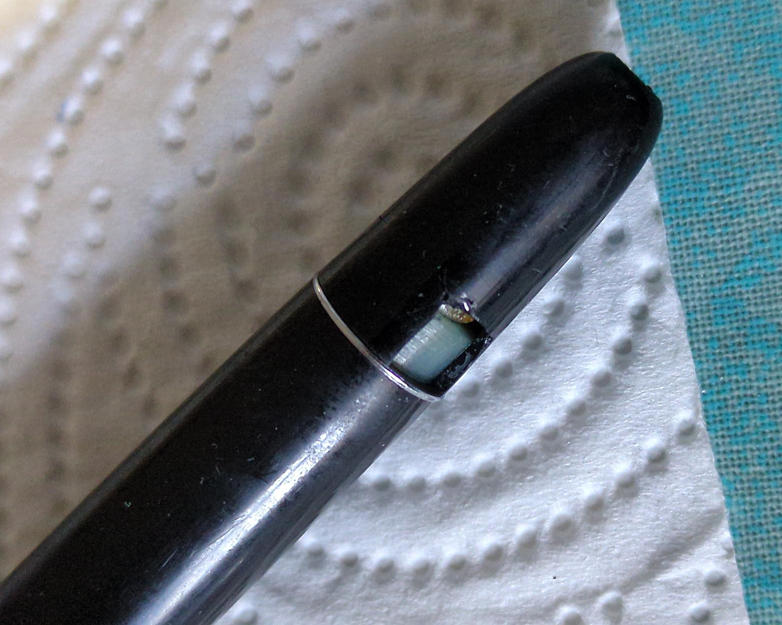 Sulla manopola del pistone è ancora presente il dischetto (che appare completamente nero, dal che deduco che il pennino sia un M).