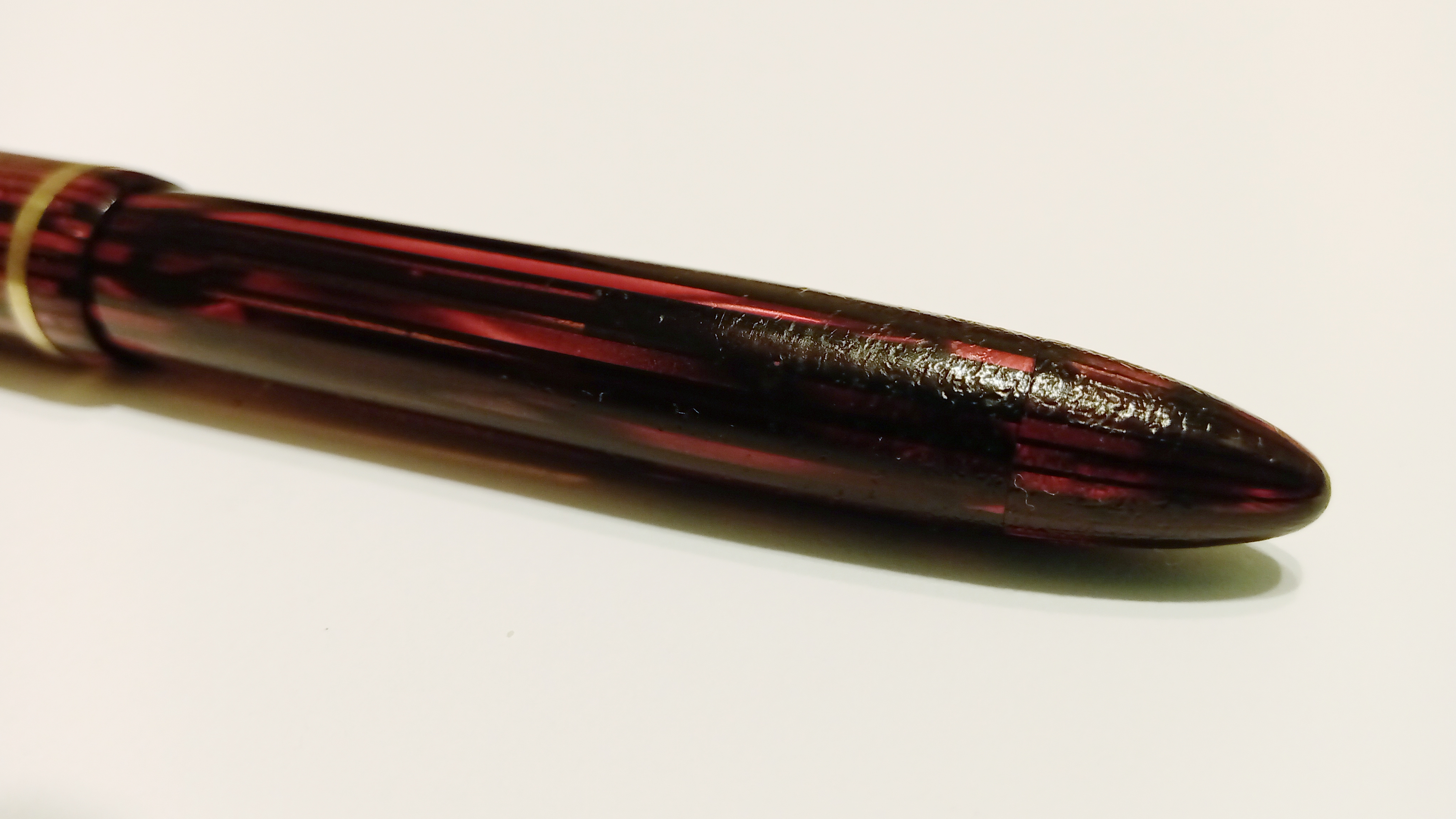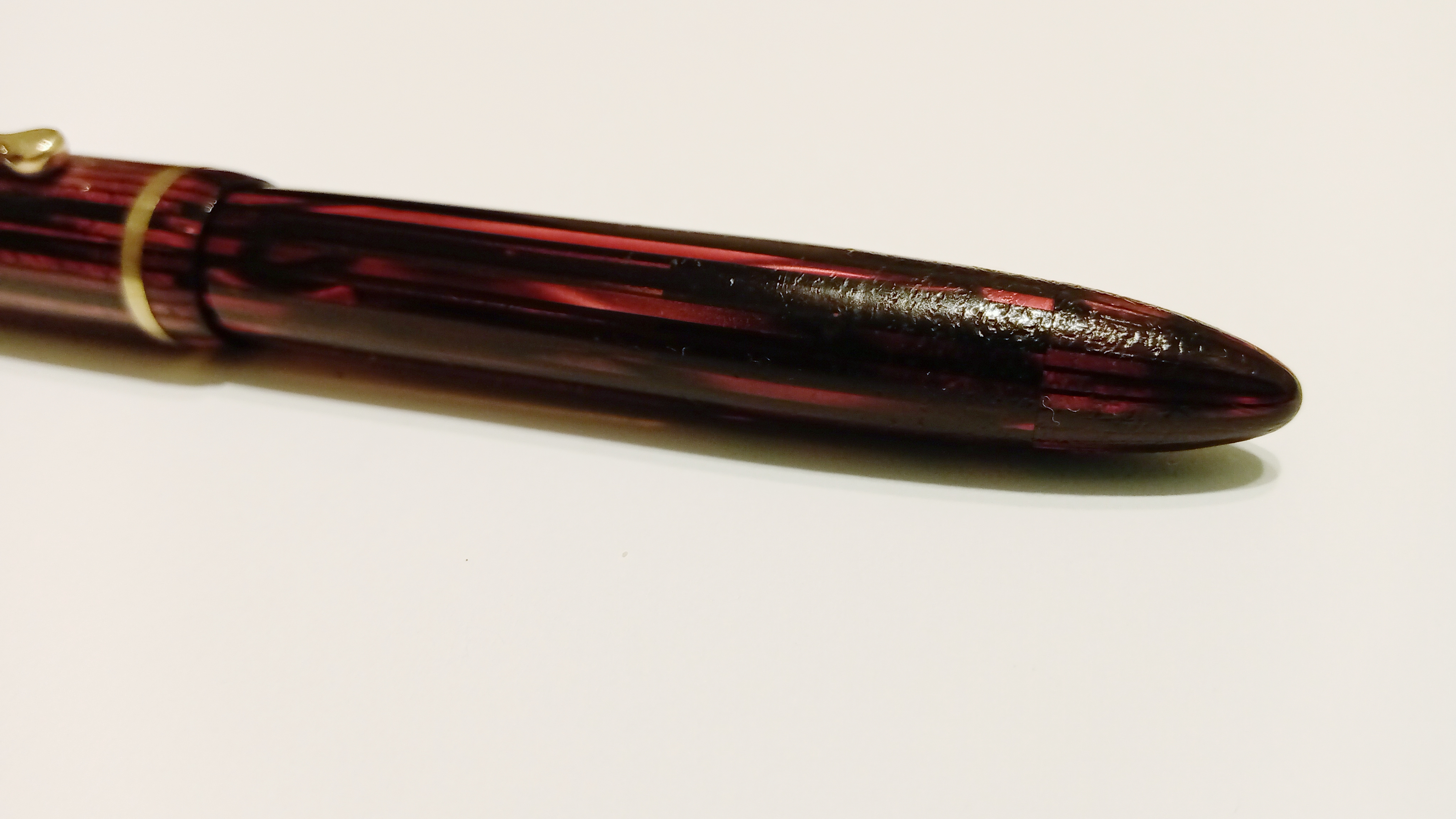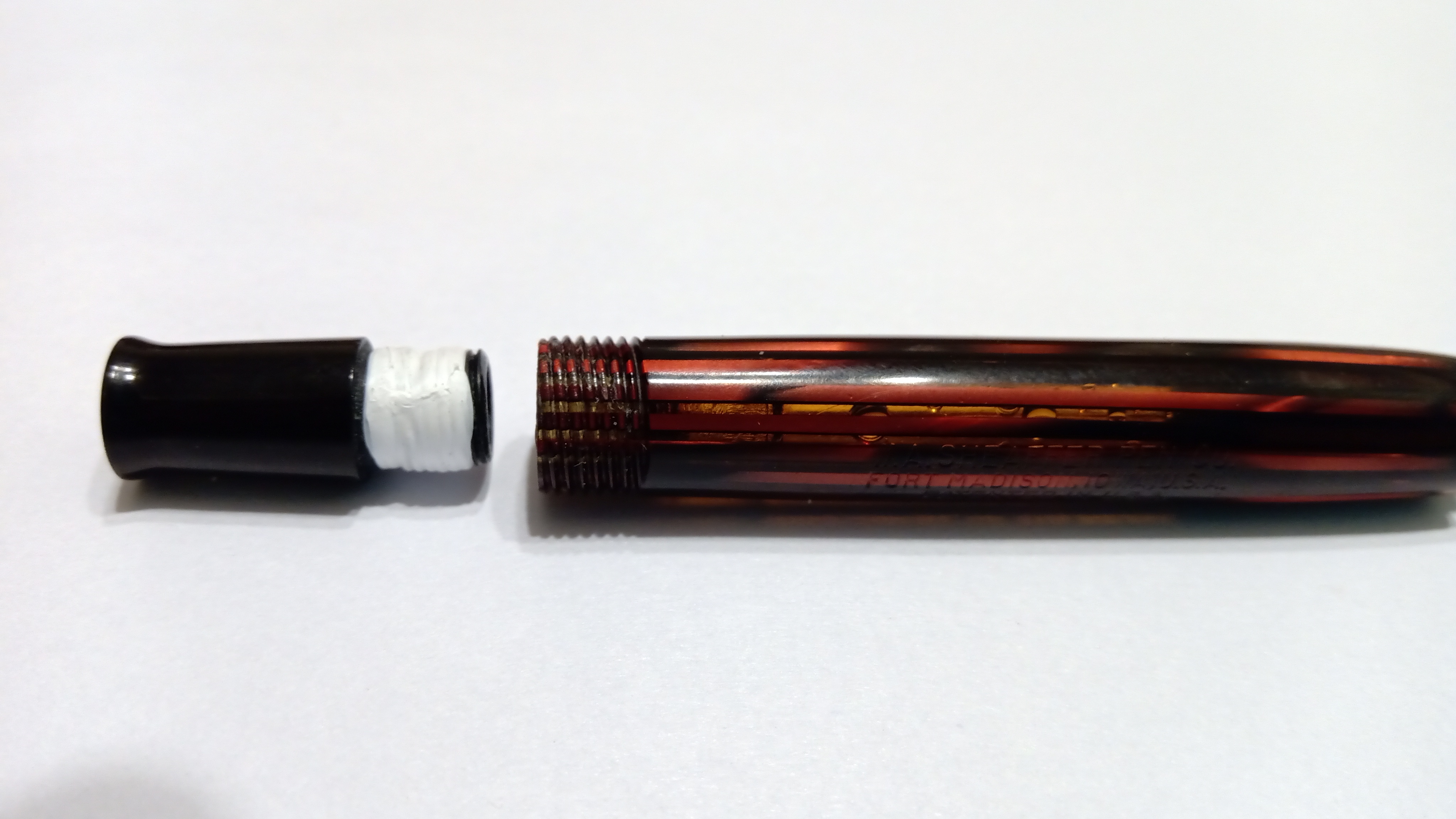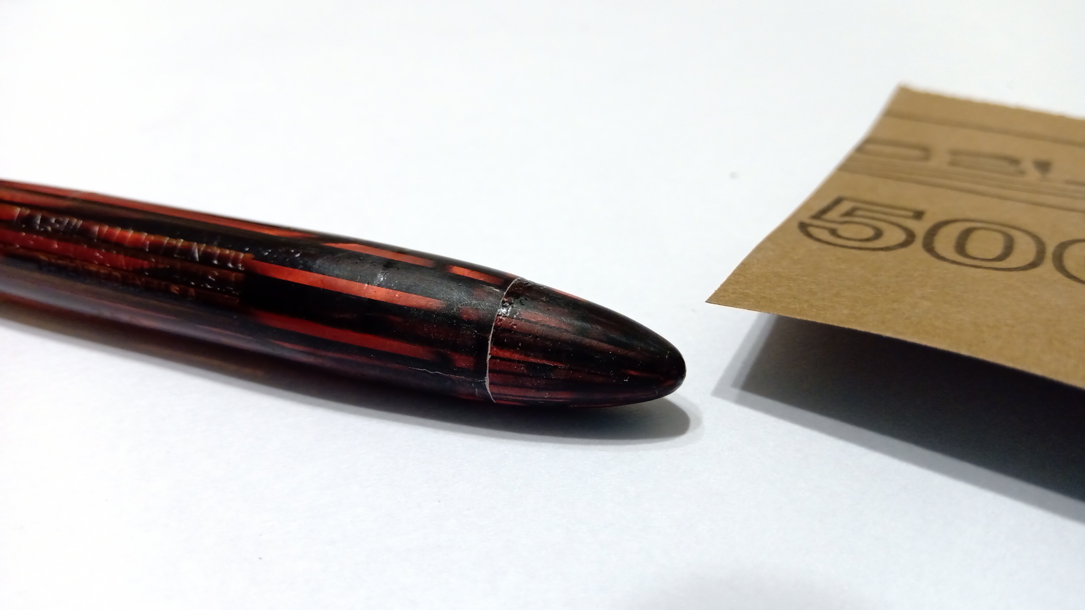A dire il vero, non credo che ci sia stata malafede da parte del venditore, ma piuttosto che chi ha effettuato la manutenzione della penna stilografica prima che finisse nelle mani di quest'ultimo venditore fosse un individuo con pochissima esperienza e piuttosto irresponsabile... Quando restauriamo qualcosa, dobbiamo pensare che non si tratta dell'ultimo restauro e che lì finisce tutto, ma che le cose devono rimanere in modo tale da poter continuare in futuro con altri restauri e manutenzioni. Le cose devono poter essere smontate senza bisogno di essere distrutte...