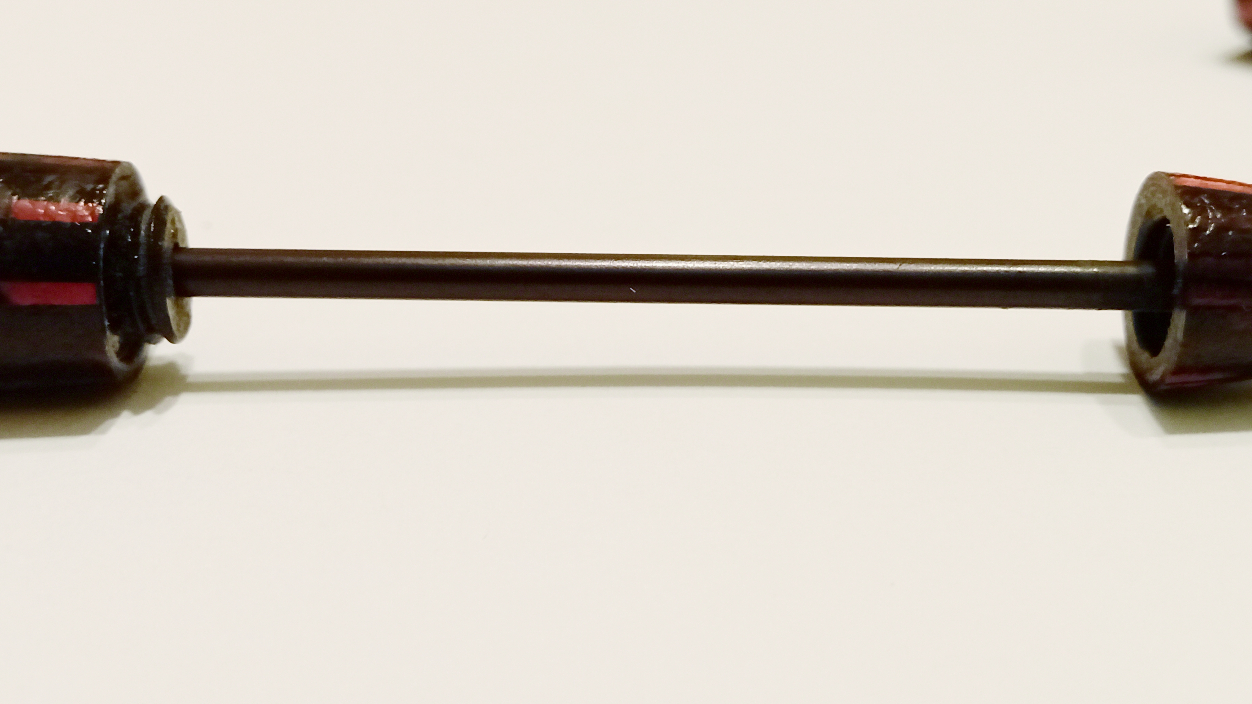 Una volta pronto l'esterno del barilotto, svitiamo il tappo cieco e spingiamo l'estremità dello stelo alternativo dall'estremità dell'impugnatura con la punta dello stelo definitivo già assemblato e ben