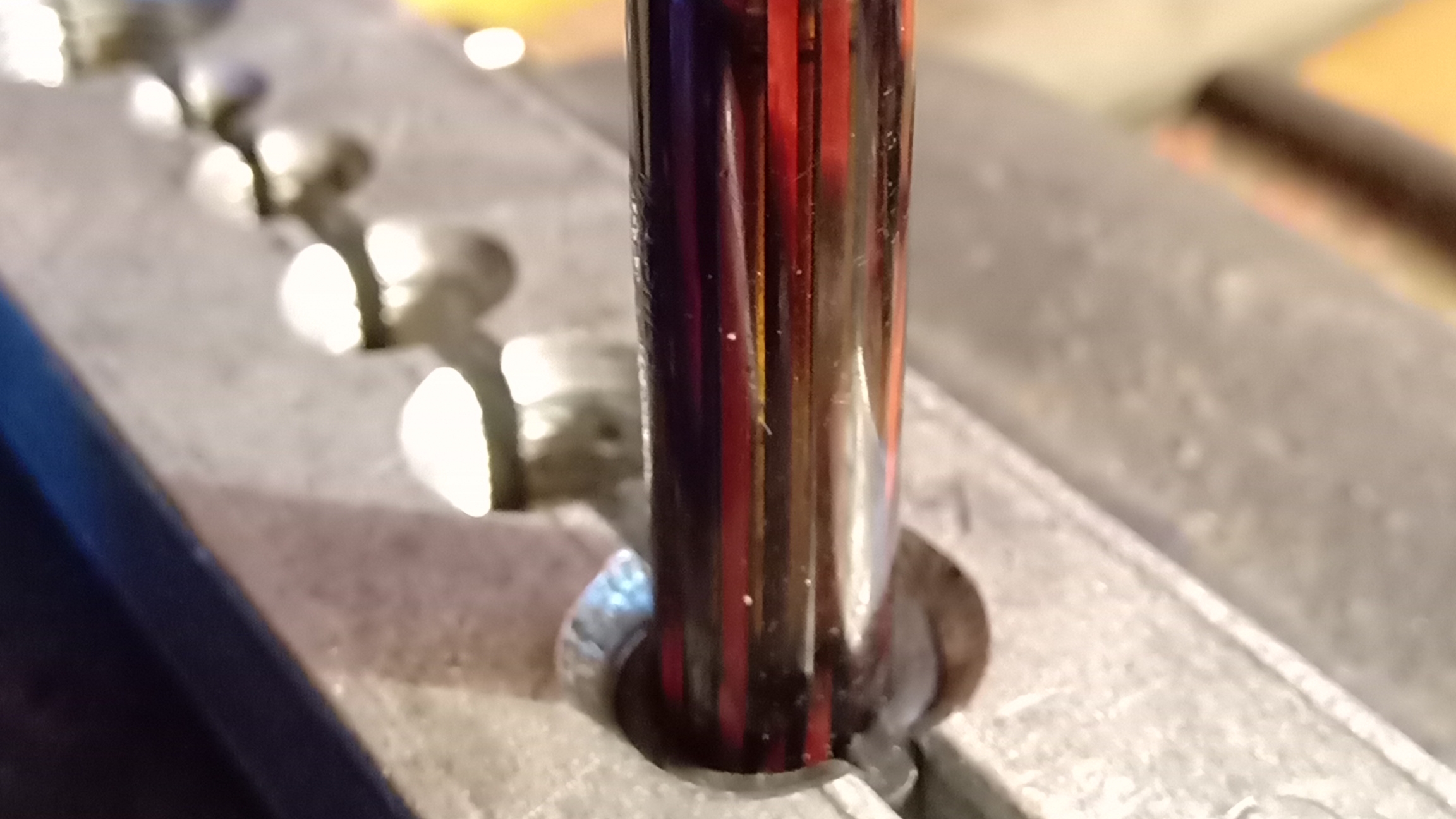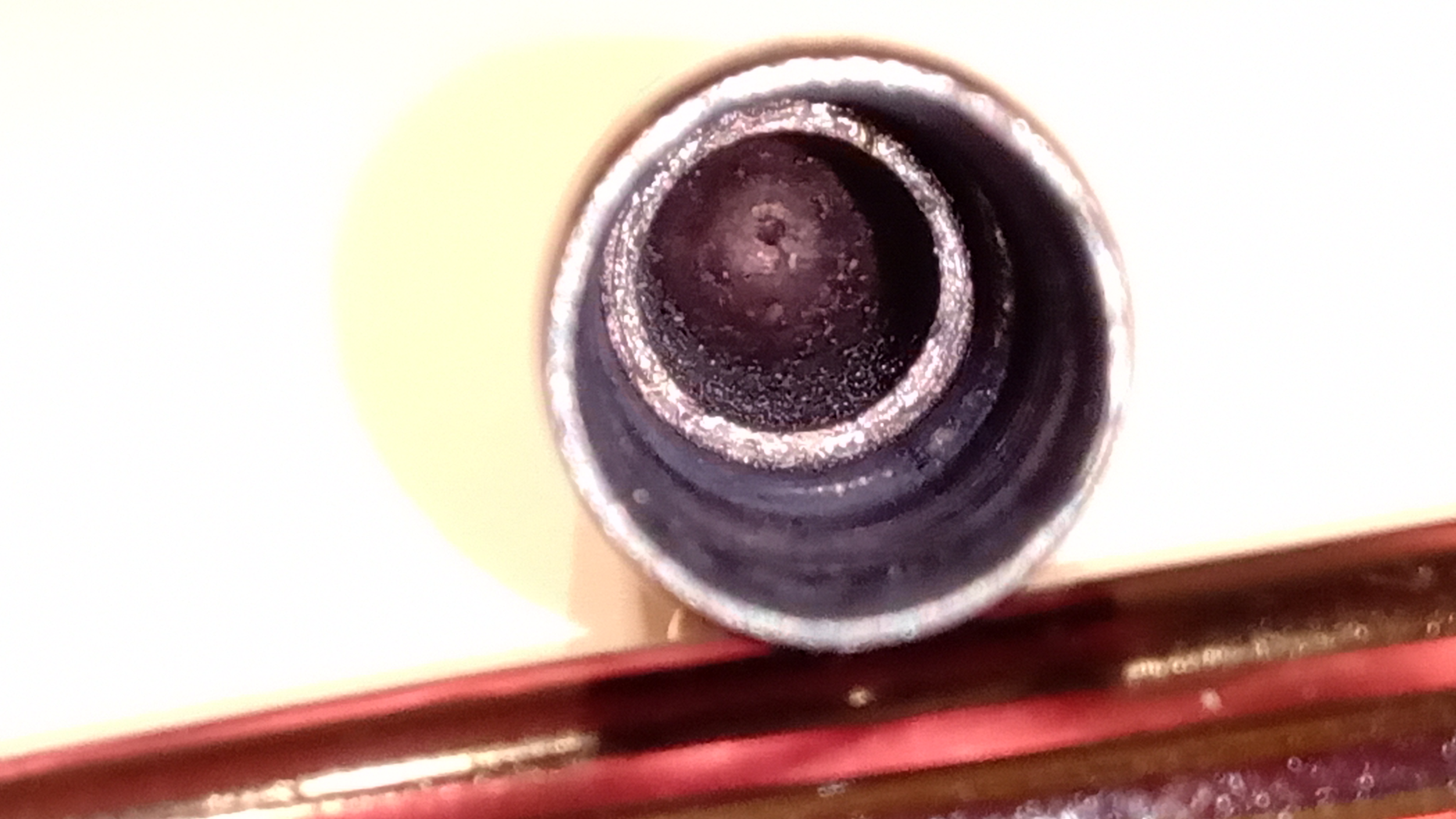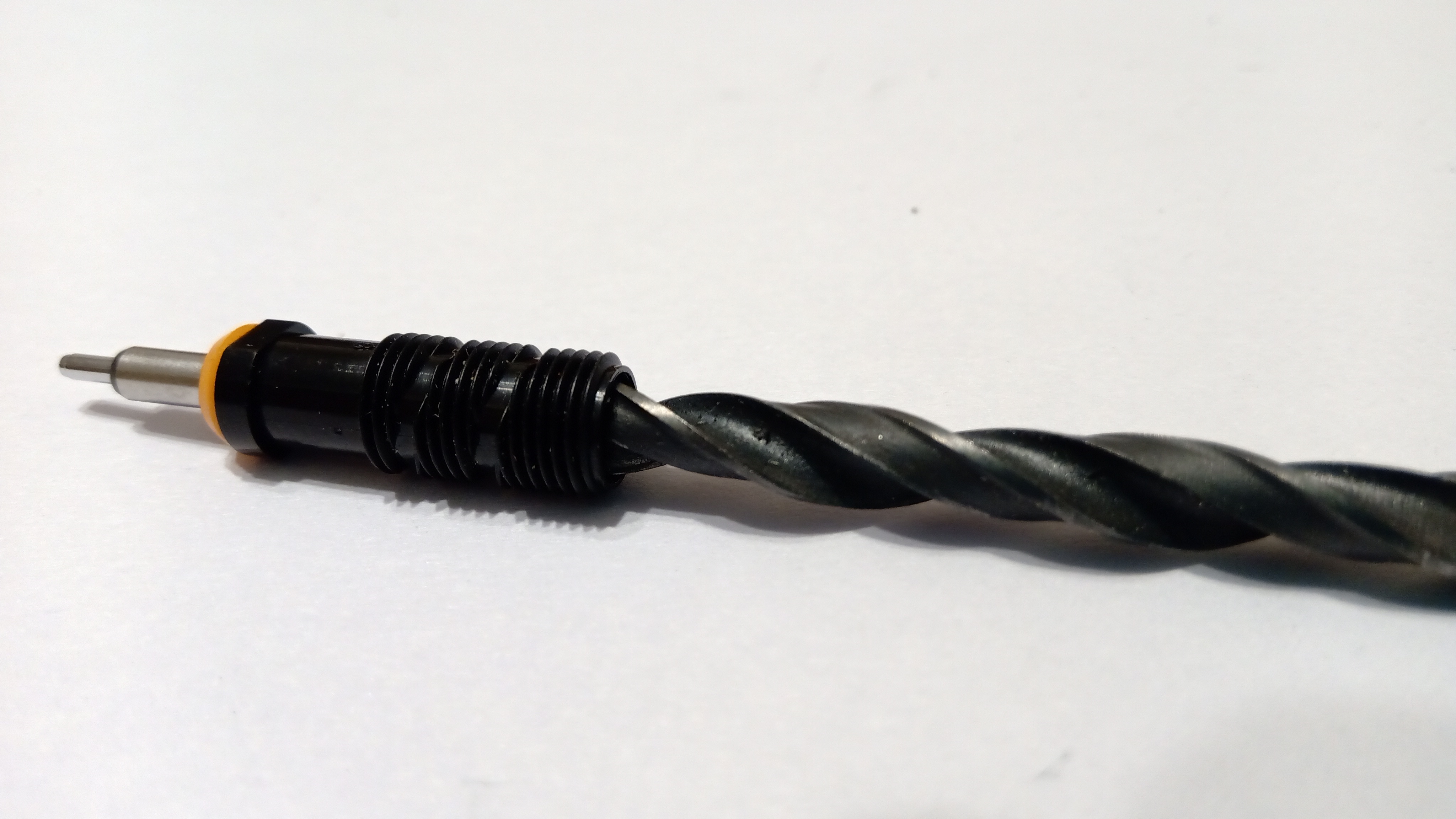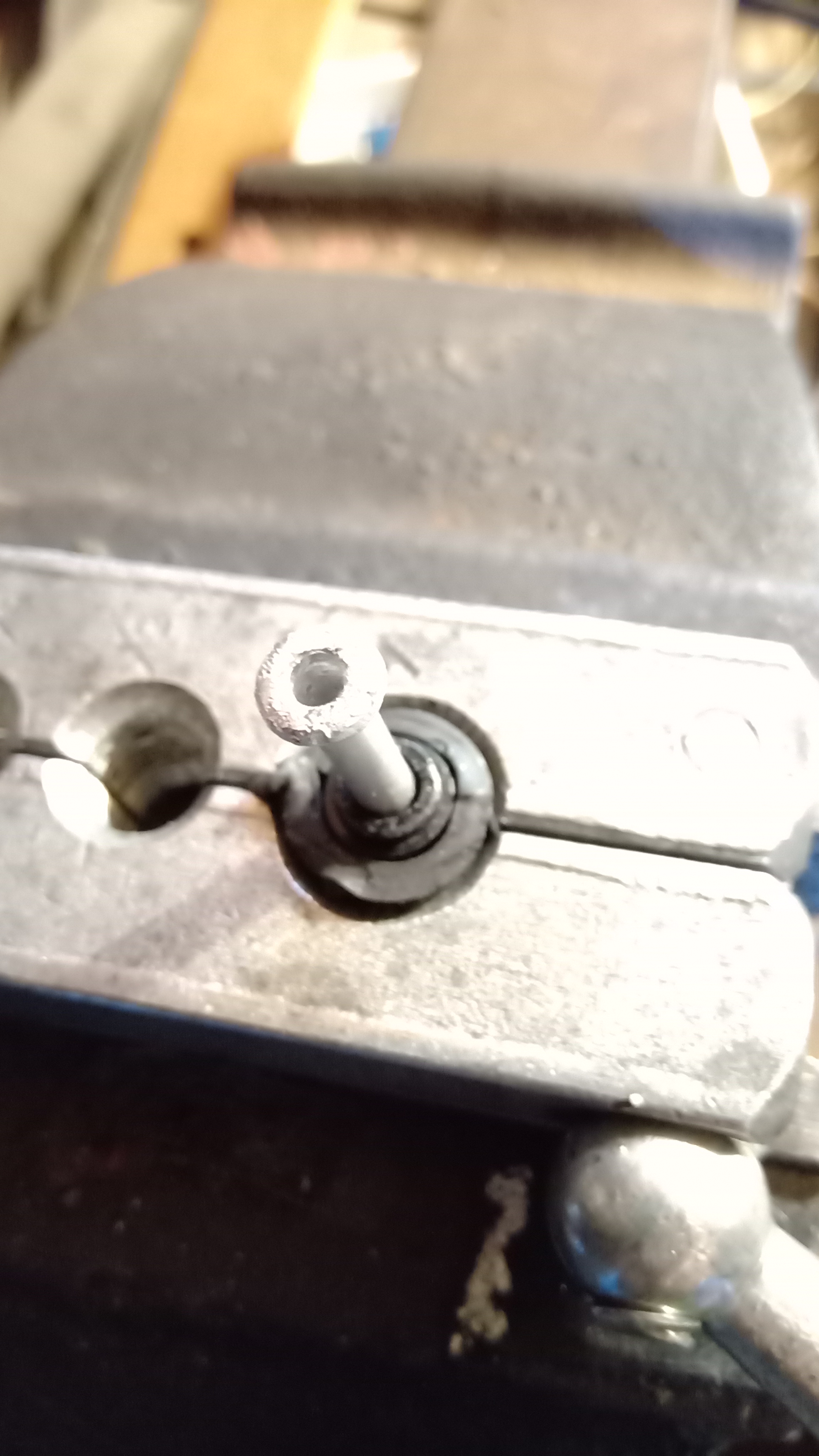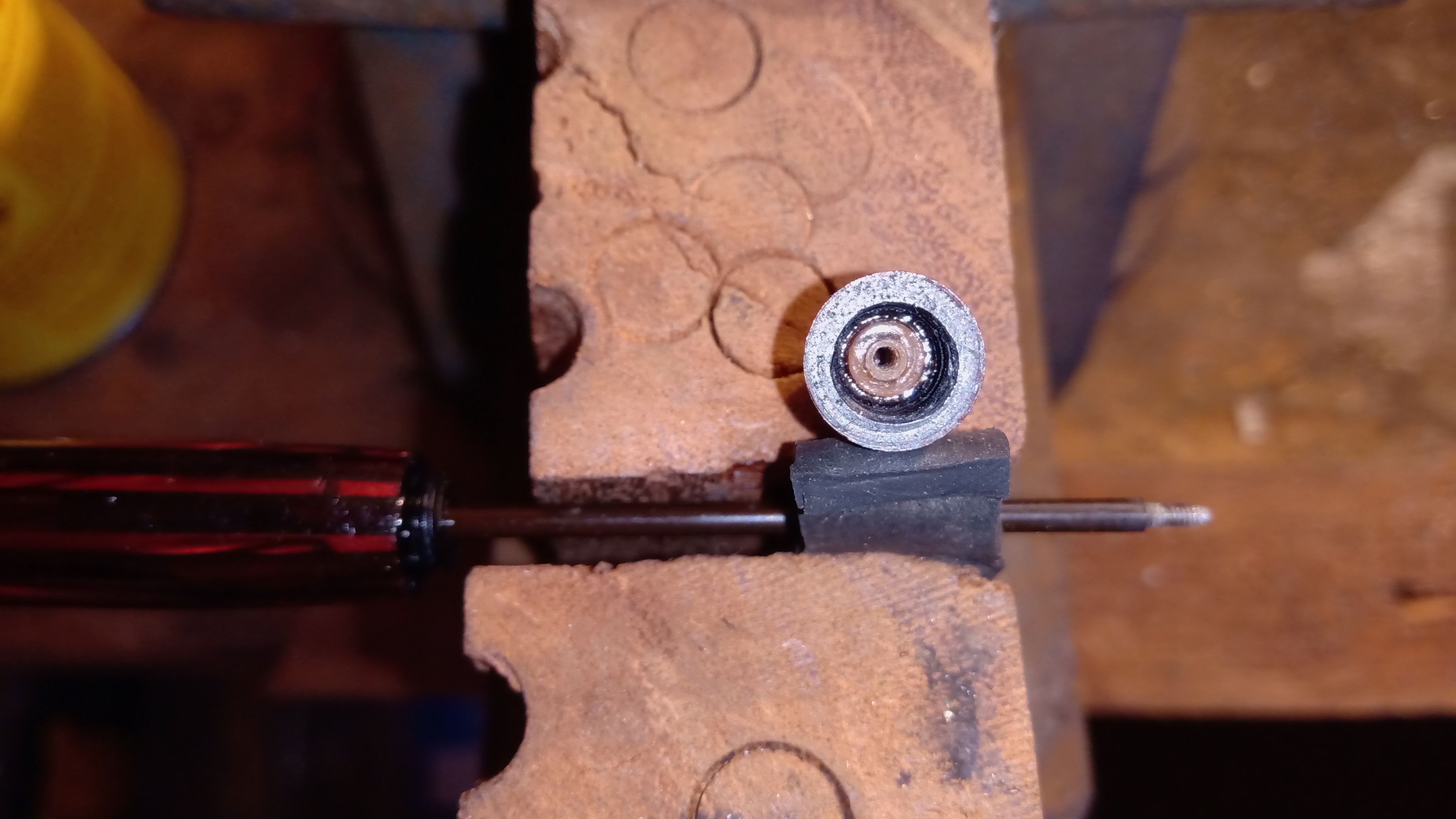 Ma comunque, ora bisognava salvare la filettatura interna del barile, per cui ho dovuto passare manualmente una punta da trapano di poco inferiore al passo interno della filettatura...