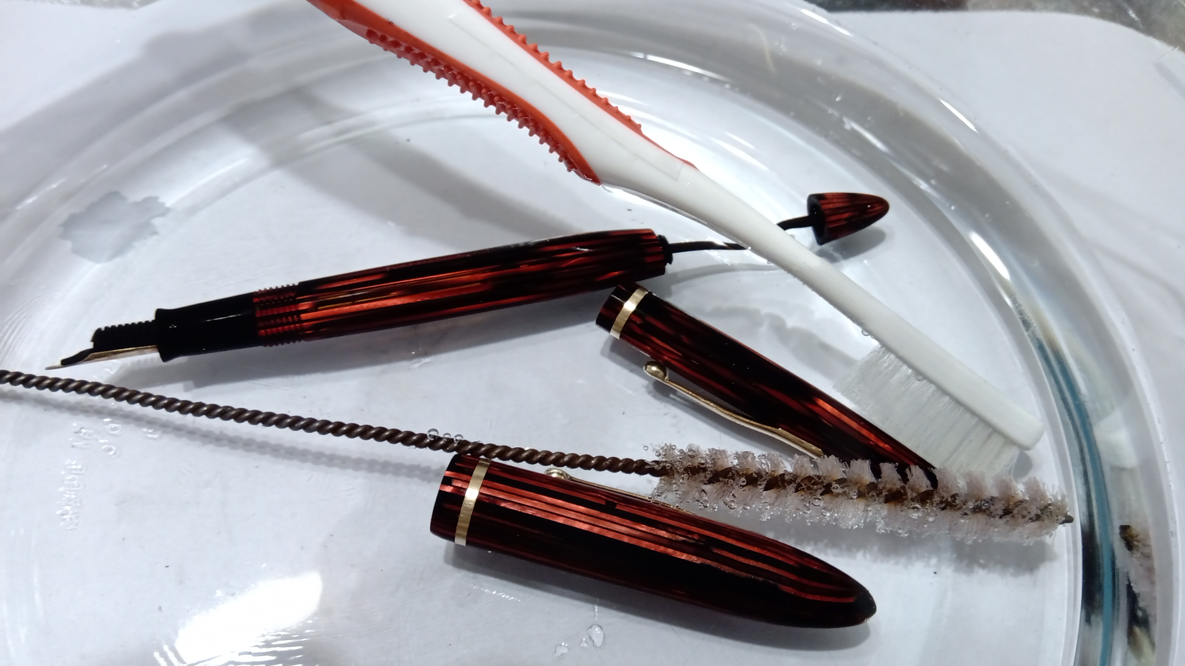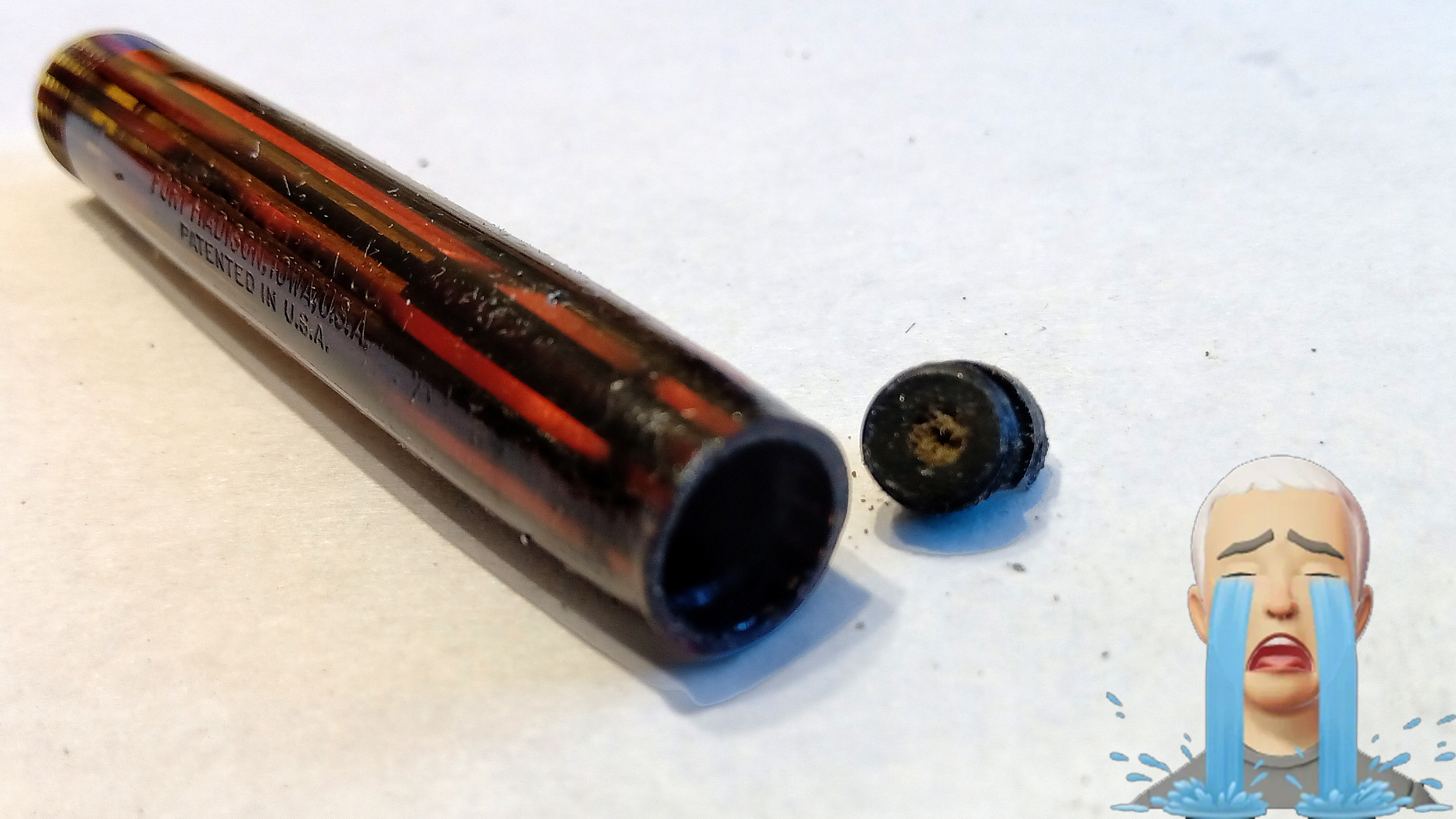 Interesante fue descubrir que el vástago del sistema Vacuum Fill estaba fabricado en acero al carbono recubierto en celuloide...