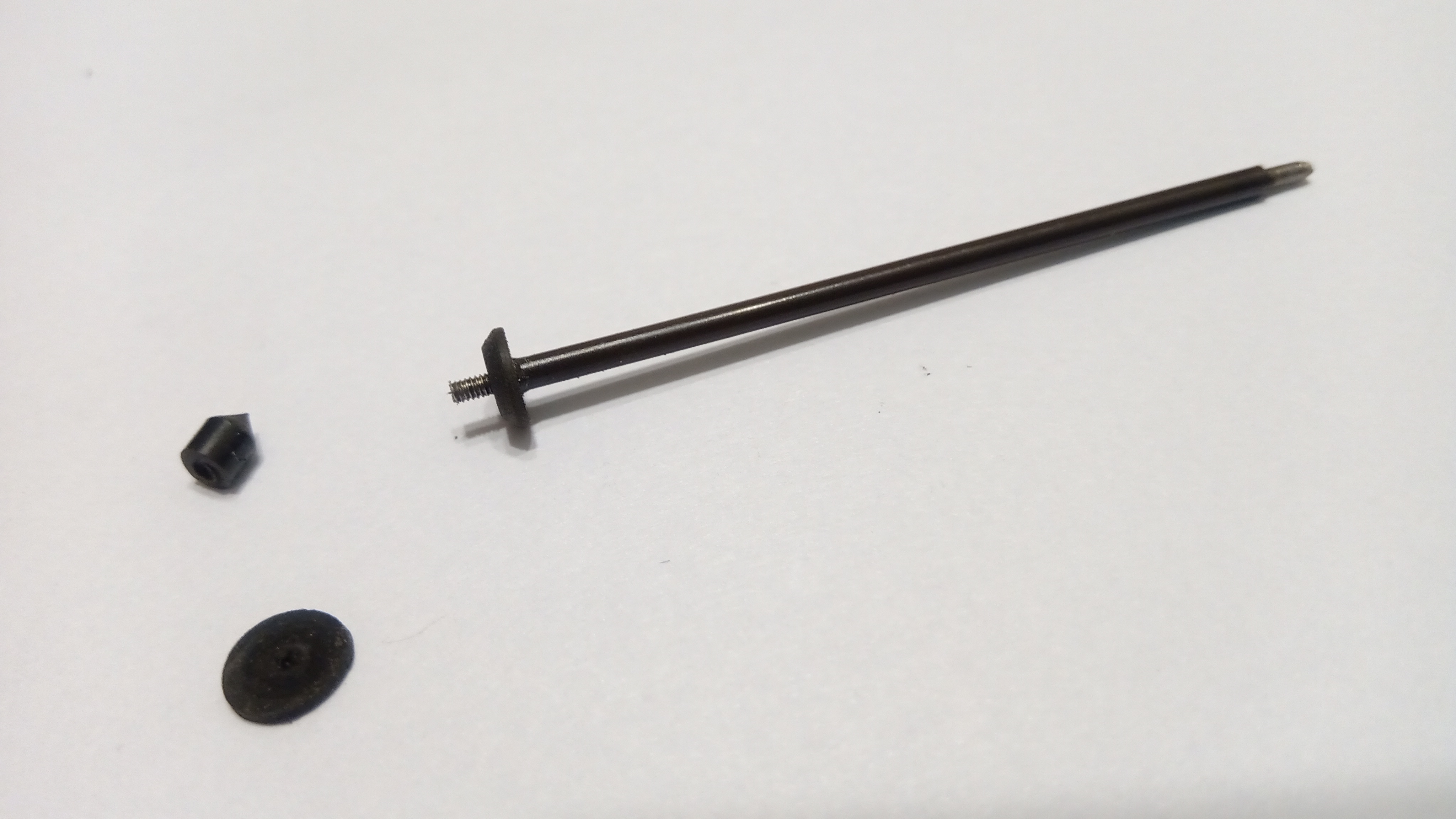 Ora dobbiamo posizionare la capsula con il fermo in silicone e la rondella in ottone nella sua posizione finale, per cui useremo un gambo alternativo, poiché non dobbiamo in alcun modo danneggiare il rivestimento in celluloide del gambo originale.