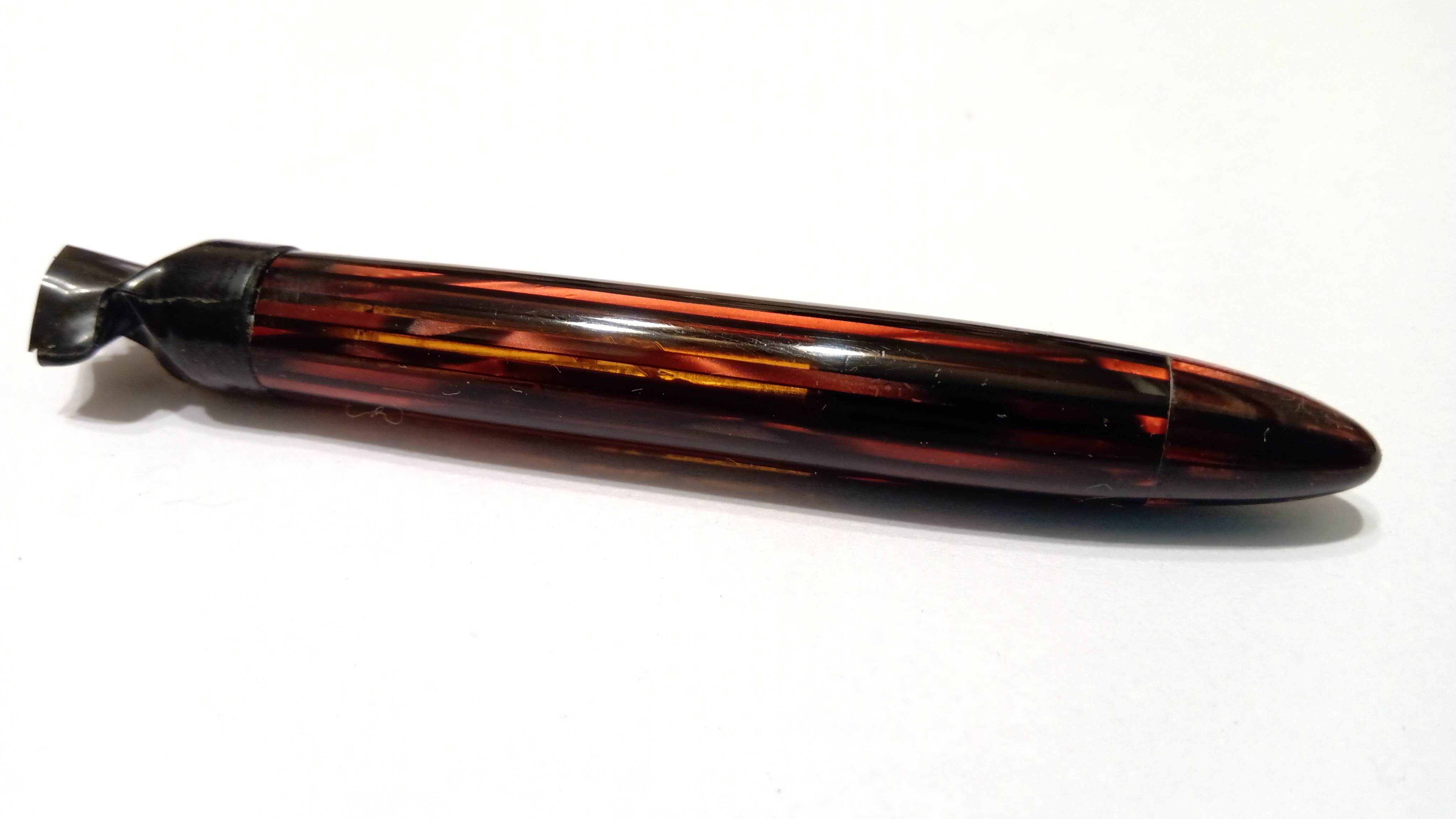 Nel caso della matita meccanica, anche la celluloide era stata danneggiata, anche se le dorature sia sulla clip che sulla fascia del cappuccio erano perfette...