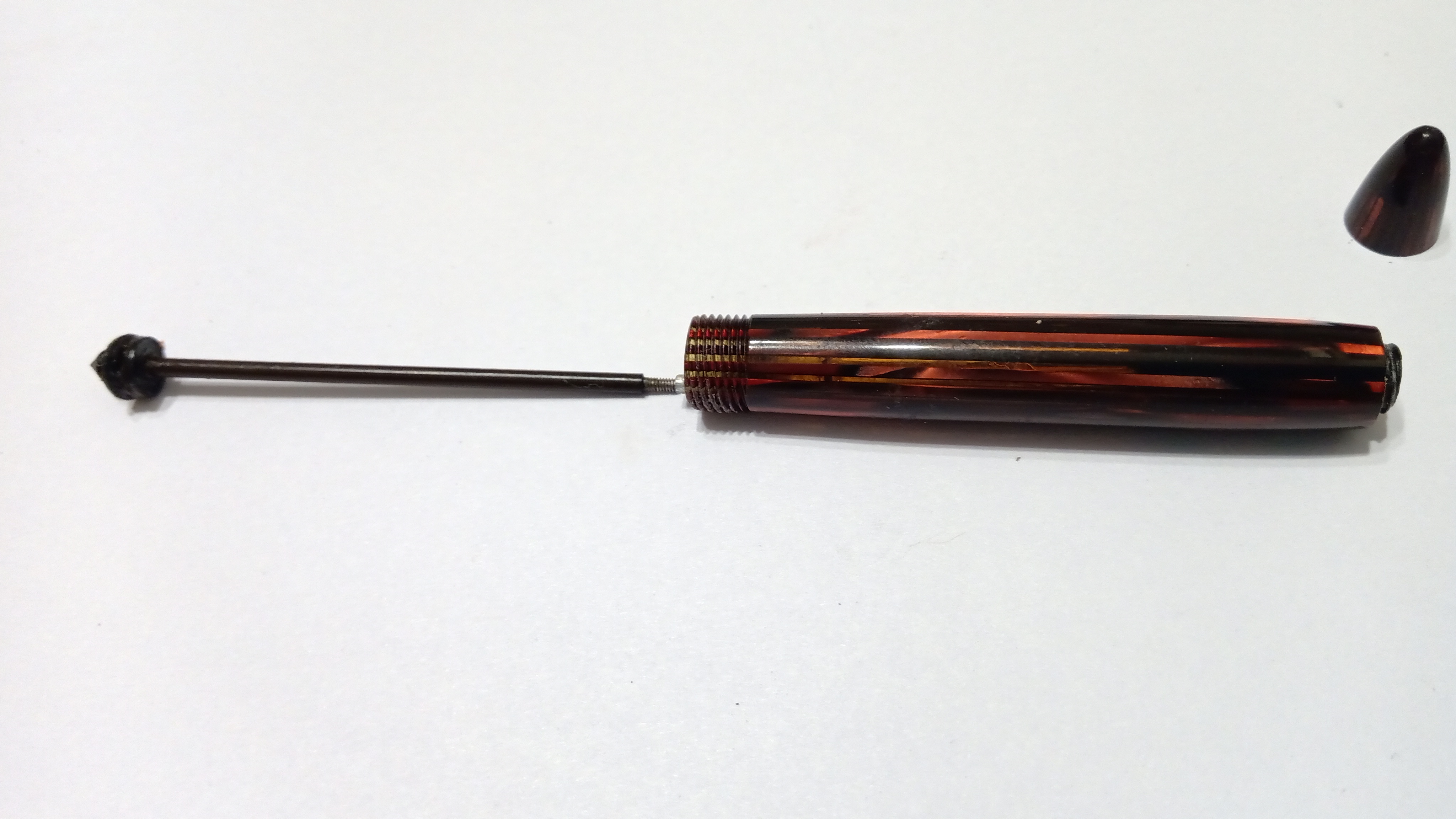 y desenrosqué el seguro de la punta con un trozo de plástico, para no dañar el mismo ya que está también fabricado en celuloide...