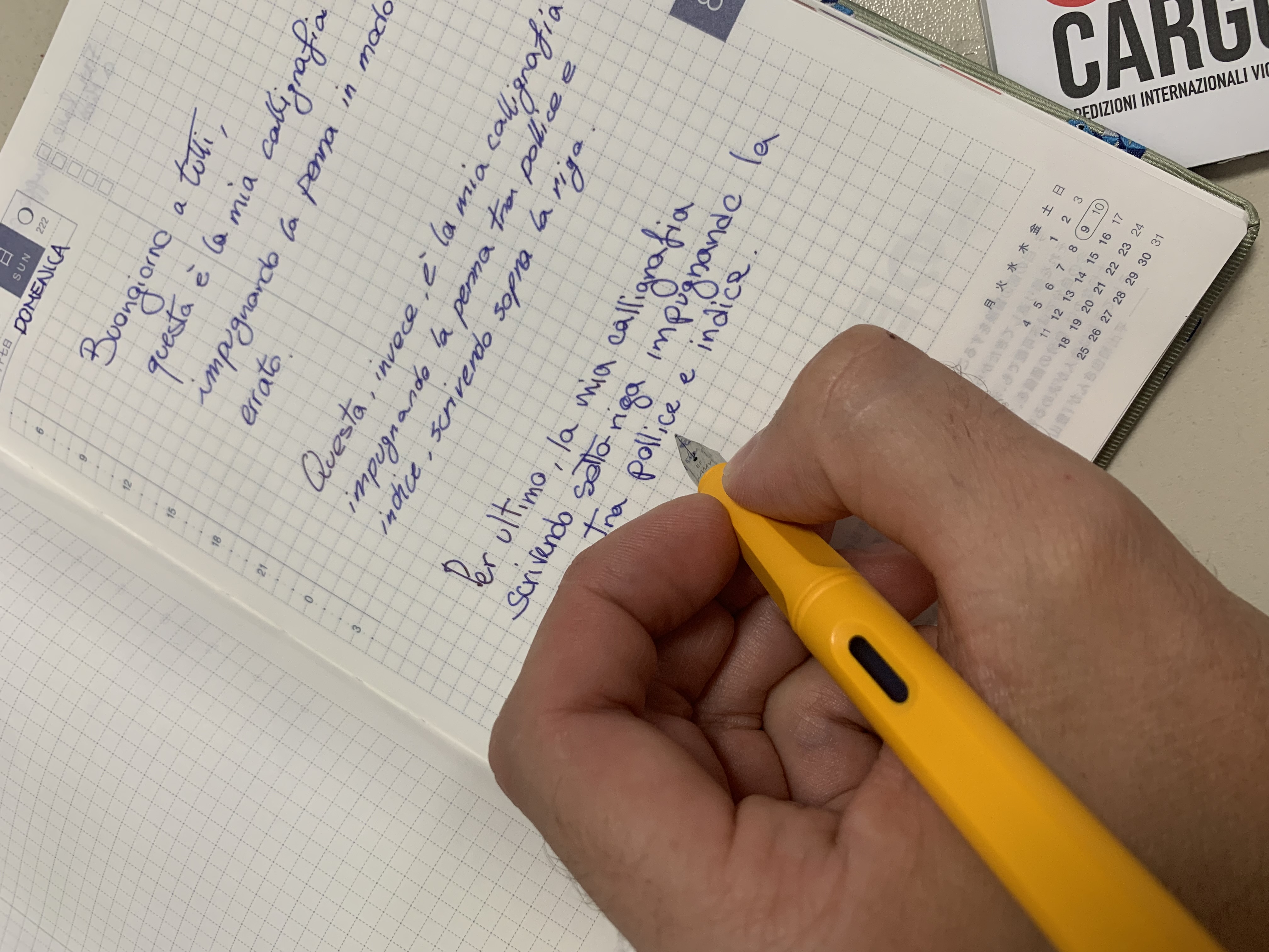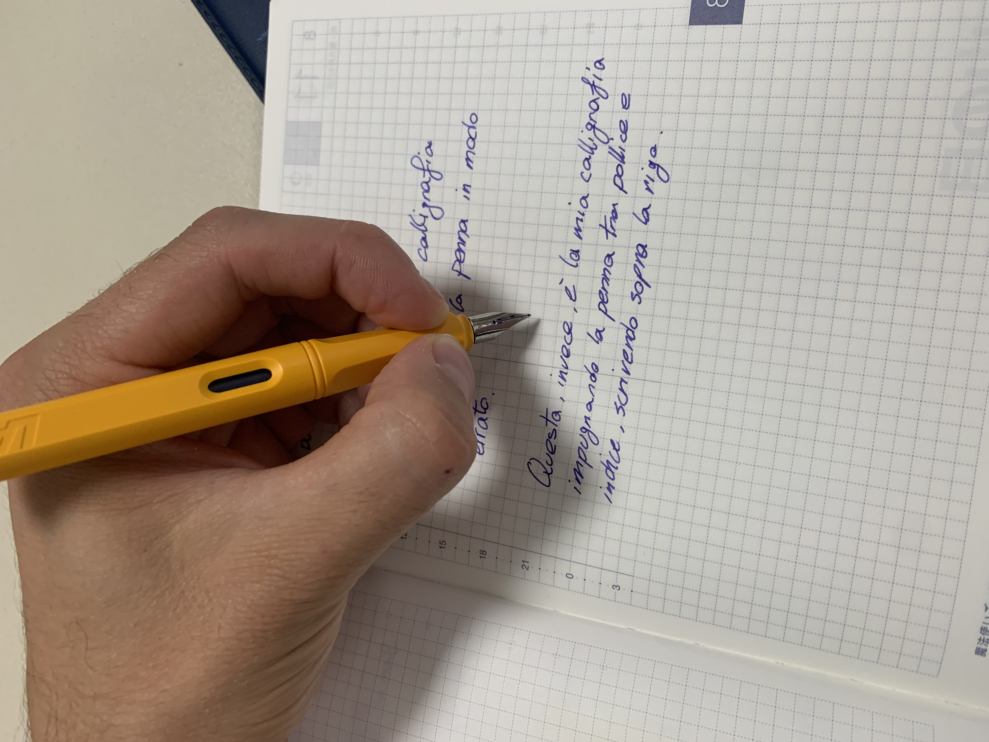 Sto provando anche l'impugnatura tra pollice e medio con l'indice appoggiato "sopra" la penna e mi sembra di avere una presa più salda ma non so se è l'impostazione giusta.