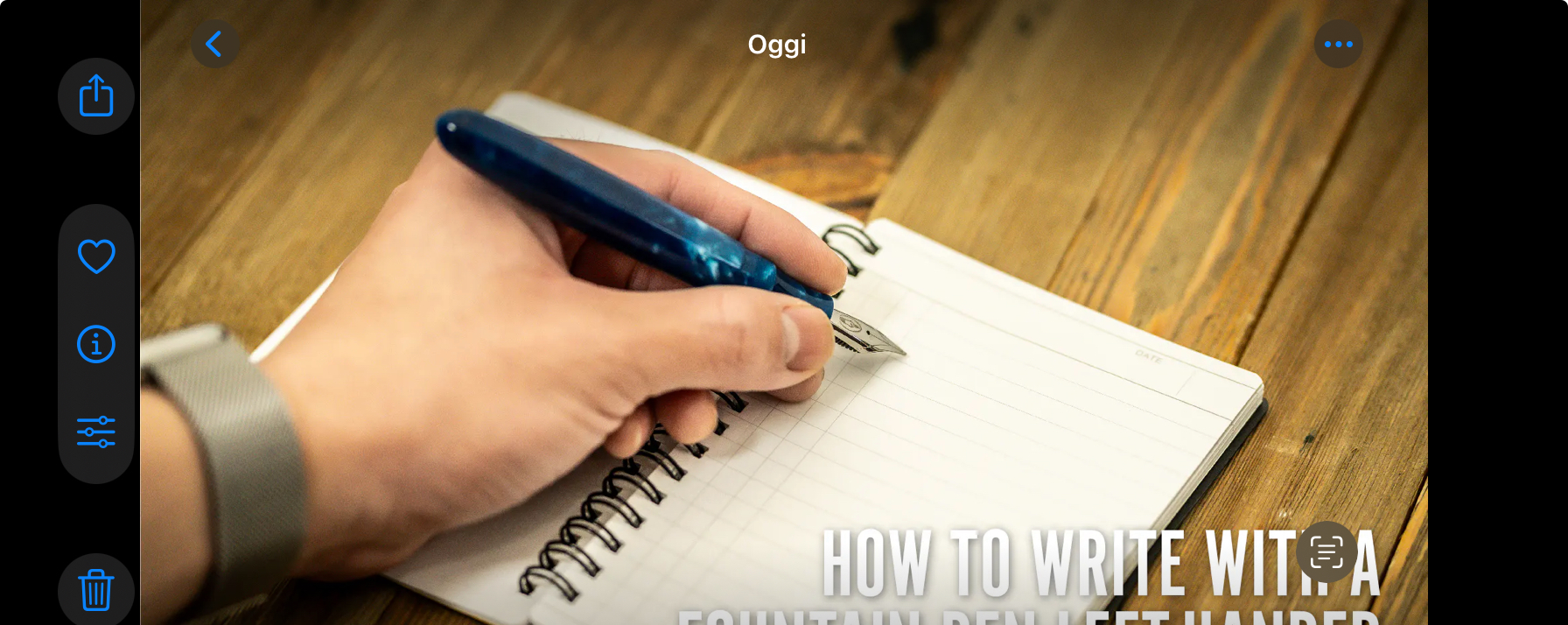 non sono mancino, e quindi non so aiutarti più di tanto. La diceria che i mancini "non possono" usare le stilografiche nasce dal fatto che quando il pennino è flessibile e molto fine (una volta molti lo erano) dato che il mancino scrive ordinariamente (tua prima foto) andando incontro alla carta, i pennini flessibili e molto fini tendono ad impuntarsi (un destro scrive con la punta del pennino che scivola via, si allontana dalla carta).