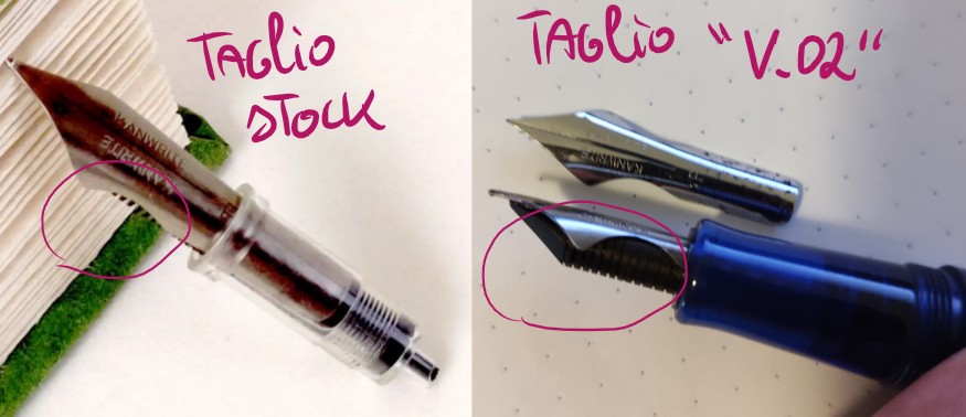 Corretto. Ho notato anche io che kanwrite non ha aggiornato il taglio del pennino in titanio. Quando li contattai, mi dissero che le foto sul sito internet non corrispondono al loro prodotto e mi averebbero spedito il pennino in titanio con il taglio "v2" invece mi hanno spedito il pennino col vecchio taglio. La cosa non mi ha causato un gran disturbo perché ho allargato il taglio laterale per rendere il confronto pari.