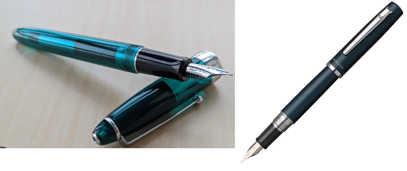 Pilot NS e Platinum Procyon ( E Sailor Profit Casual ) , prodotti per simulare le caratteristiche dei pennini in oro ad un prezzo inferiore , puntando anche sulla qualità del fusto e pregi delle fascie più alte ( es. Slip and Seal della 3776 ) [Cambio di proprietà con forme speciali]