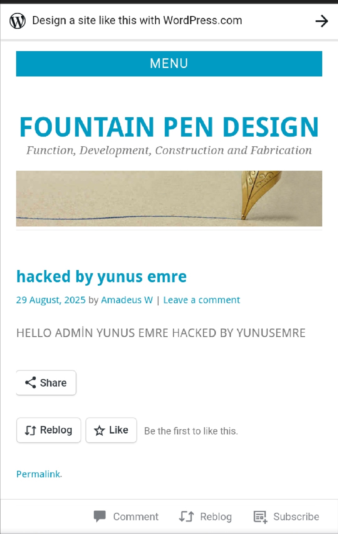 un insulso personaggio (tal yunus) che sembra non aver di meglio da fare nella sua inutile vita, ha hackerato il sito di un simpatico signore che ha dedicato la sua vita alle penne e agli inchiostri e aveva un sito dove raccontava tutte le sue conoscenze a beneficio di tutti. Il sito non è praticamente più accessibile e tutte le informazioni sono sparite.