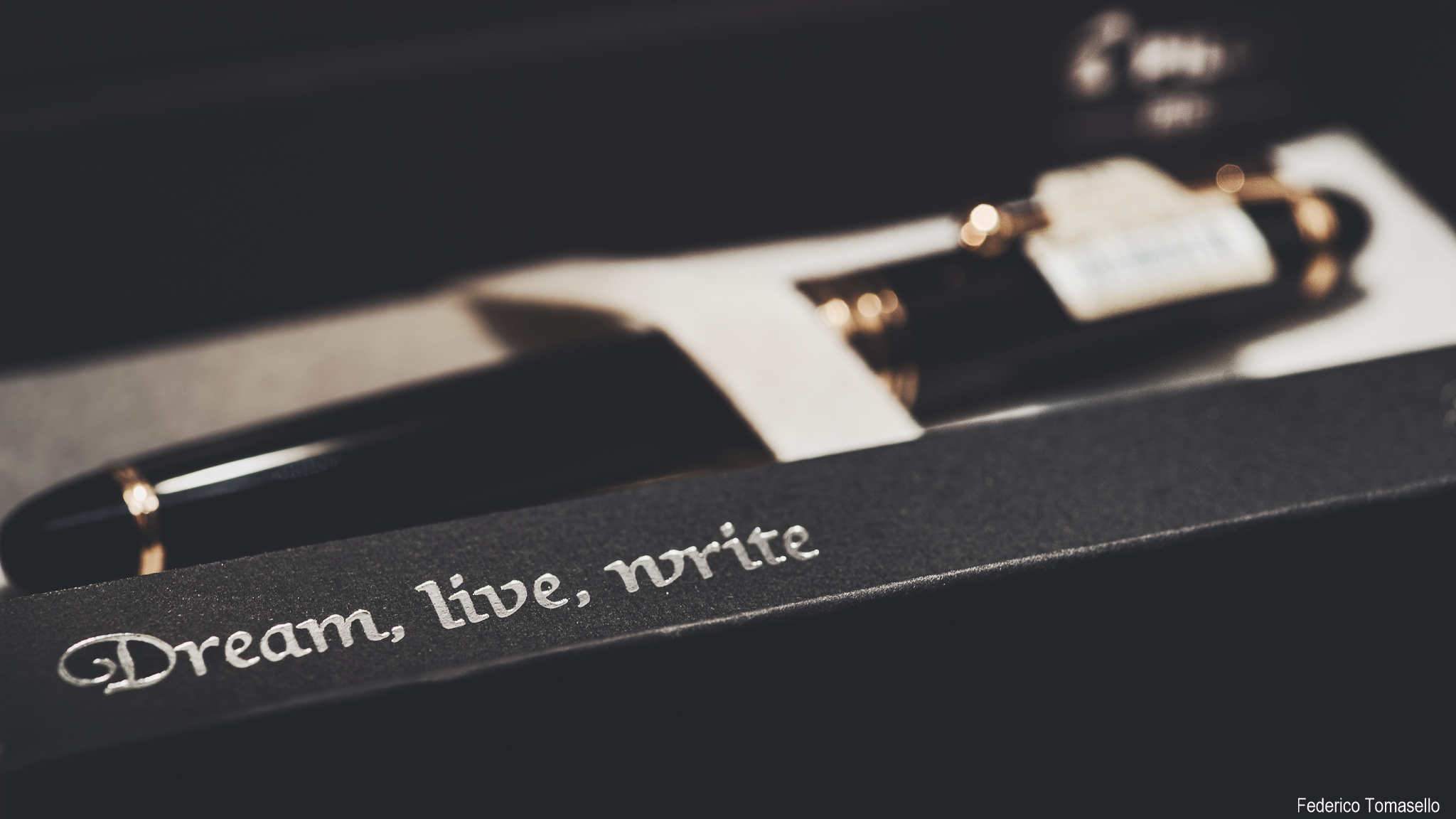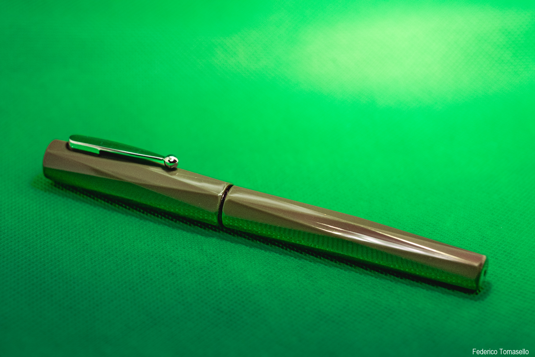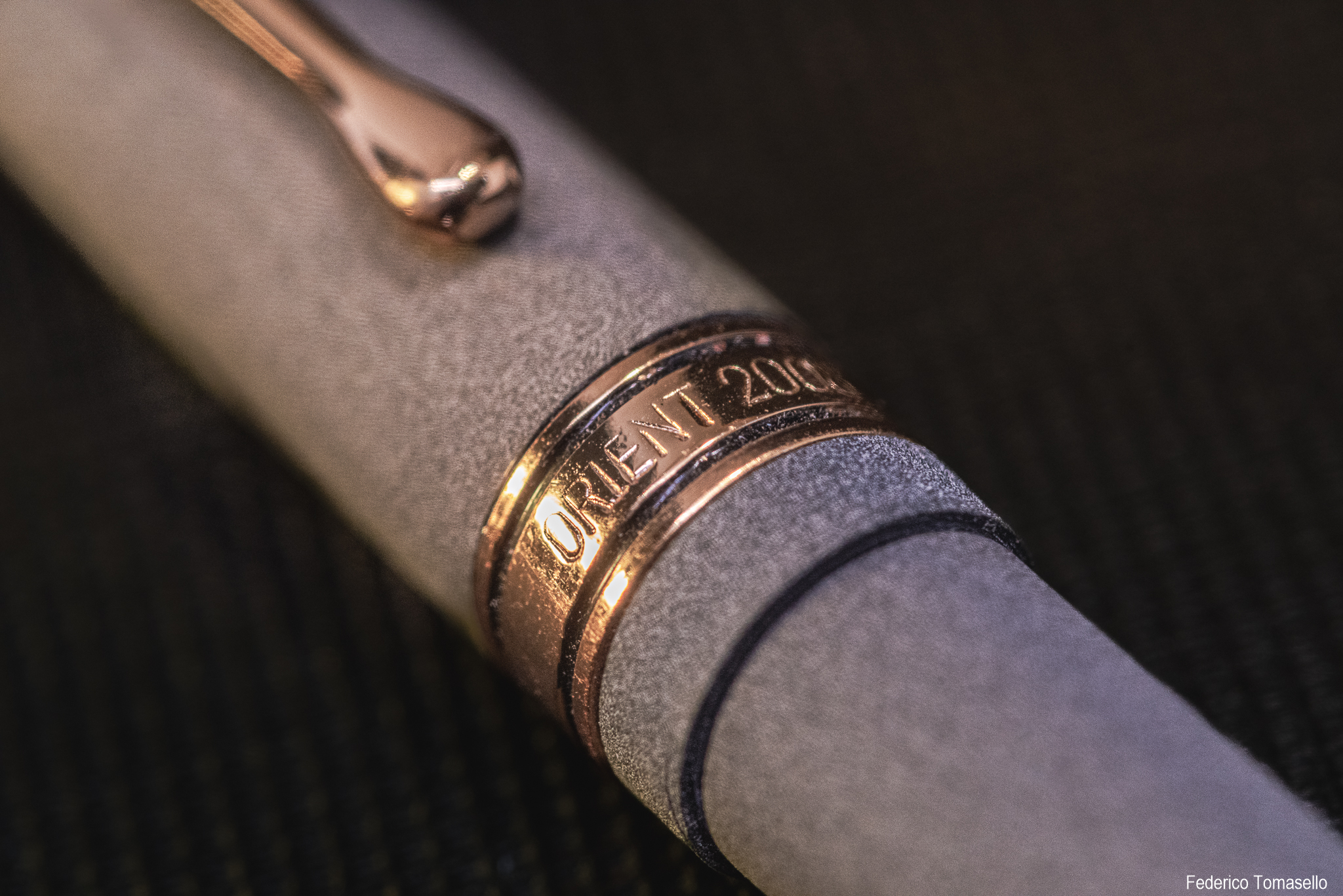 Intanto questa A9 mi è sembrata molto carina, con una livrea particolare e una finitura finemente sabbiata molto piacevole sulle dita. Come sempre il pennino scrive bene e senza intoppi (anche se in partenza aveva i rebbi leggermente disassati), con un flusso molto abbondante e un tratto fine di tipo europeo.