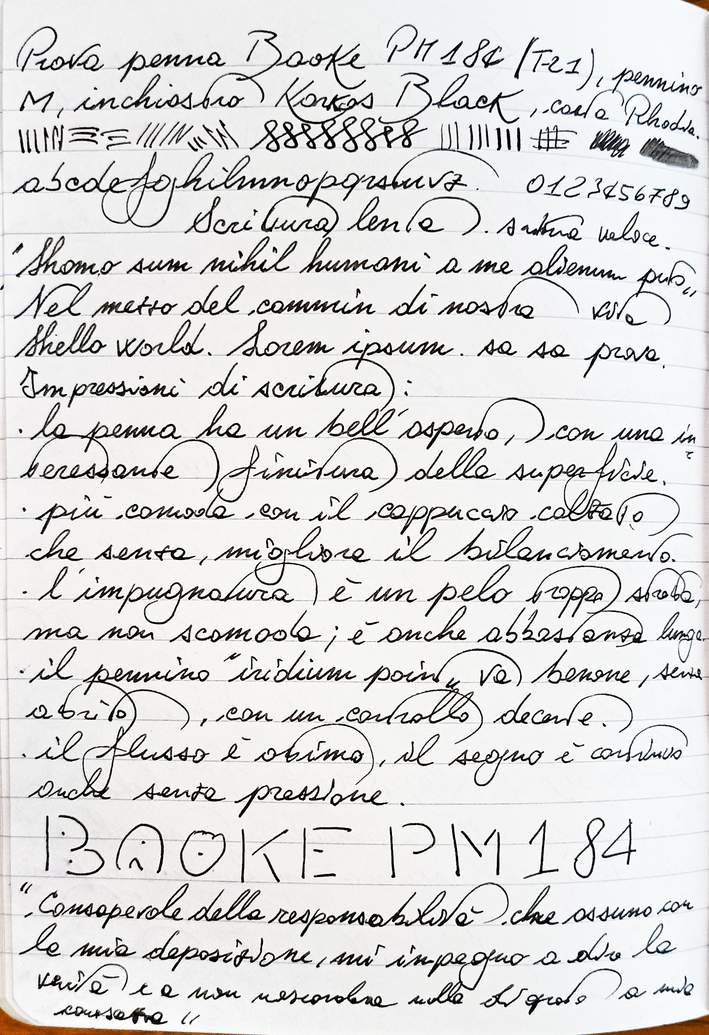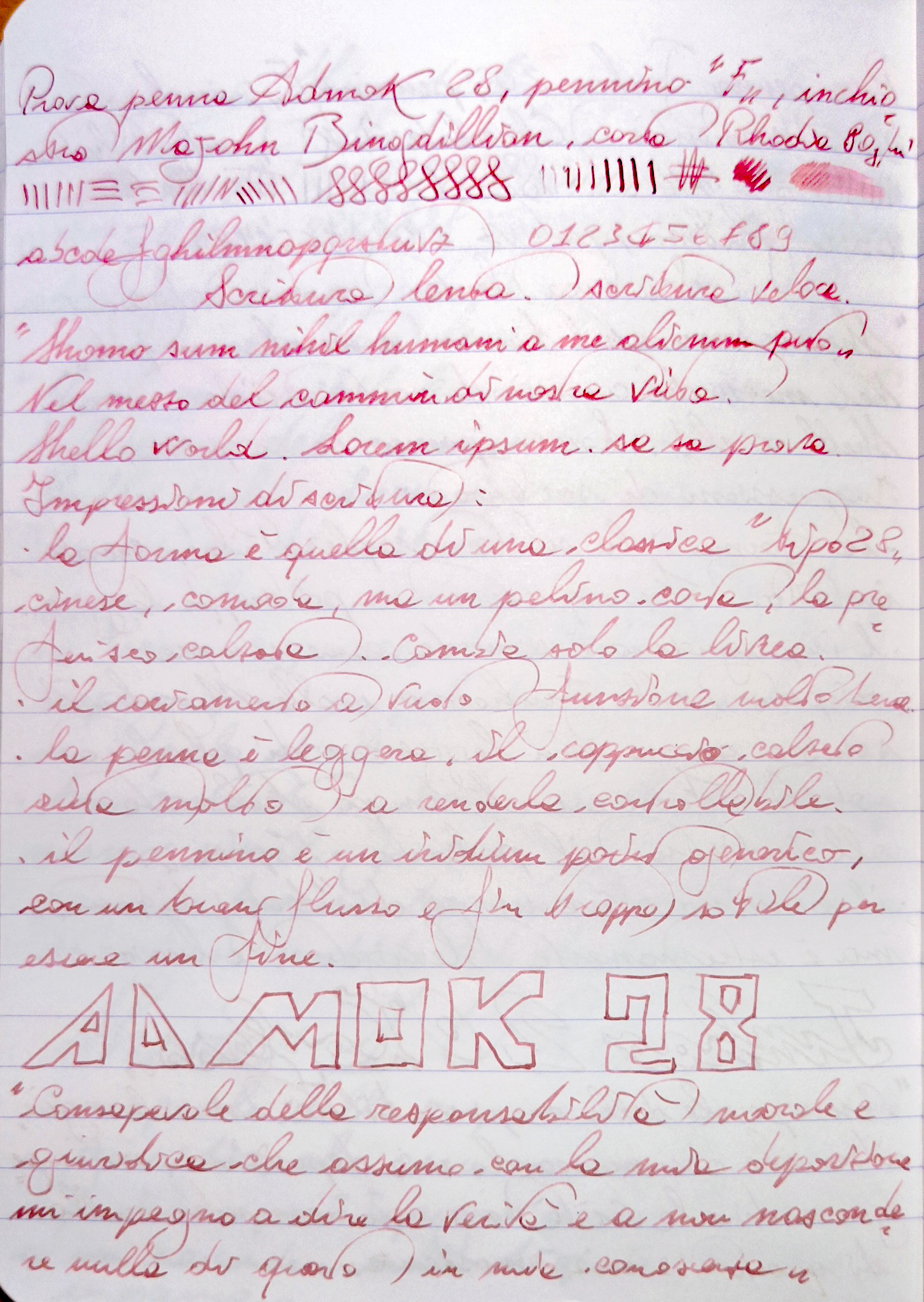 Alla fine la penna scrive bene, anche se tende un po' alla secchezza di flusso (ma sicuramente influisce anche l'inchiostro) e a un segno un po' più fine del medio che speravo.