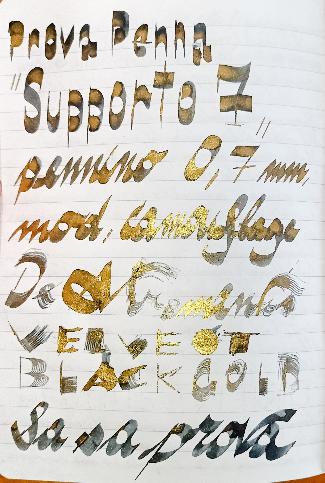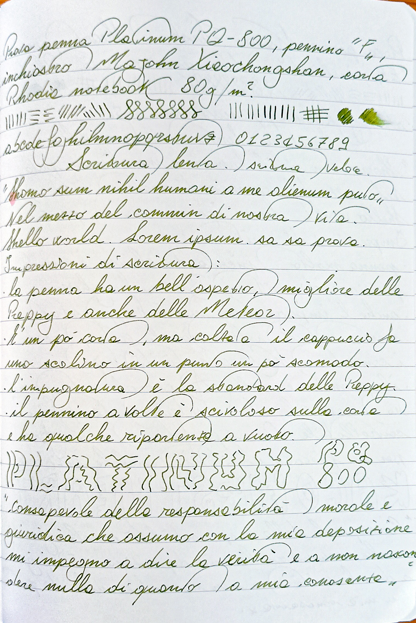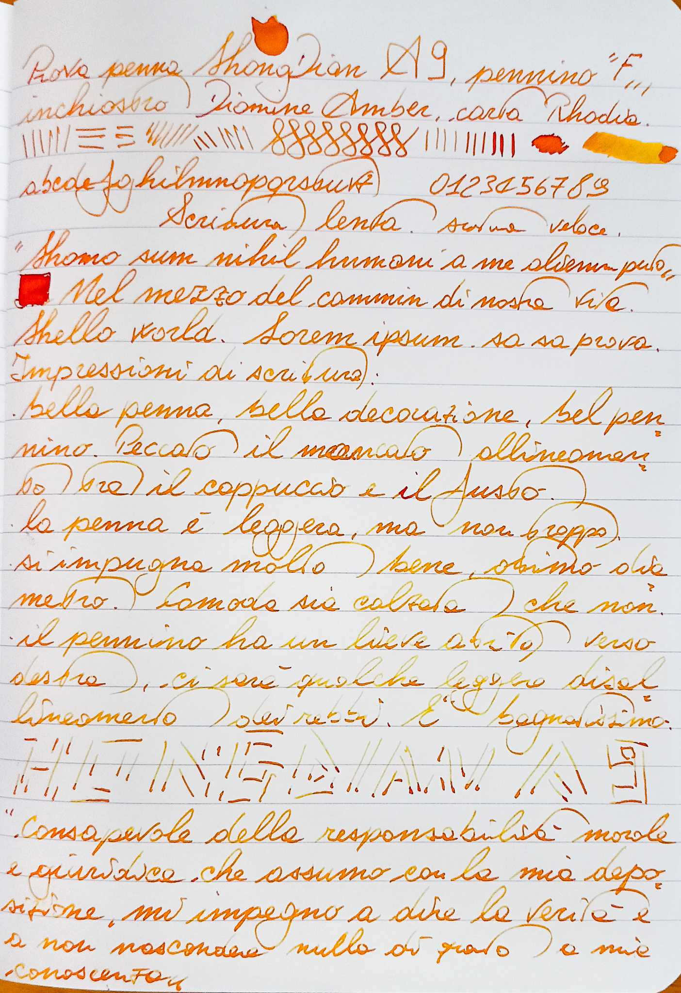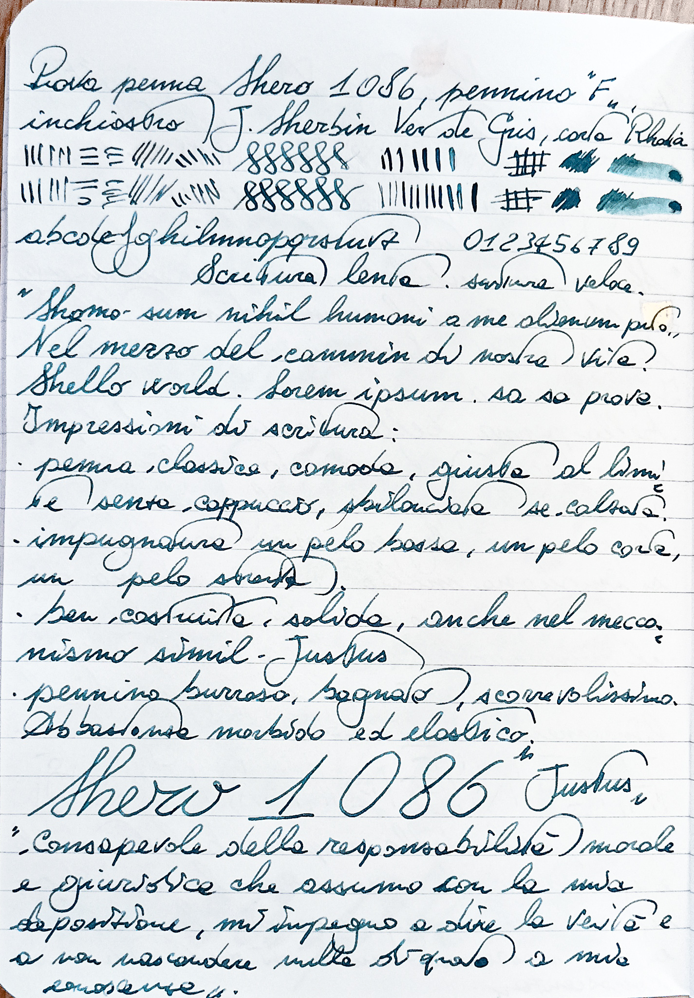 Per quanto concerne il resto: è una penna con pennino tronco da calligrafia e io non so fare calligrafia, e questo dovrebbe spiegare molto, forse più di me che della penna :lol: