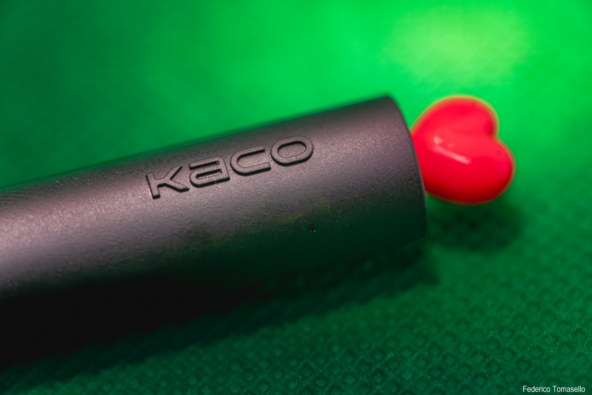 Evvabbè, se avete seguito le vicissitudini della mia epopea stilografica, saprete già che ho comprato il comprabile del marchio Kaco, perfino la Master con pennino in oro. Non potevo quindi non comprare, appena uscita sul mercato, questa Kaco "First Heart", che unisce il marchio alla simpatia di una penna da tasca e soprattutto al kitsch di un cuore che spunta fuori dalla testa della penna ogni volta che la si mette in posizione di scrittura.