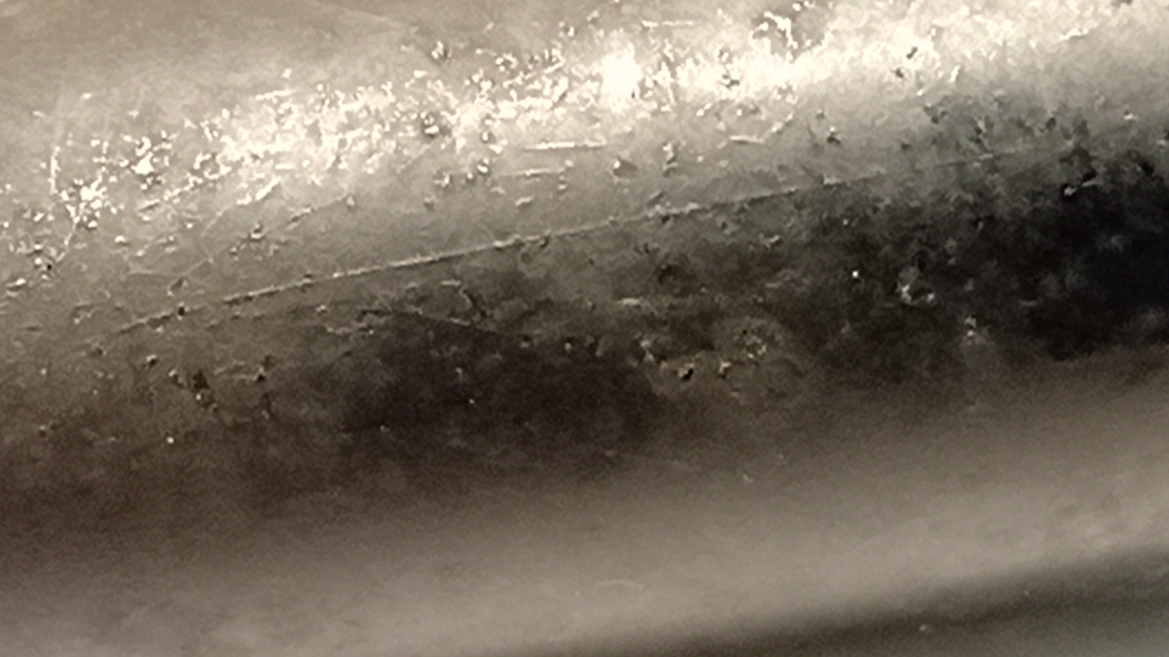 de modo que procedí a darle una suave lijada en el barril para tratar de reconocer el material y luego obrar en consecuencia...