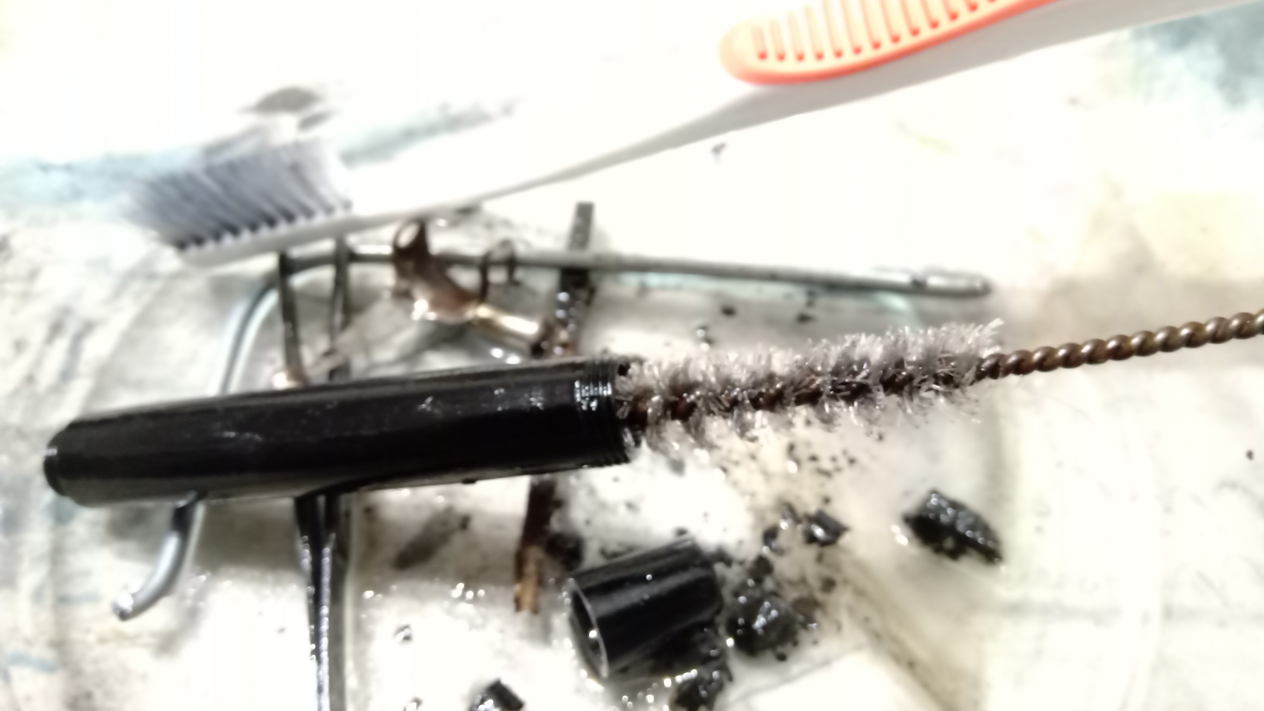 Quindi, sapevo che, ad eccezione dell'impugnatura e dell'alimentatore, non potevo toccare il resto in alcun modo con qualcosa che contenesse anche solo un briciolo di acqua nella sua composizione, e per questo ho iniziato la pulizia di tutti gli elementi immergendoli nel WD40...
