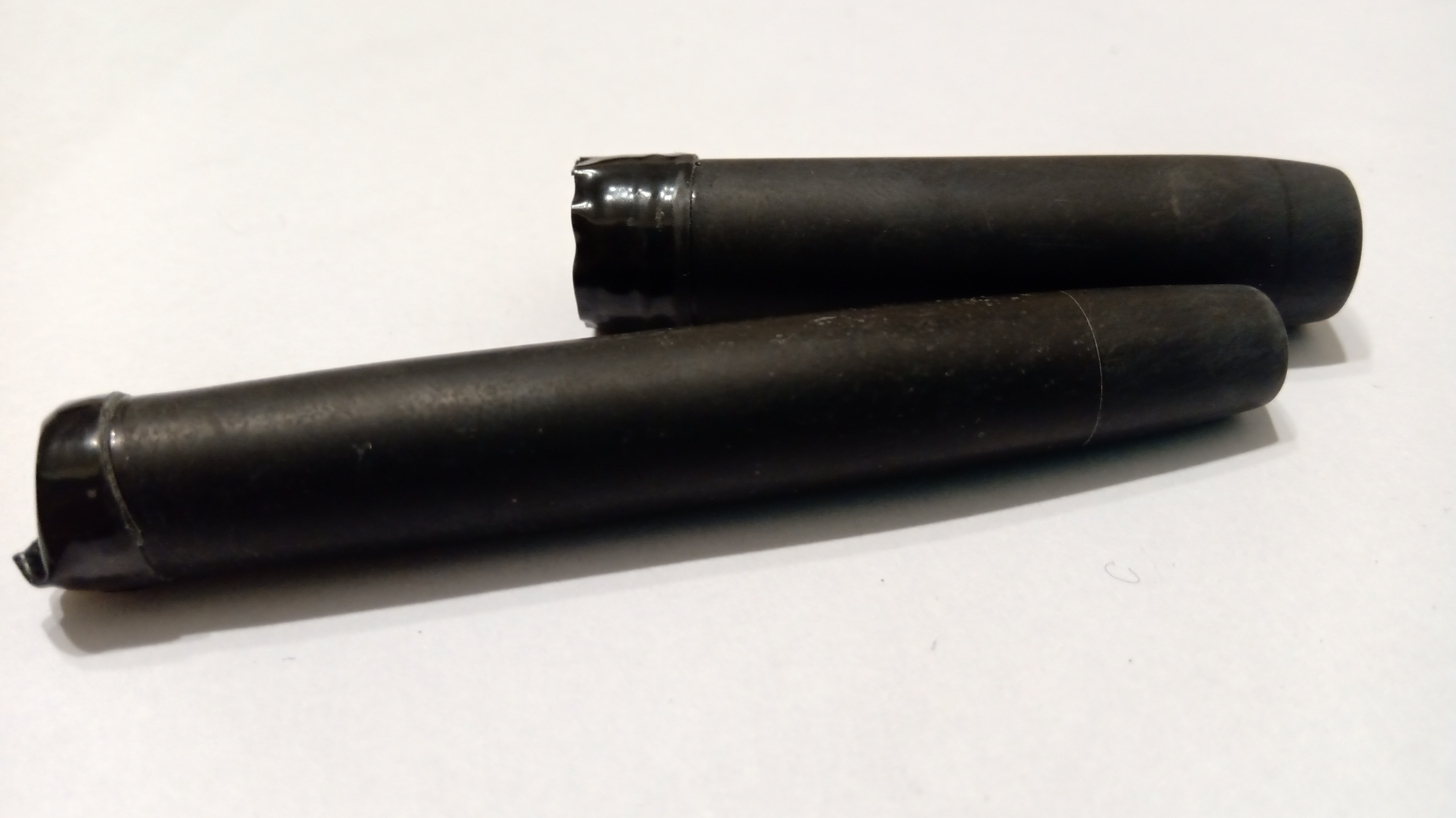 La cosa interessante è che l'artigiano che ha creato la penna, sicuramente consapevole delle caratteristiche dimensionali della caseina, ha lasciato un ampio gioco in tutte le filettature, in modo che il passare del tempo non causasse rotture o crepe dovute alle contrazioni e alle espansioni del materiale a causa dei cambiamenti di umidità. È stato quindi davvero facile svitare le diverse parti.