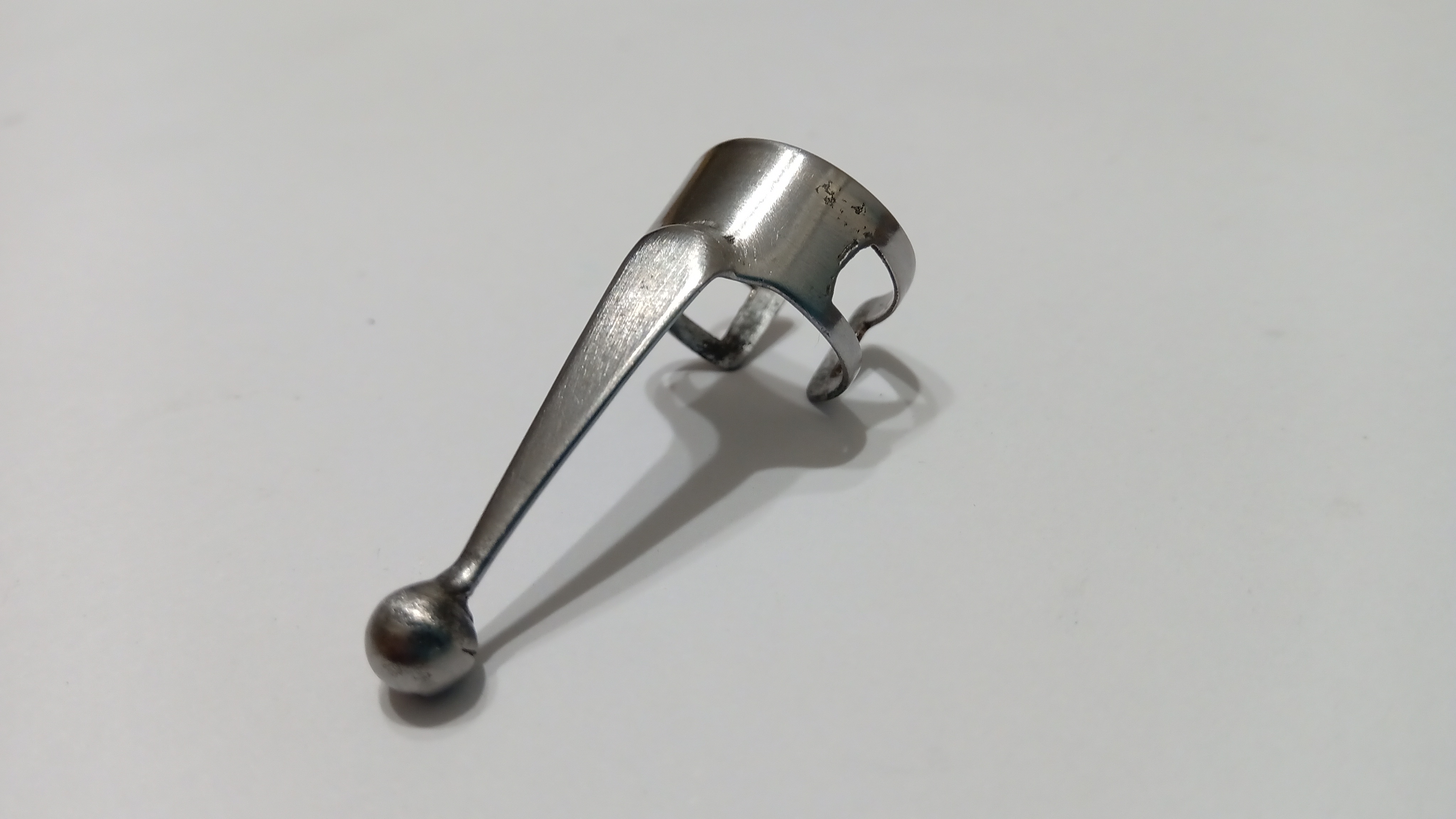 Per dargli una piccola “stirata”, l'ho montato su una base cilindrica in acciaio, su cui l'ho lavorato con un martello in acrilico duro e piccoli colpi...