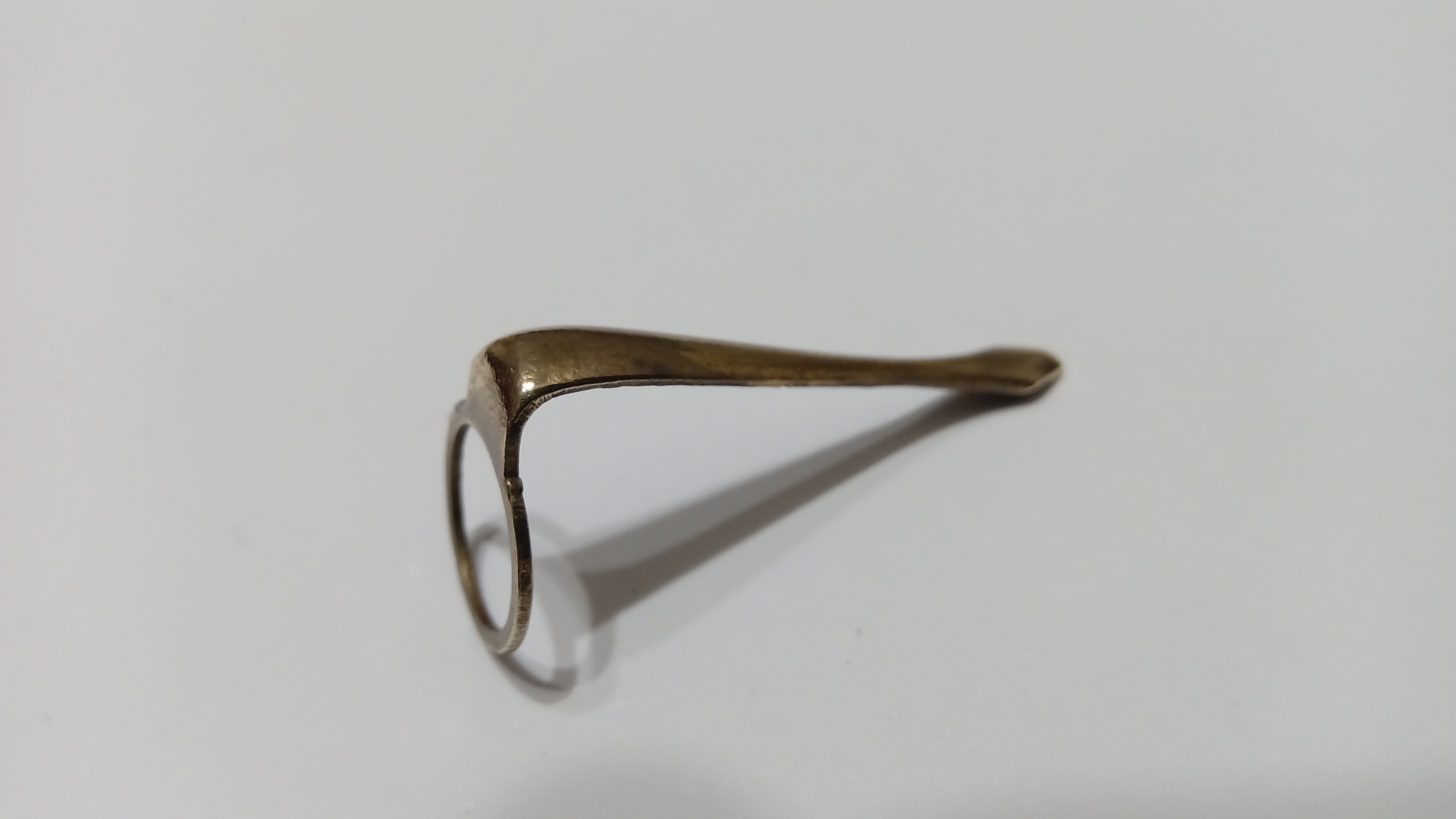 Gli era stata applicata una clip di metallo rimovibile, piuttosto arrugginita, il cappuccio presentava due anelli molto opachi, con una frattura e una mancanza di materiale sul bordo...