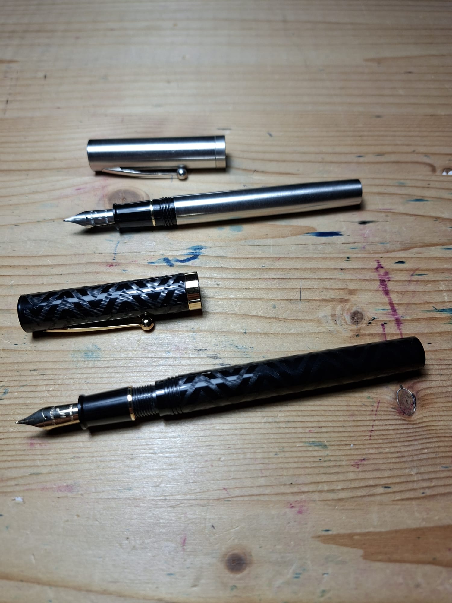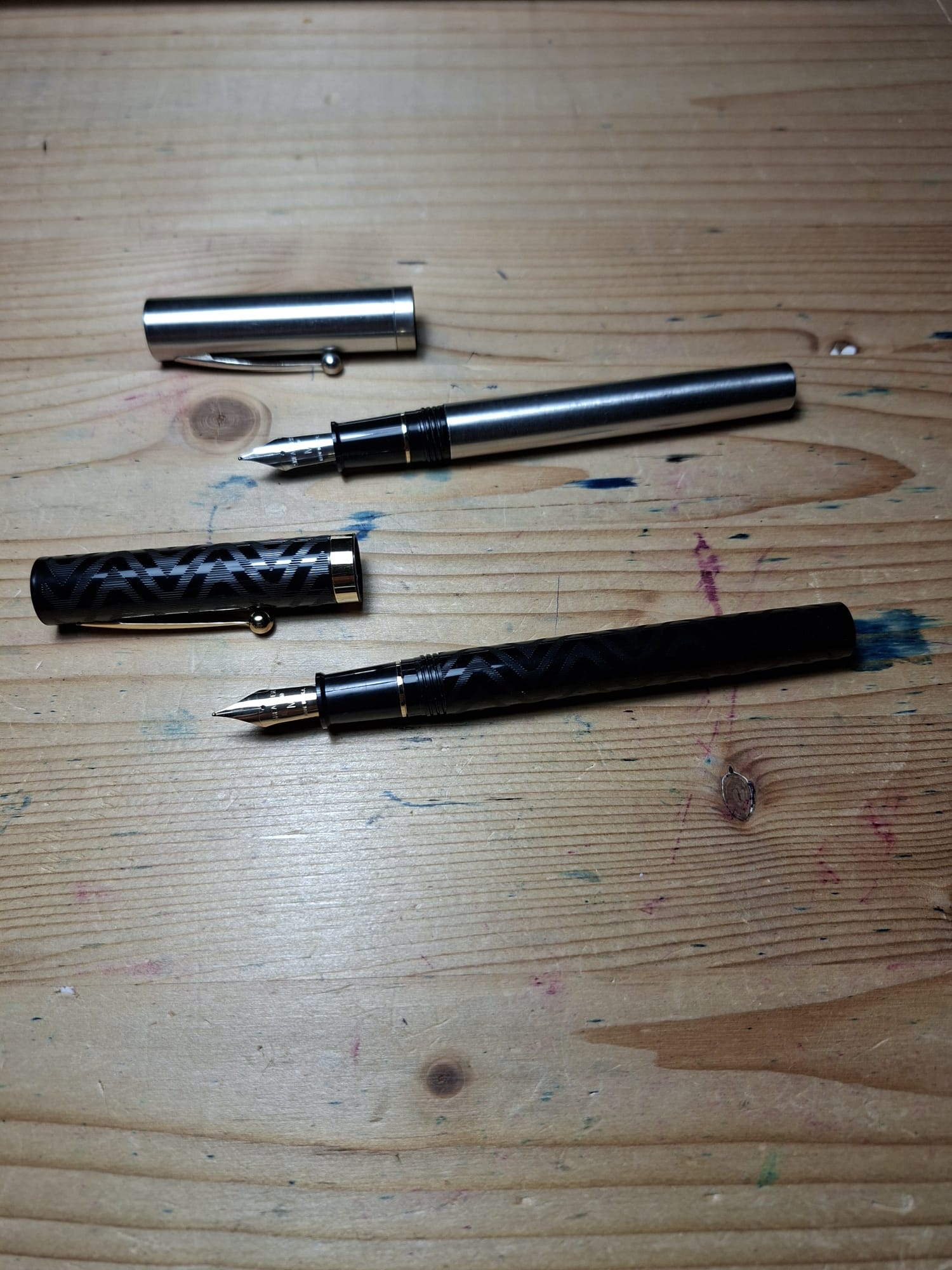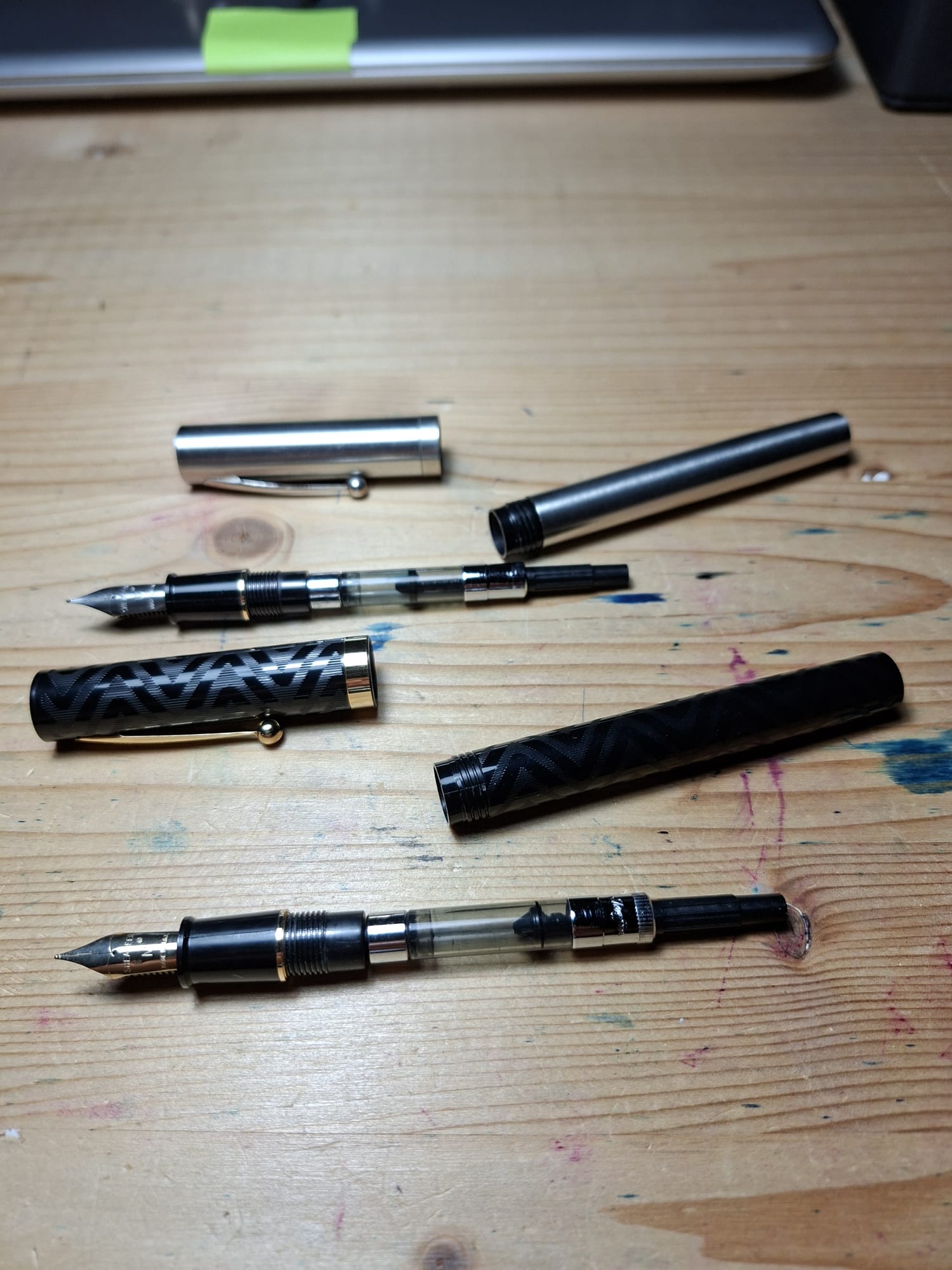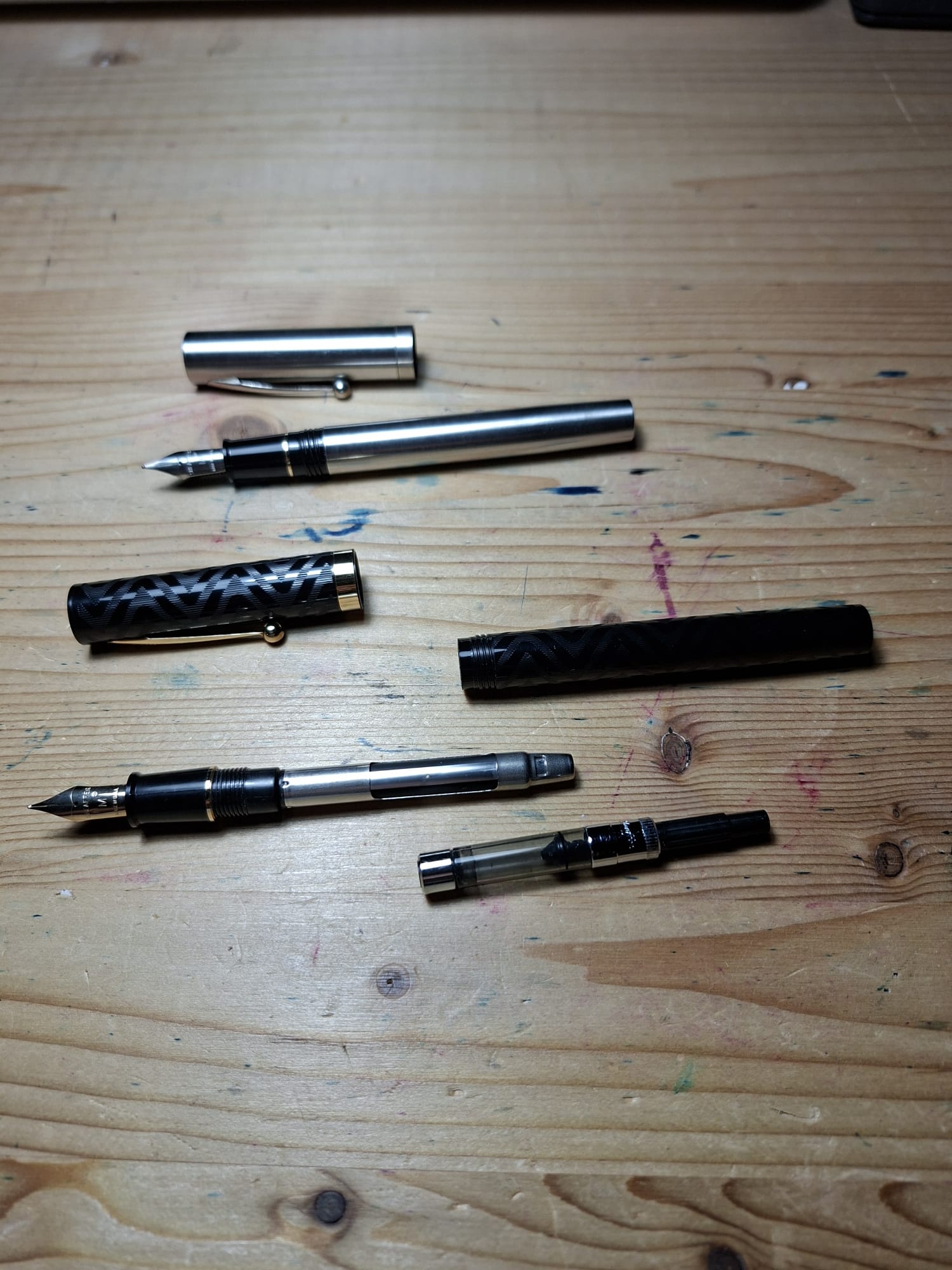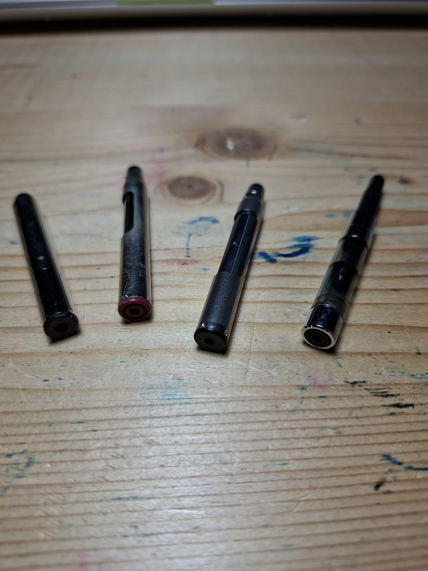 Poi c'è la questione del converter. Tranne per il modello Nostalgia degli anni 70 che si poteva usare solo con il converter a pulsante, tutte le altre Nostalgia moderne che ho visto in rete hanno sempre il converter a pressione (con il sacchetto) . Ma non è mai specificato se il converter a pistone sheaffer si può usare. La penna è abbastanza lunga per questo converter a pistone o no?